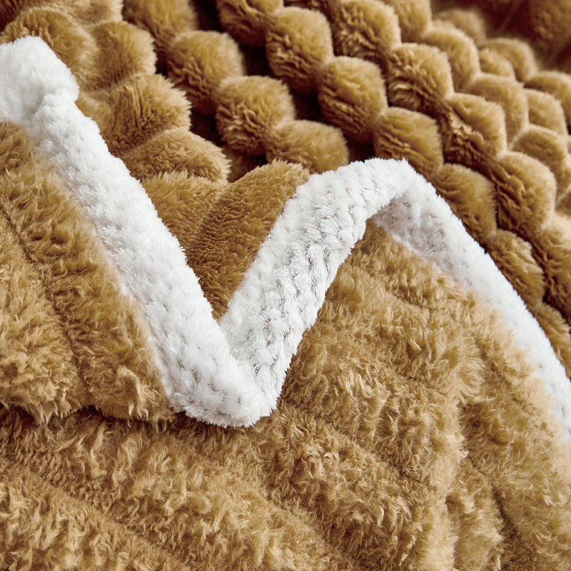 商品名称:鹏程 24款300克抽条毛毯高克重法莱绒牛奶绒贝贝绒毛毯 咖条