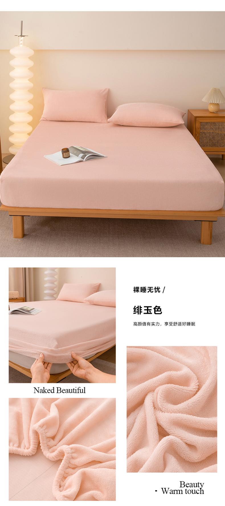 • 91家纺网 家纺一手货源 找家纺 棉乐町家居 2025新款舒适纯色牛奶绒床笠 绯玉色