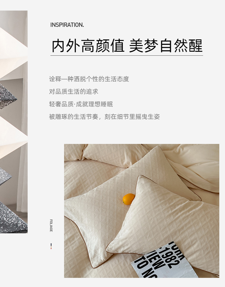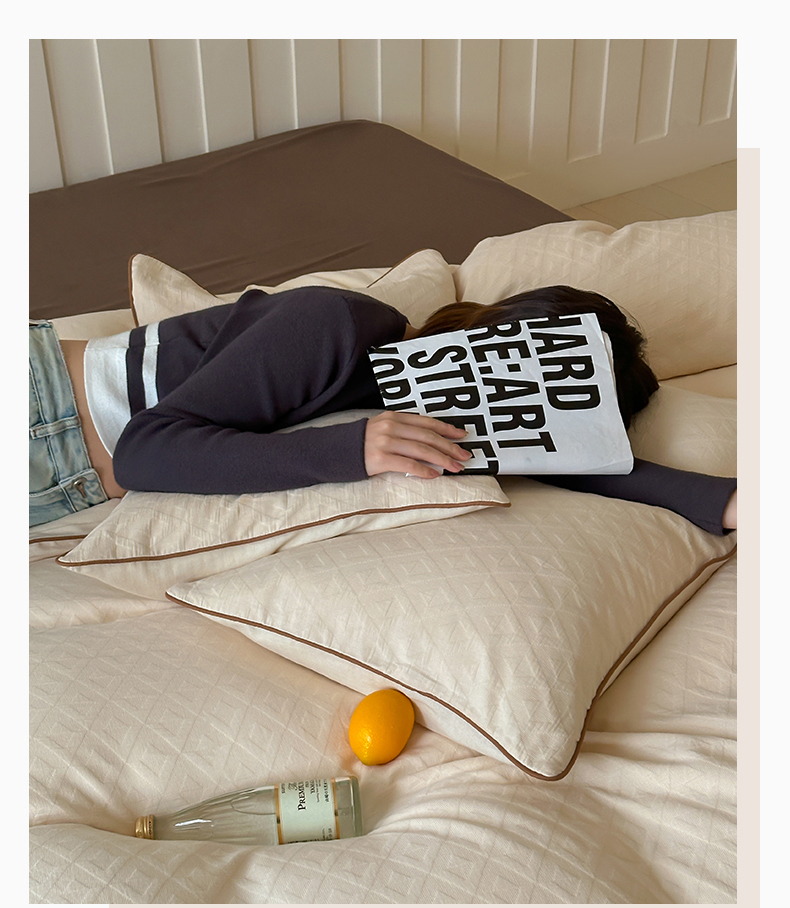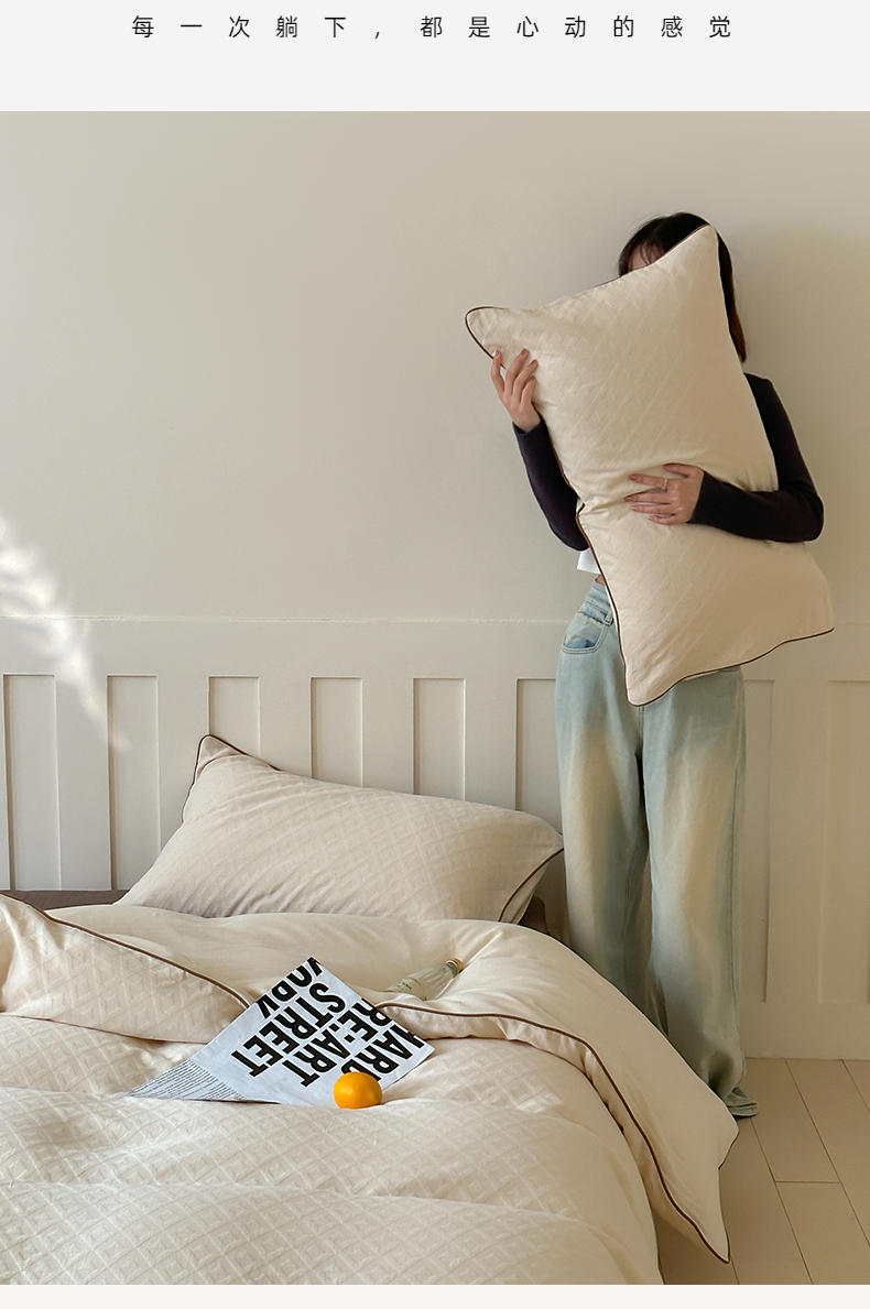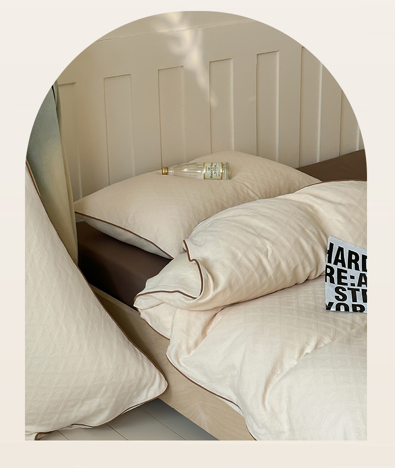 梦享生活家居 2024新款全棉肌理纹四件套-滚边系列 格趣滚边-米咖