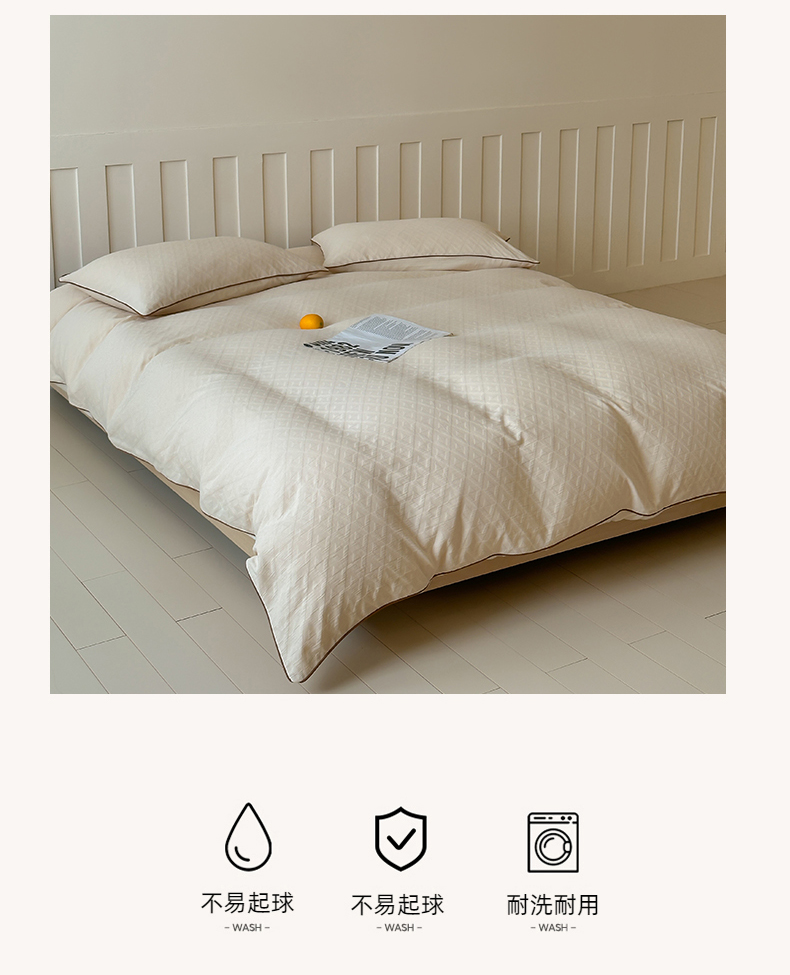 商品名称:梦享生活家居 2024新款全棉肌理纹四件套-滚边系列 格趣滚边-米咖