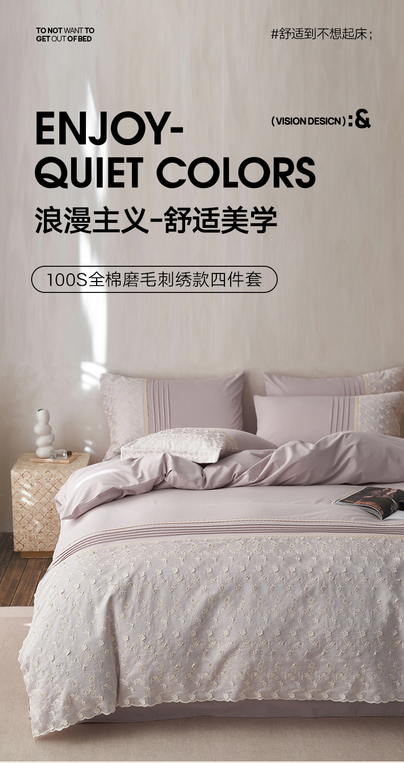 安莱生活 2024新款100支全棉磨毛高工艺四件套-卡蜜儿 卡蜜儿-梦幻紫