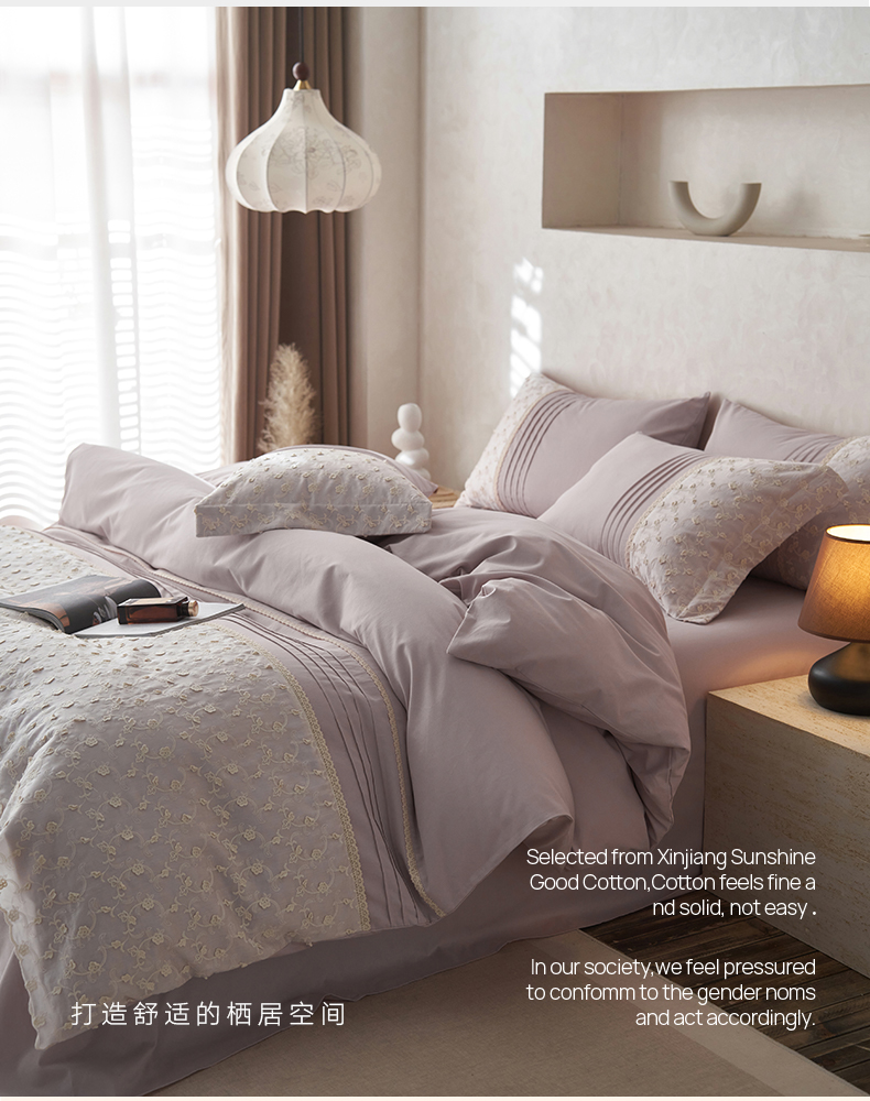 商品名称:安莱生活 2024新款100支全棉磨毛高工艺四件套-卡蜜儿 卡蜜儿-梦幻紫