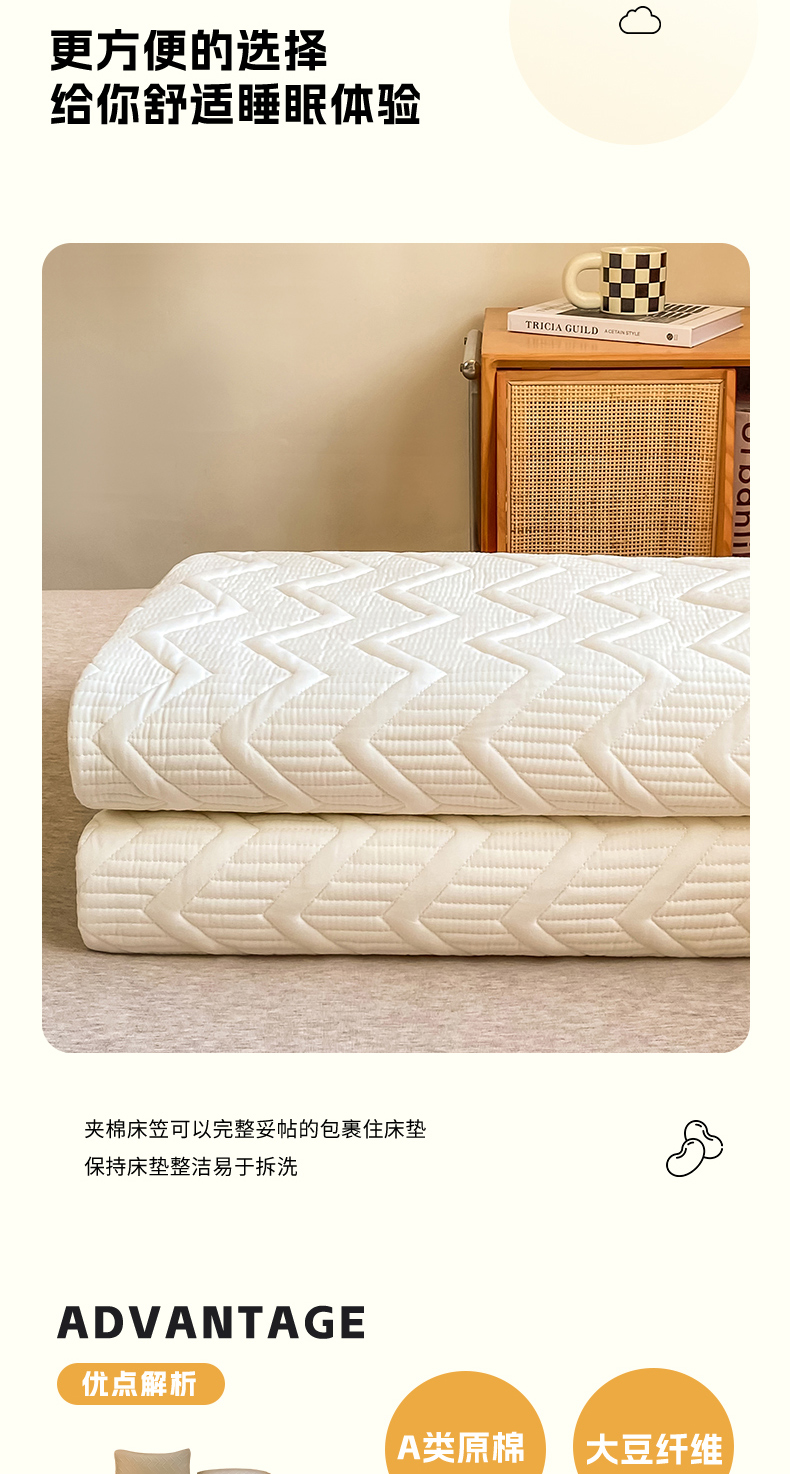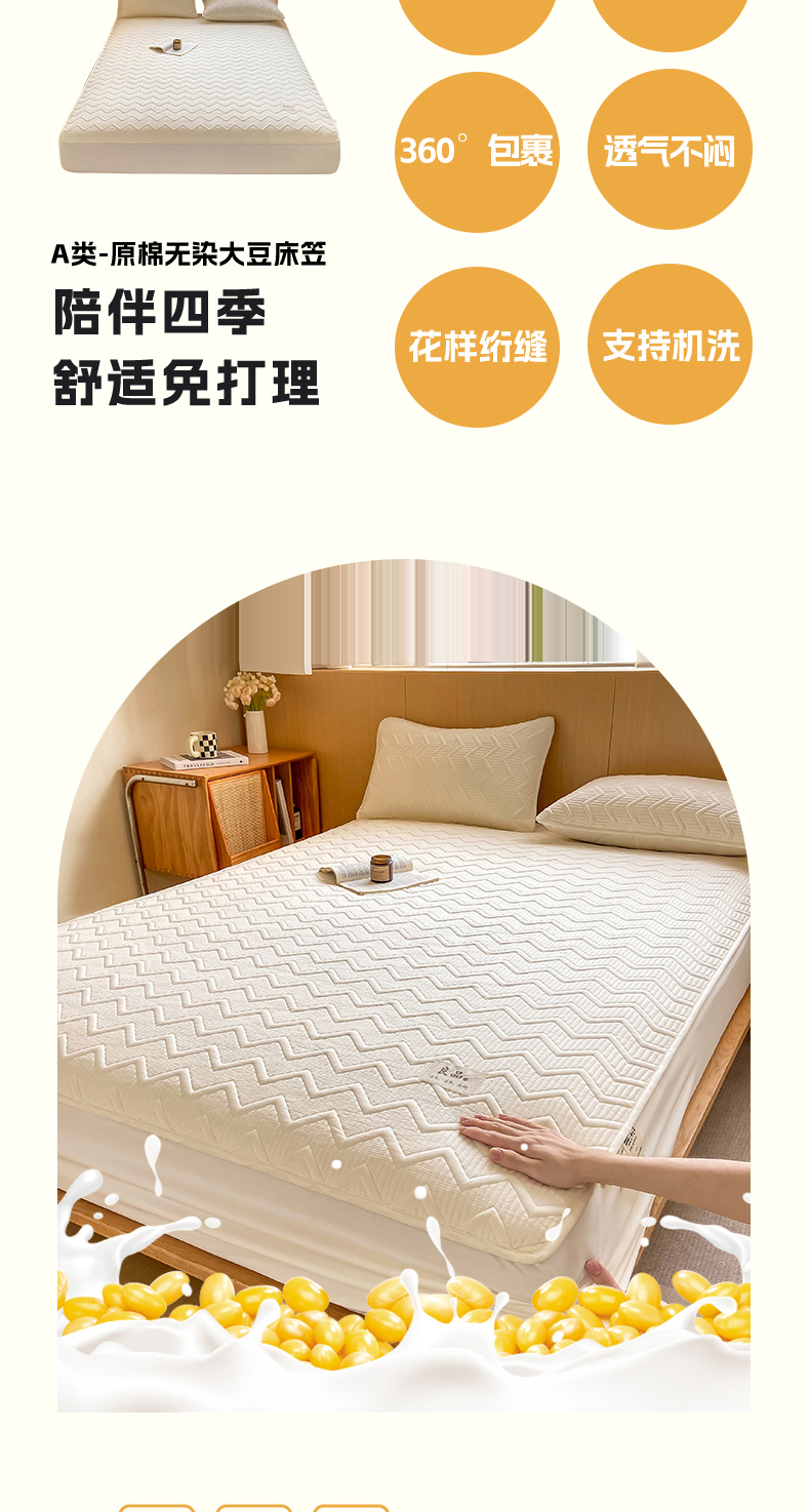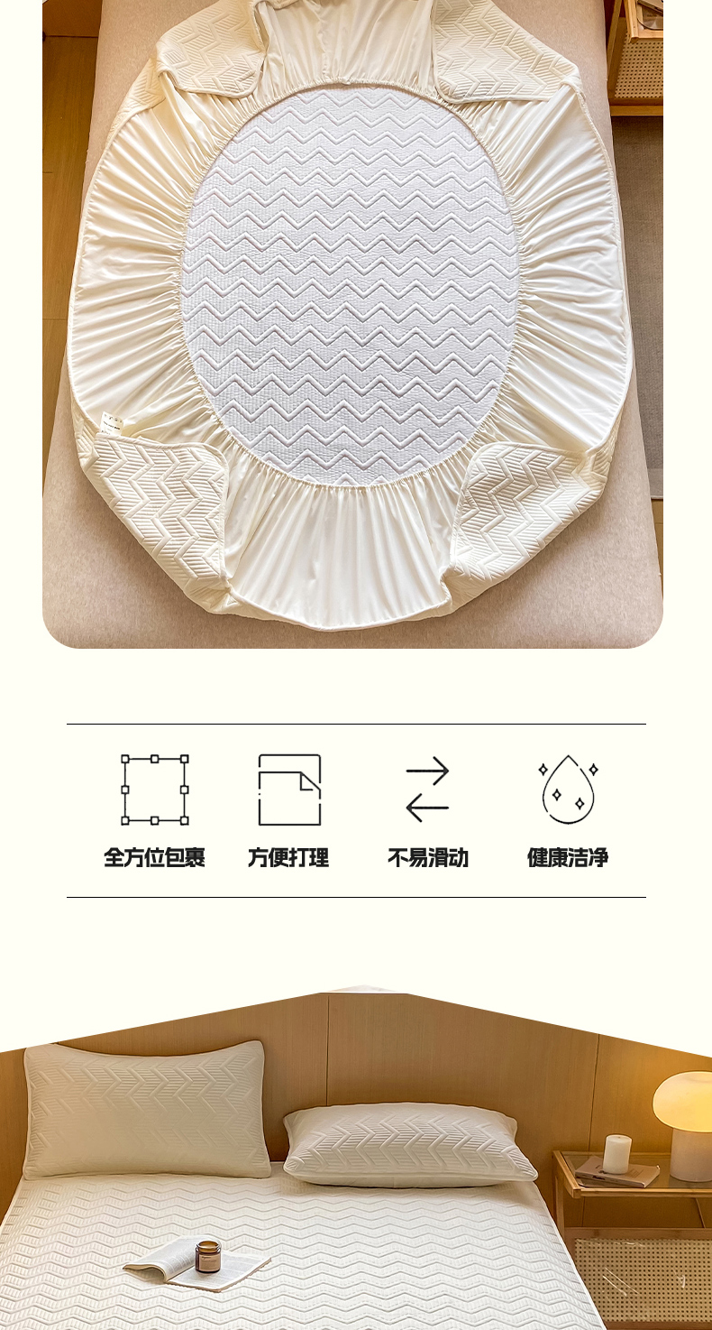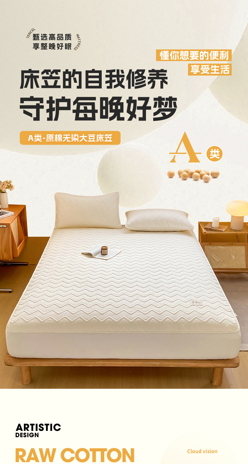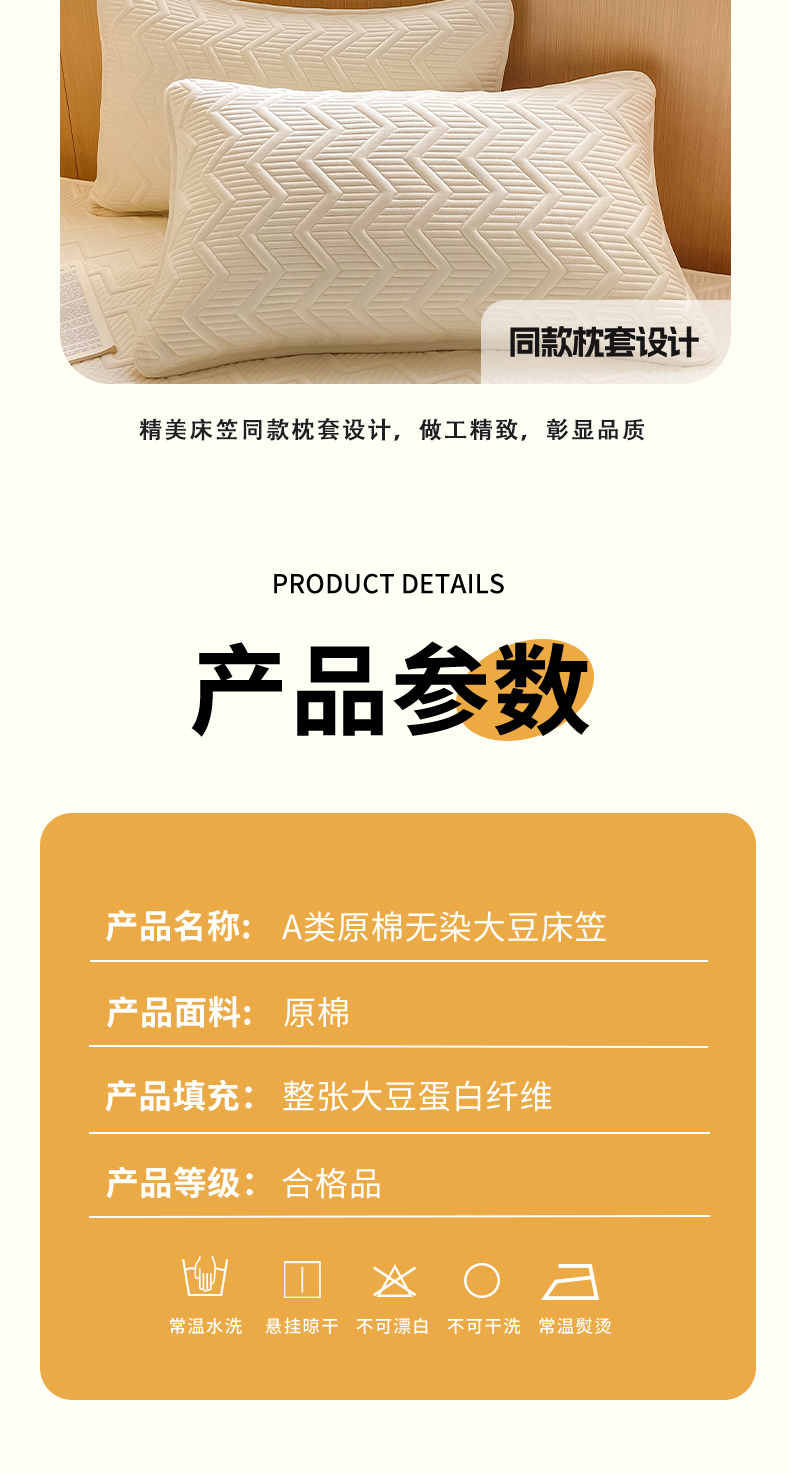 商品名称:悦织湾家纺 2025新款A类本色原棉大豆床笠 麦浪纹-米白