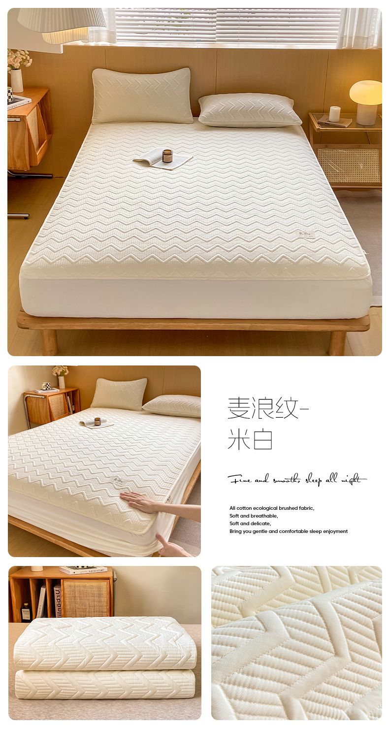 悦织湾家纺 2025新款A类本色原棉大豆床笠 麦浪纹-米白