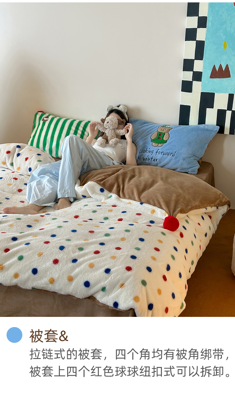 (总)桔子家纺 2025秋冬新款羊毛绒mi兔系列四件套,波点mi兔,复古红波点,黄油mi兔,烤面包