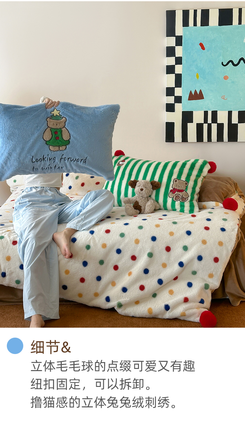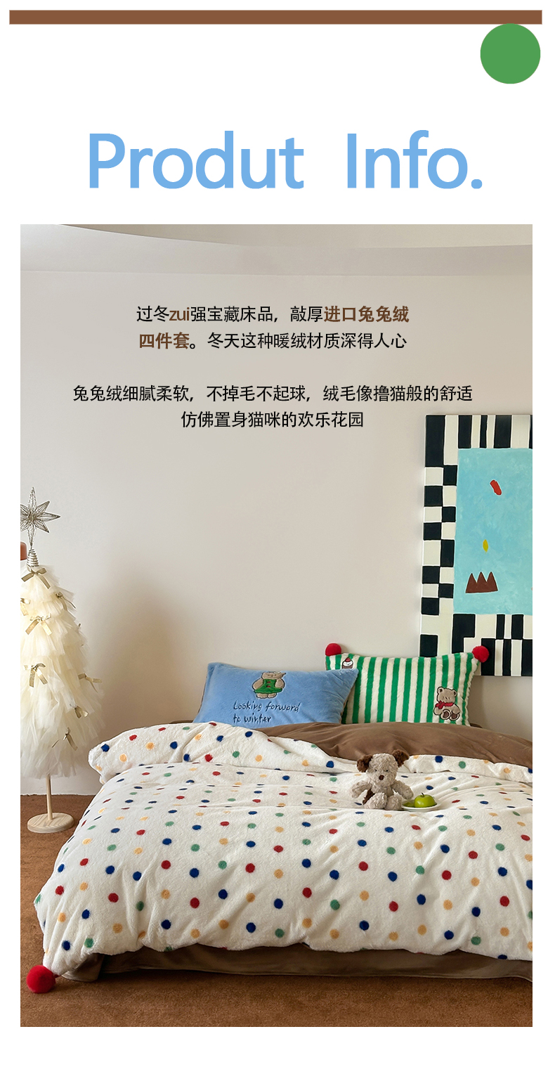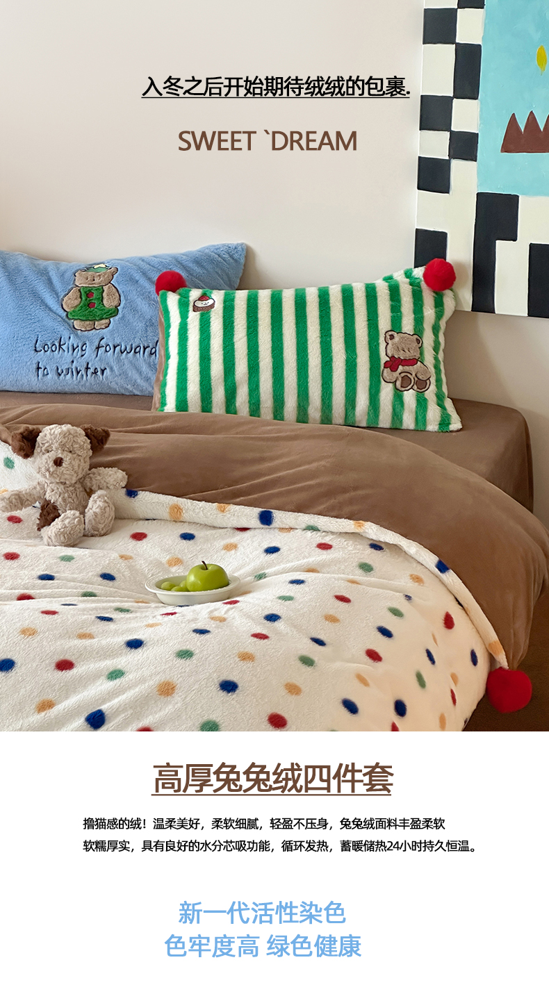 商品名称:桔子家纺 2024新款兔兔绒派对系列四件套 圣诞波点