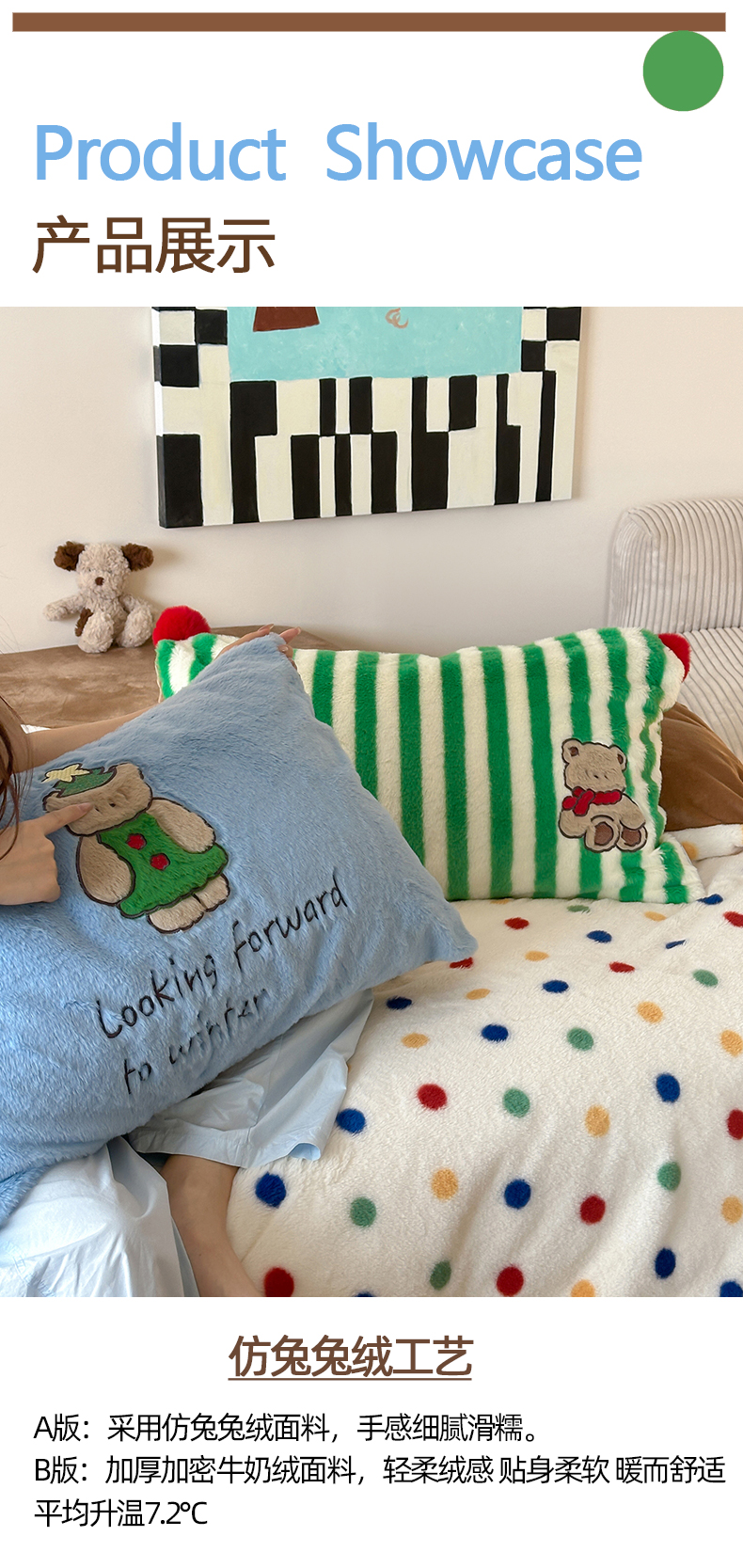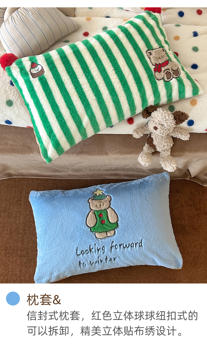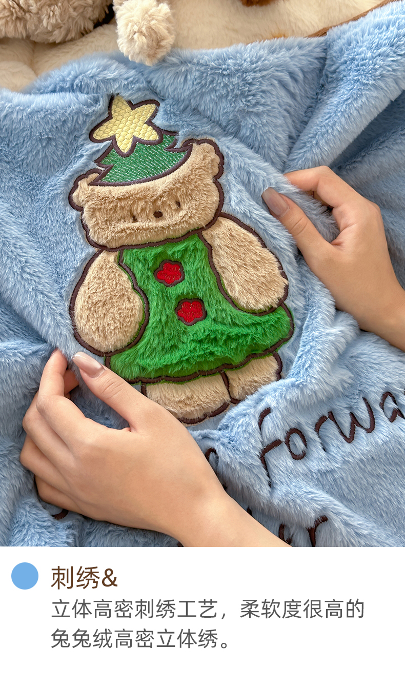 商品名称:桔子家纺 2024新款兔兔绒派对系列四件套 圣诞波点