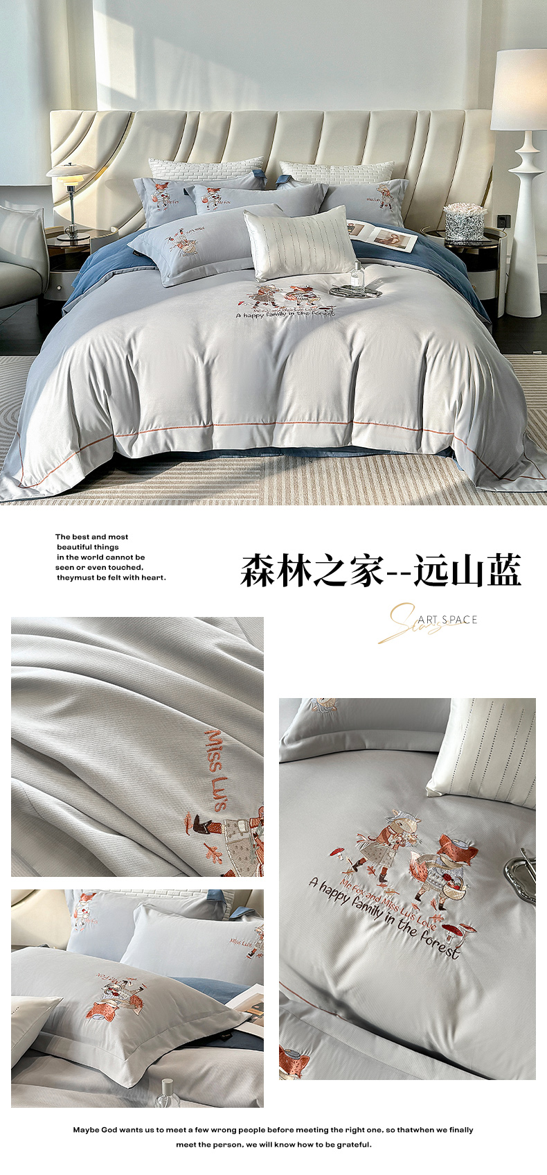 棠颂家纺 2025新款亲肤锦梳棉磨毛刺绣四件套(礼盒款) 森林之家--远山蓝