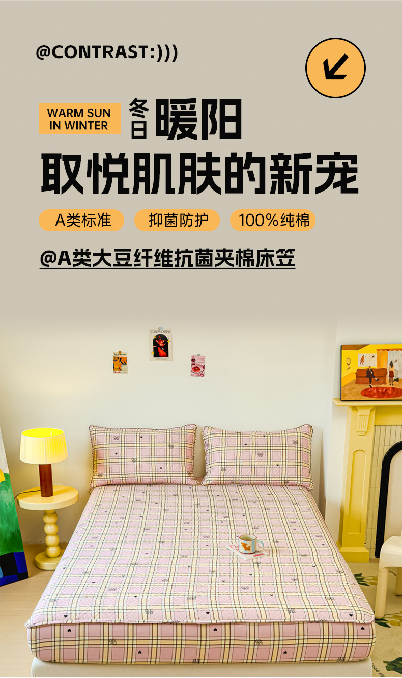 • 91家纺网 家纺一手货源 找家纺 寝居阁 2024新款13372全棉纯棉大豆纤维夹棉床笠 可萌宝贝,可萌宝贝