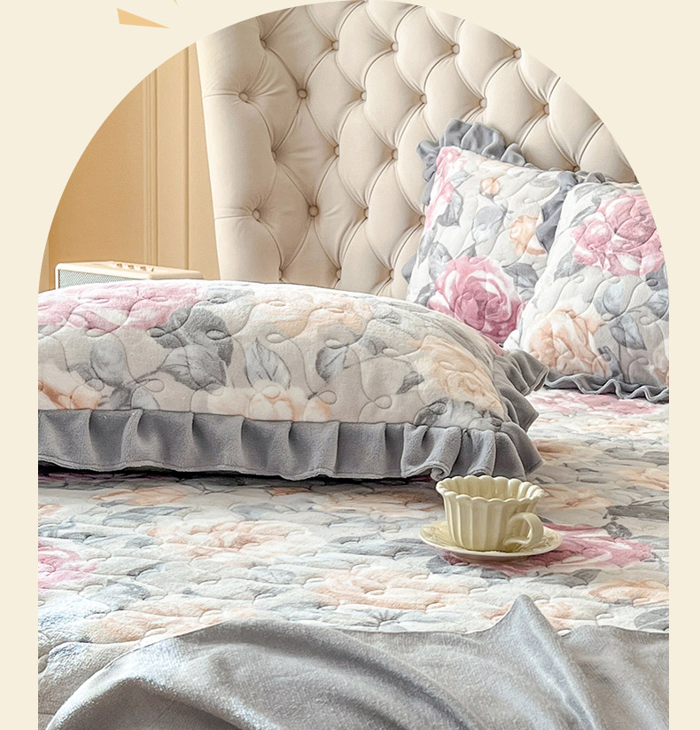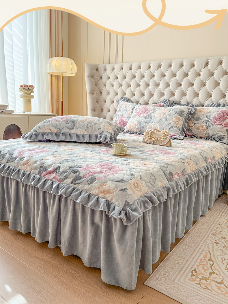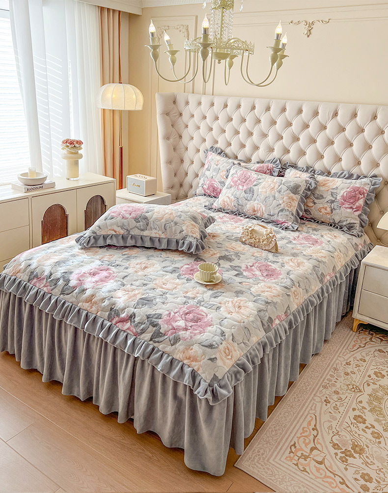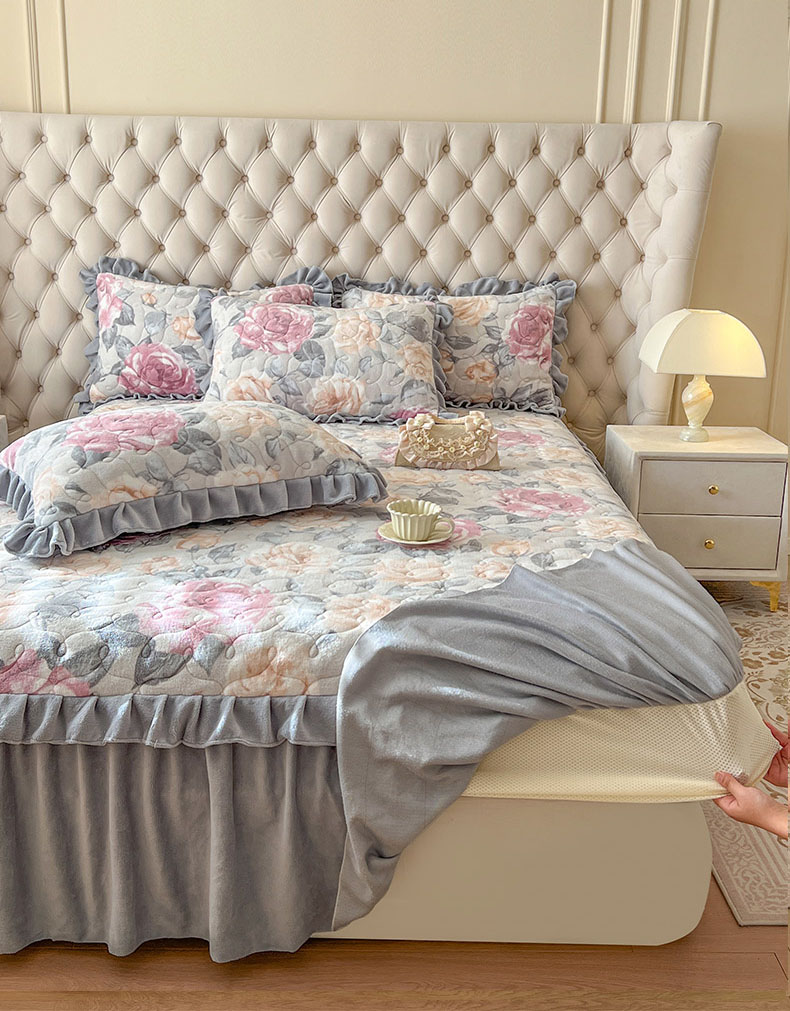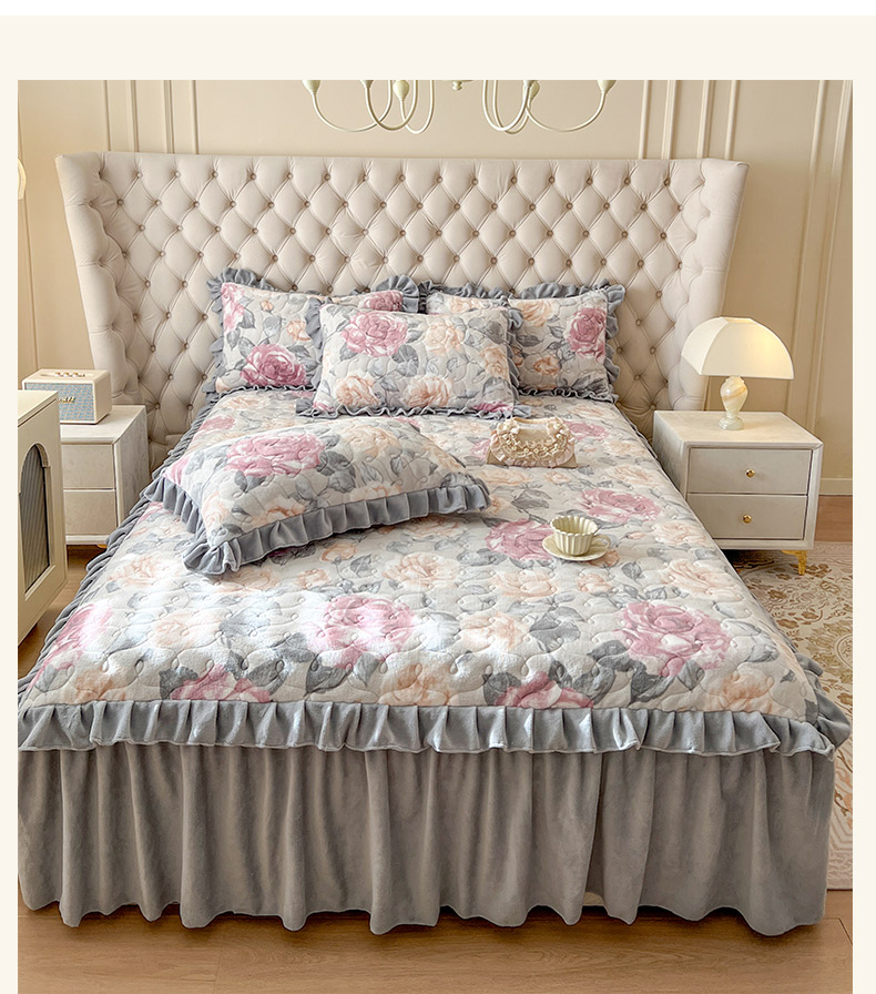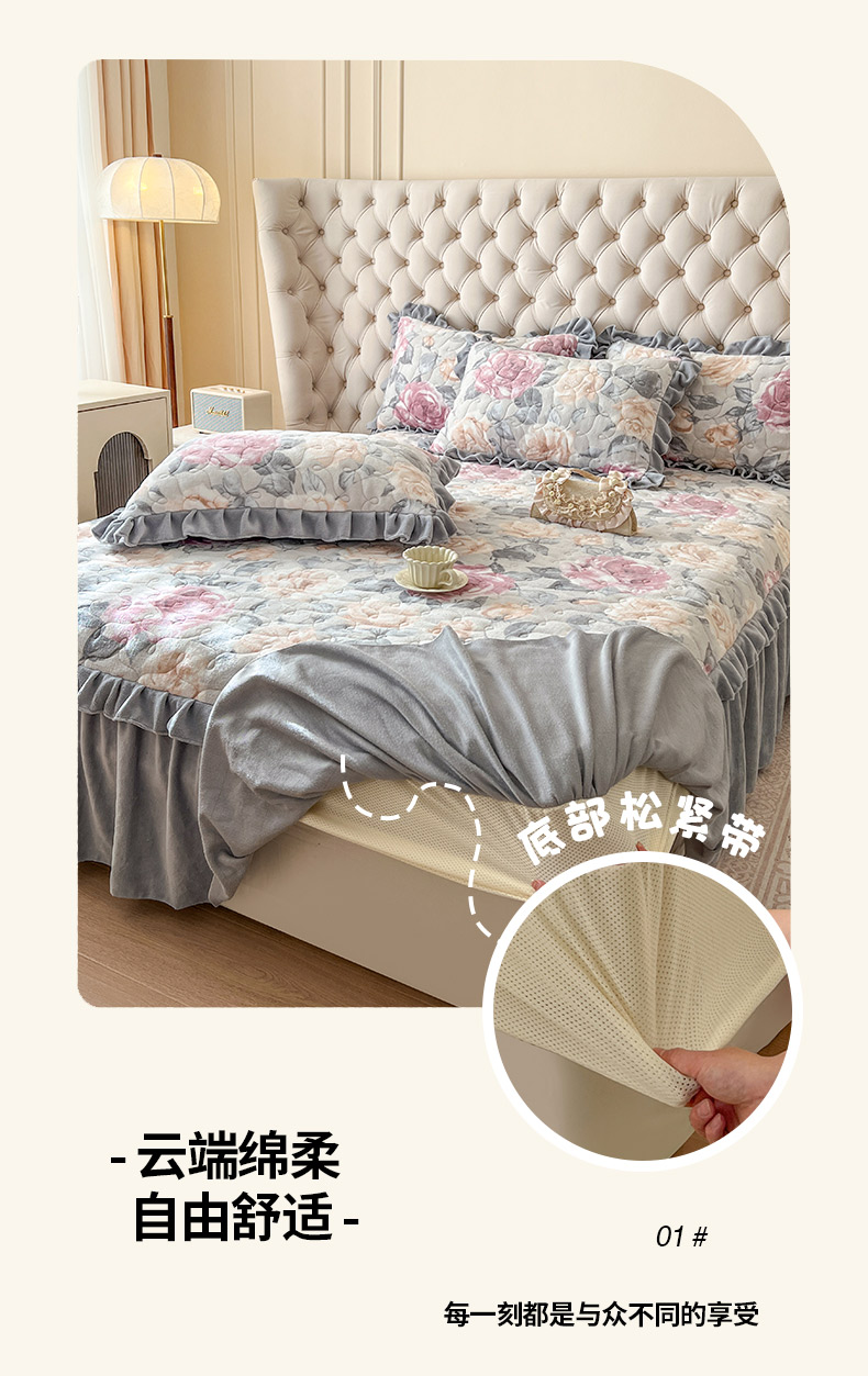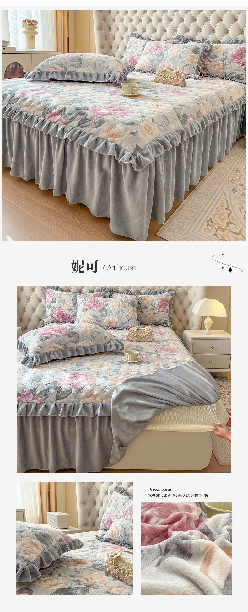 2024新款高克重印花牛奶绒加厚夹棉系列-床笠裙 妮可