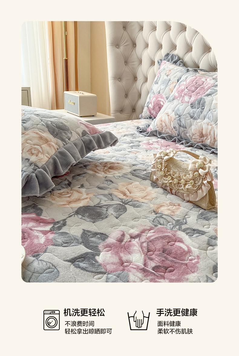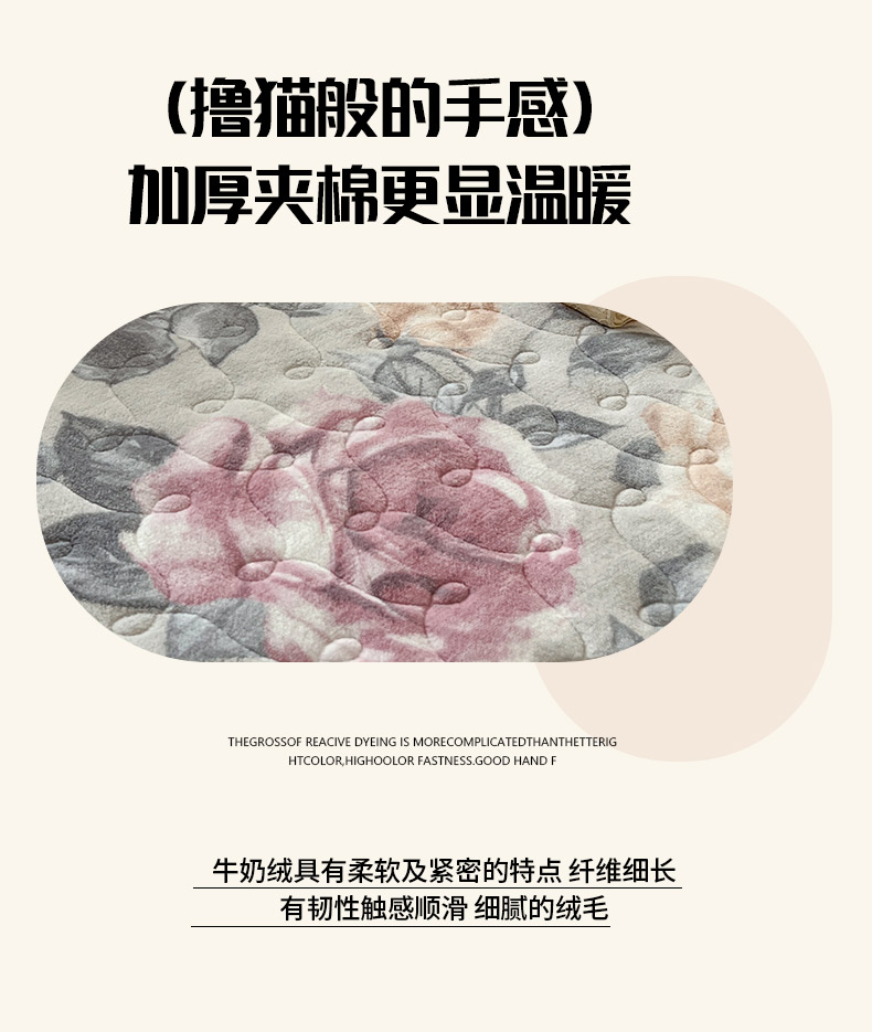 商品名称:2024新款高克重印花牛奶绒加厚夹棉系列-床笠裙 妮可