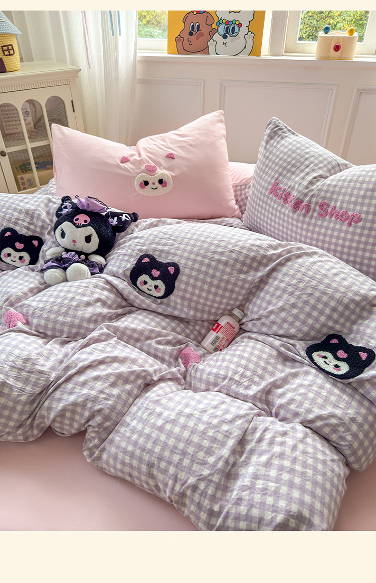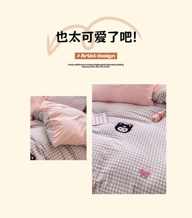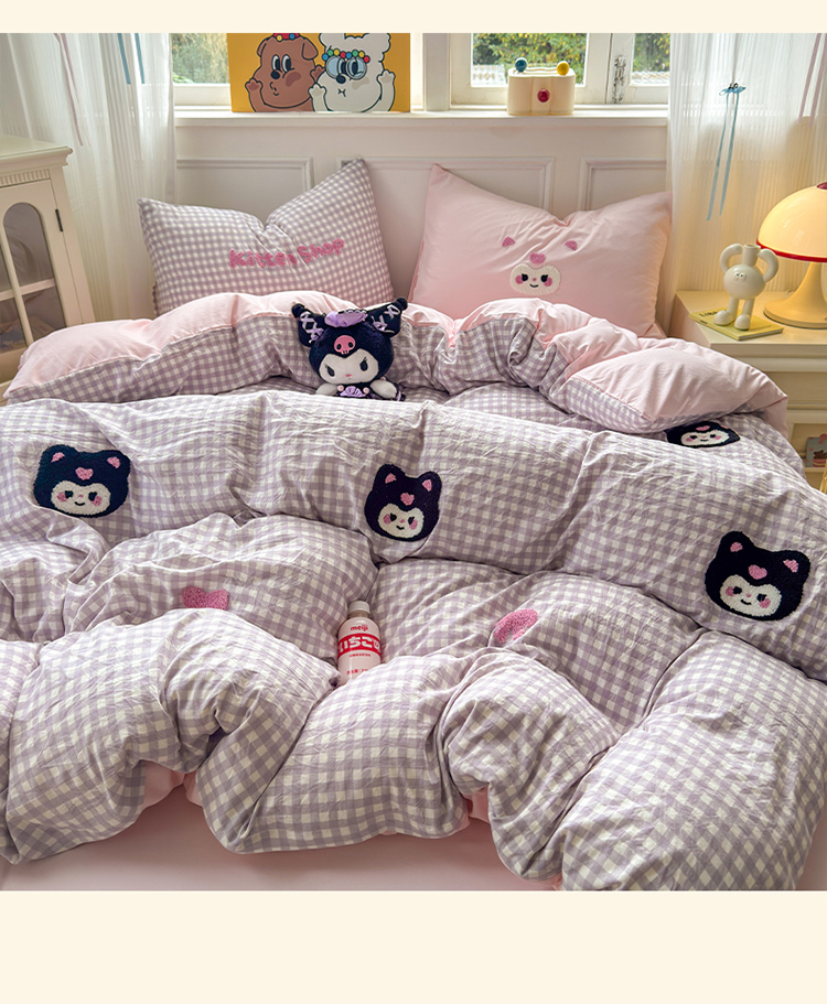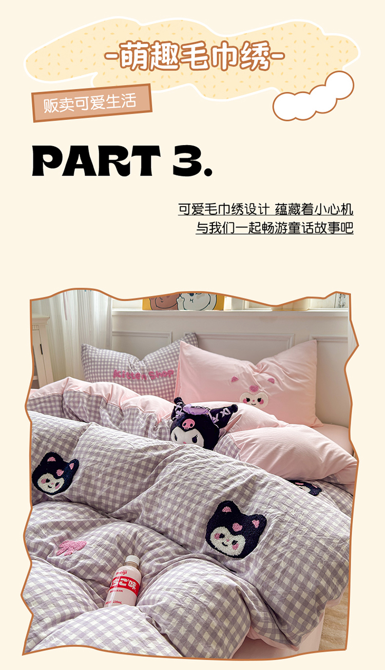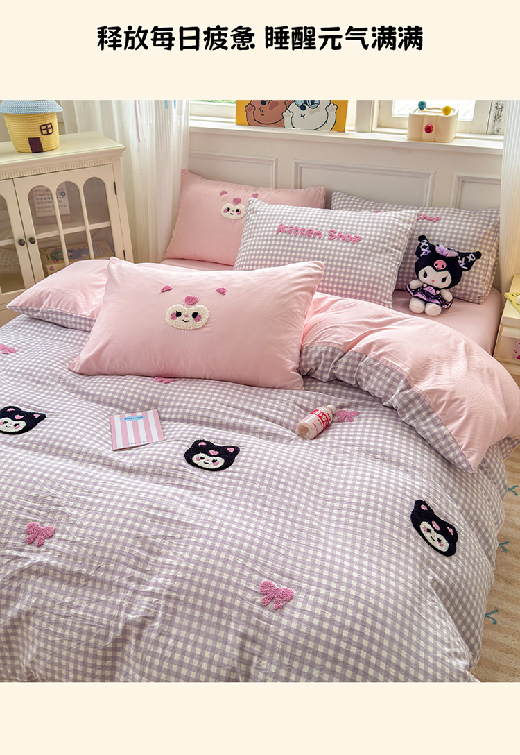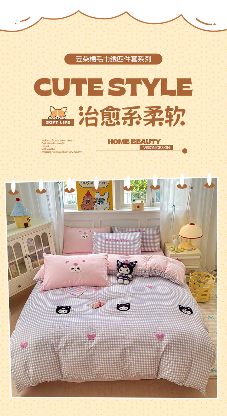 当前位置: 91家纺网 > 商品网购 > 床品套件 > 四件套 > 其它四件套 > 罗亿家纺 2025新款韩版糯糯棉(110克)毛巾绣四件套-场景三(提供买家秀) 甜酷小库洛