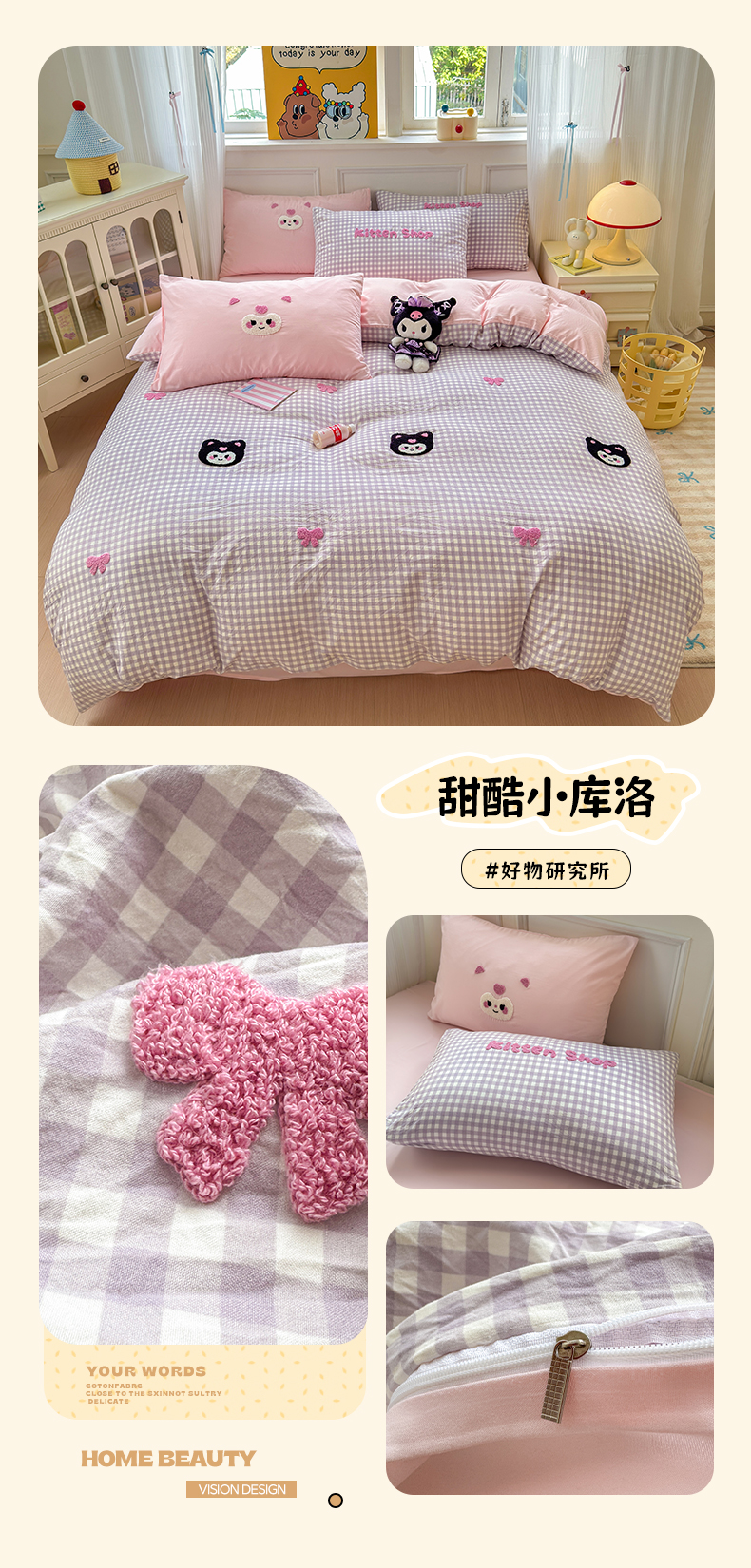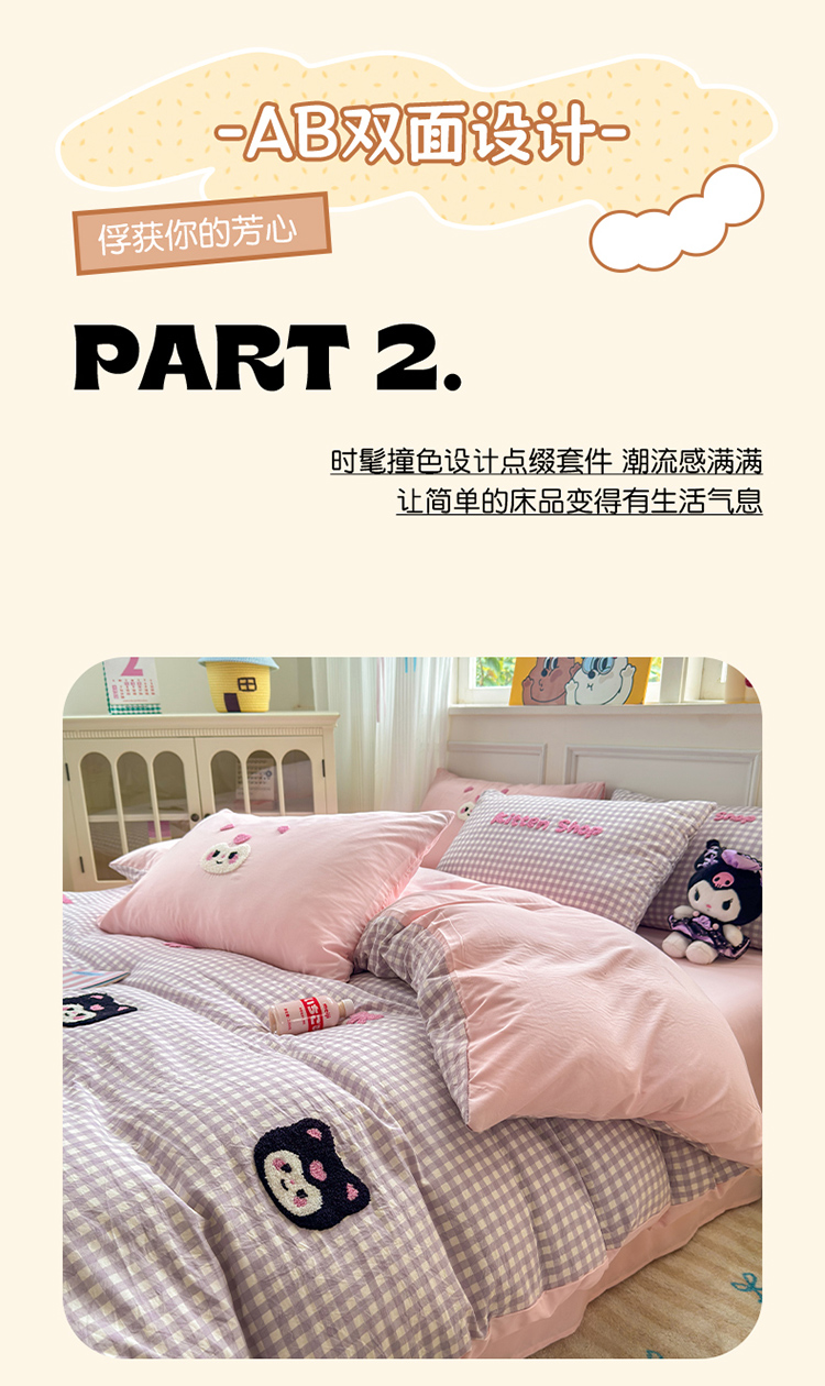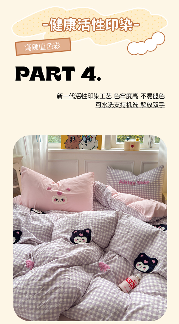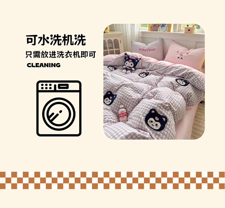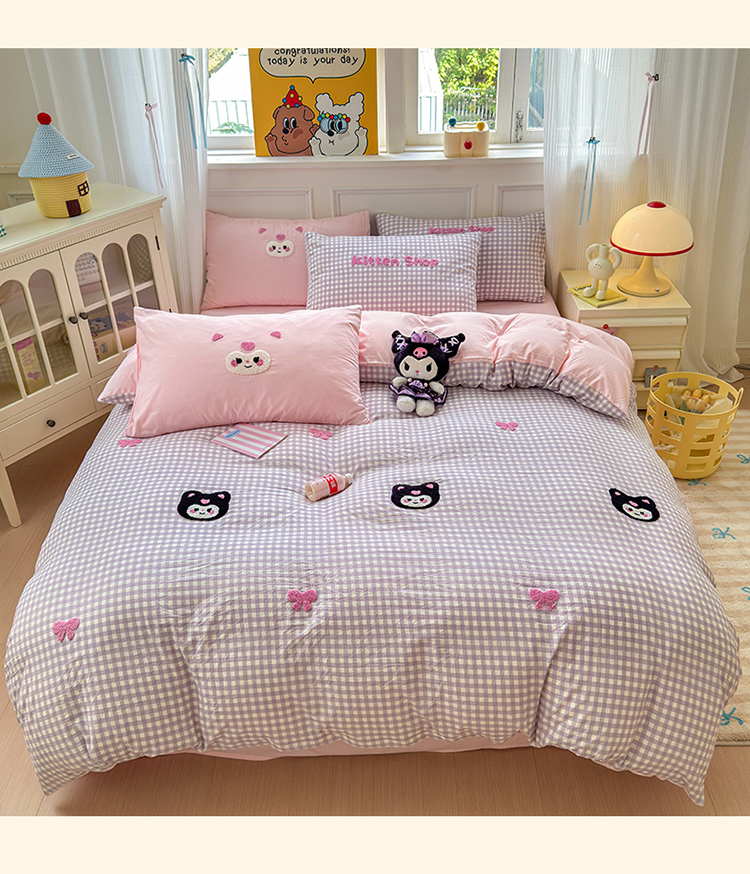 当前位置: 91家纺网 > 商品网购 > 床品套件 > 四件套 > 其它四件套 > 罗亿家纺 2025新款韩版糯糯棉(110克)毛巾绣四件套-场景三(提供买家秀) 甜酷小库洛
