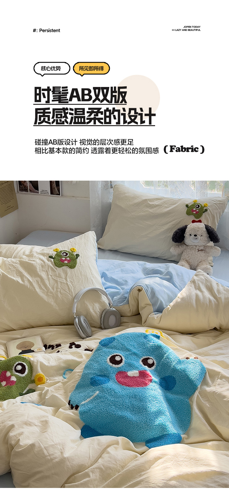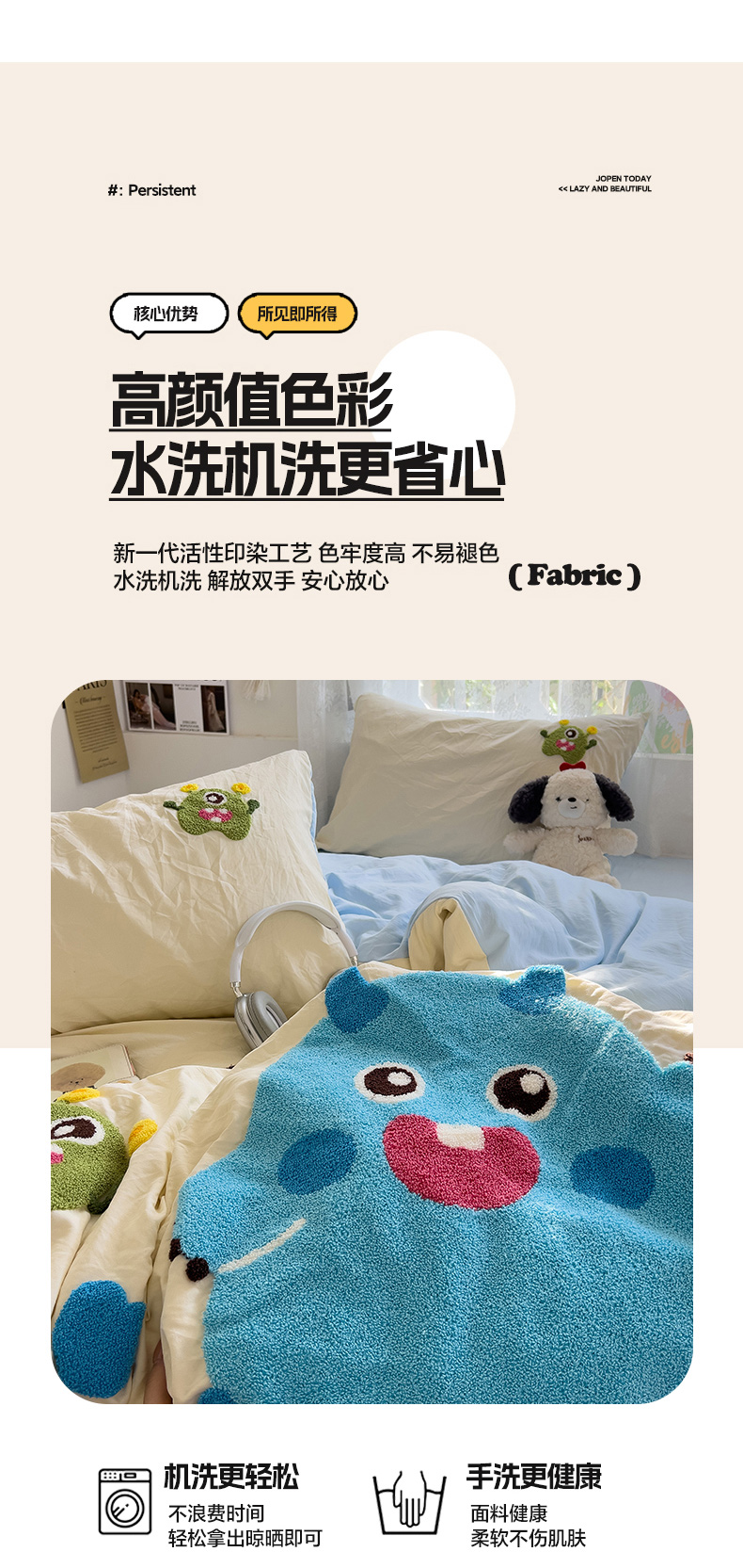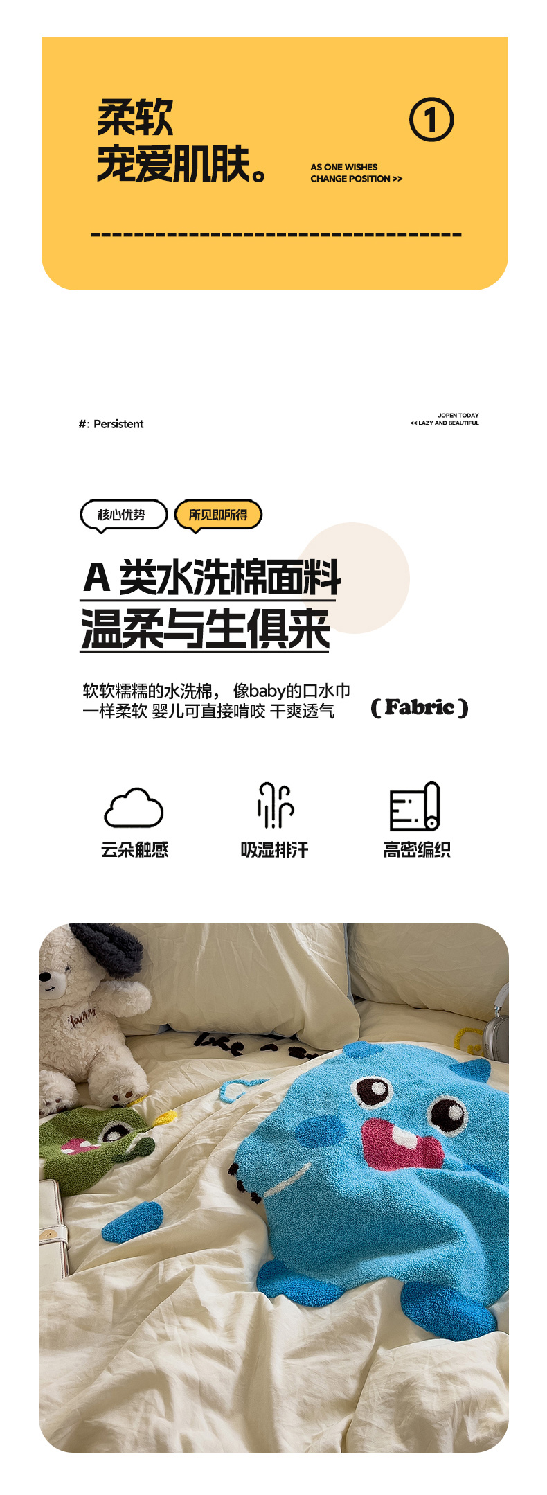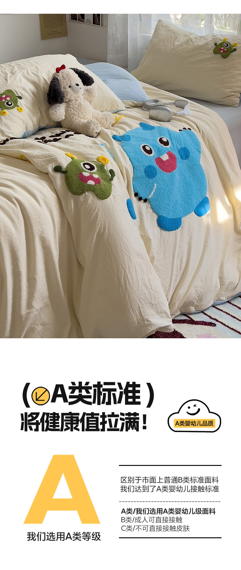 当前位置: 91家纺网 > 商品网购 > 床品套件 > 四件套 > 水洗棉四件套 > 2024新款水洗棉毛巾绣四件套系列 怪兽宝贝奶黄蓝