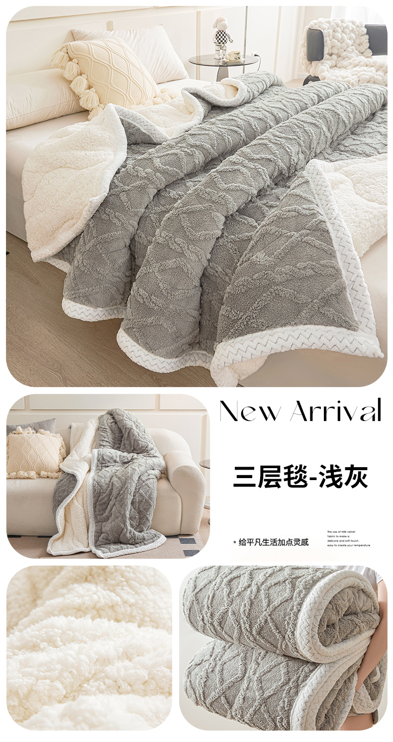 商品名称:雅萱家纺 2024新款塔芙绒毛毯 塔芙绒三层毯-浅灰