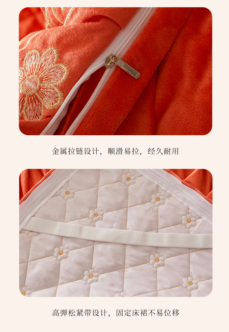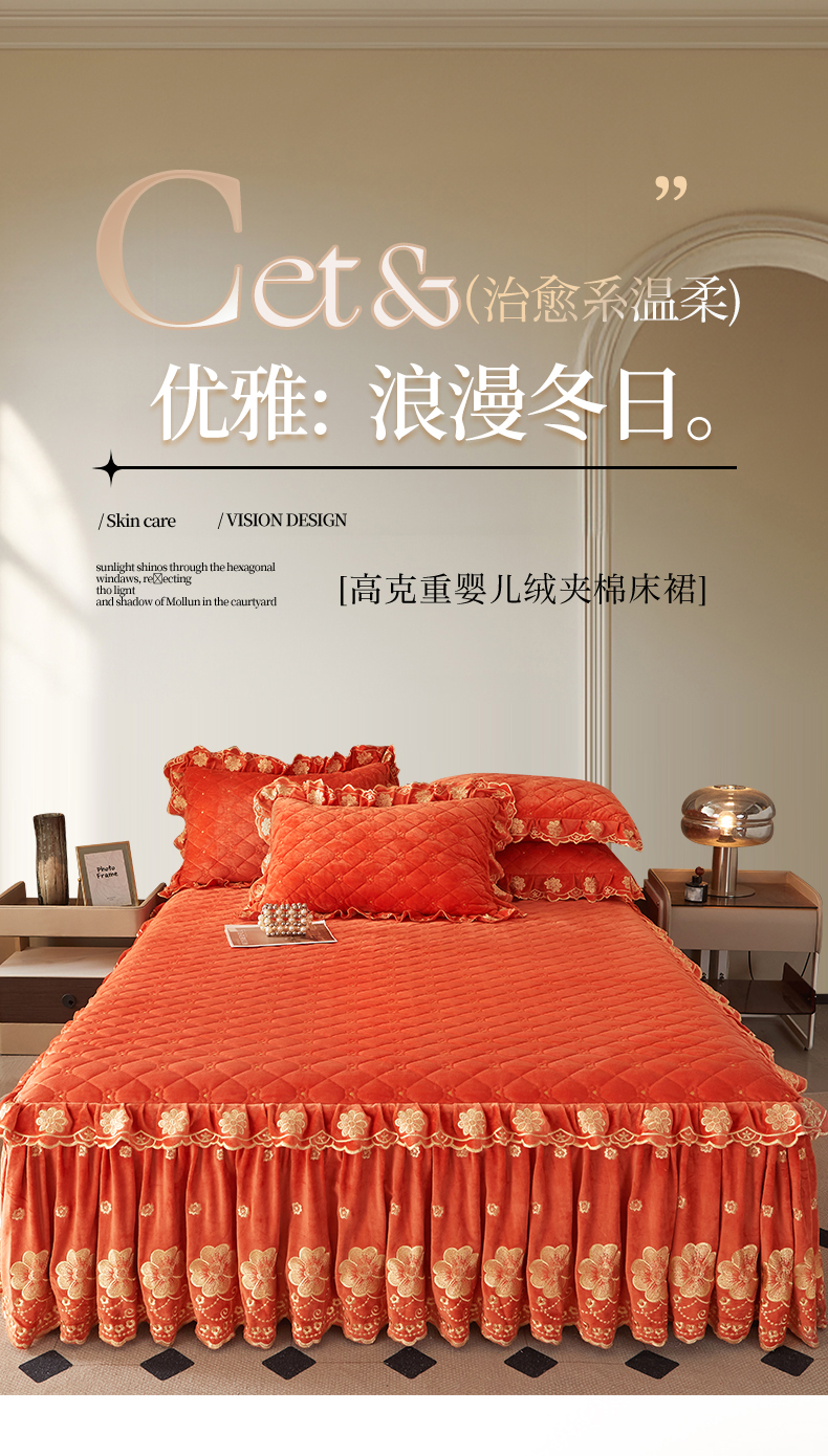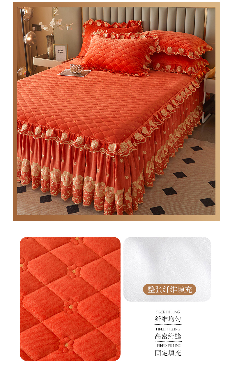 • 91家纺网 家纺一手货源 找家纺 罗艺轩 2025新款婴儿绒双层夹棉可拆卸床裙-花语 花语-艾玛橙