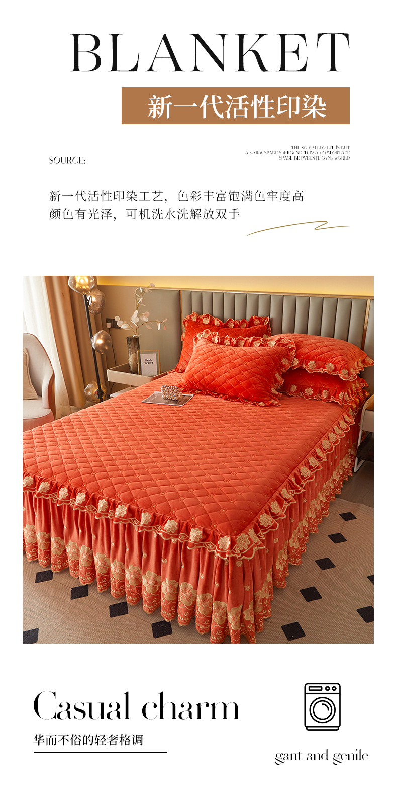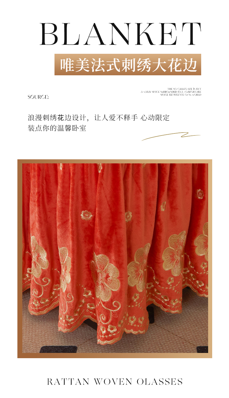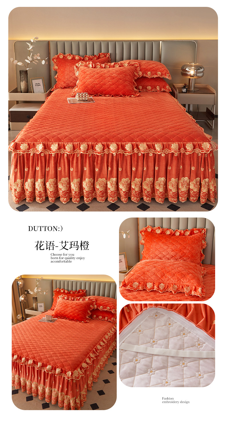 • 91家纺网 家纺一手货源 找家纺 罗艺轩 2025新款婴儿绒双层夹棉可拆卸床裙-花语 花语-艾玛橙