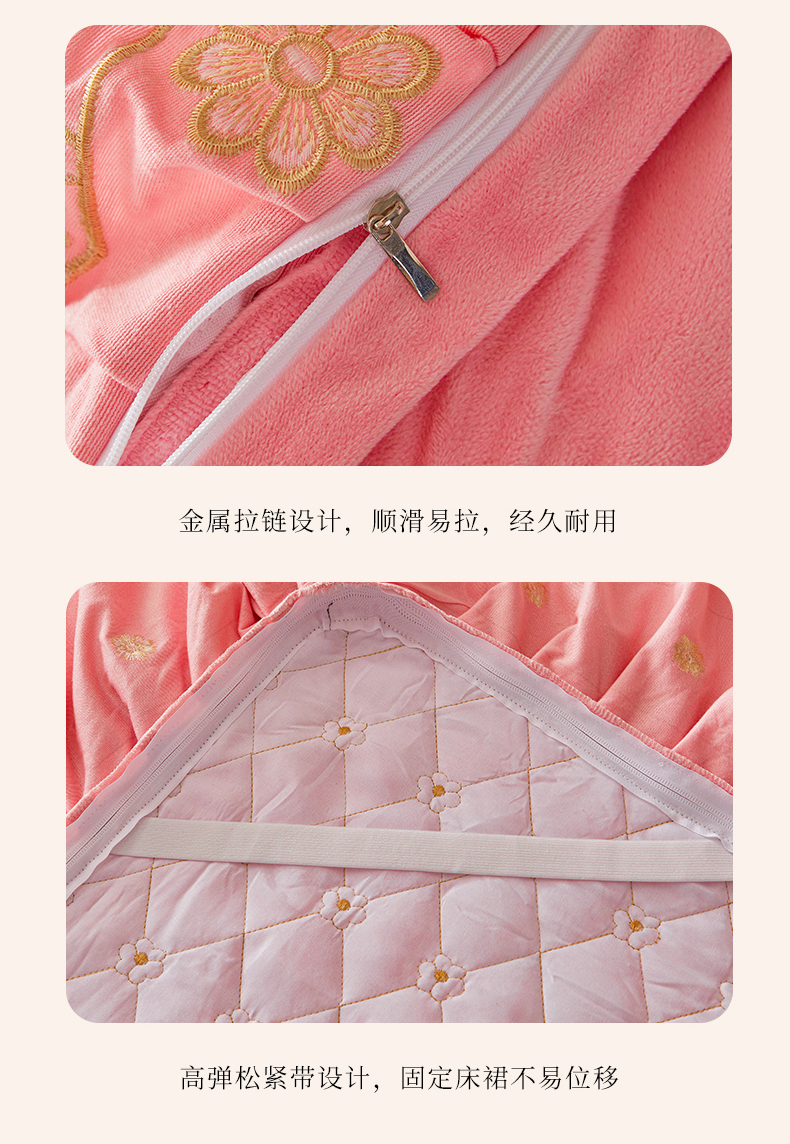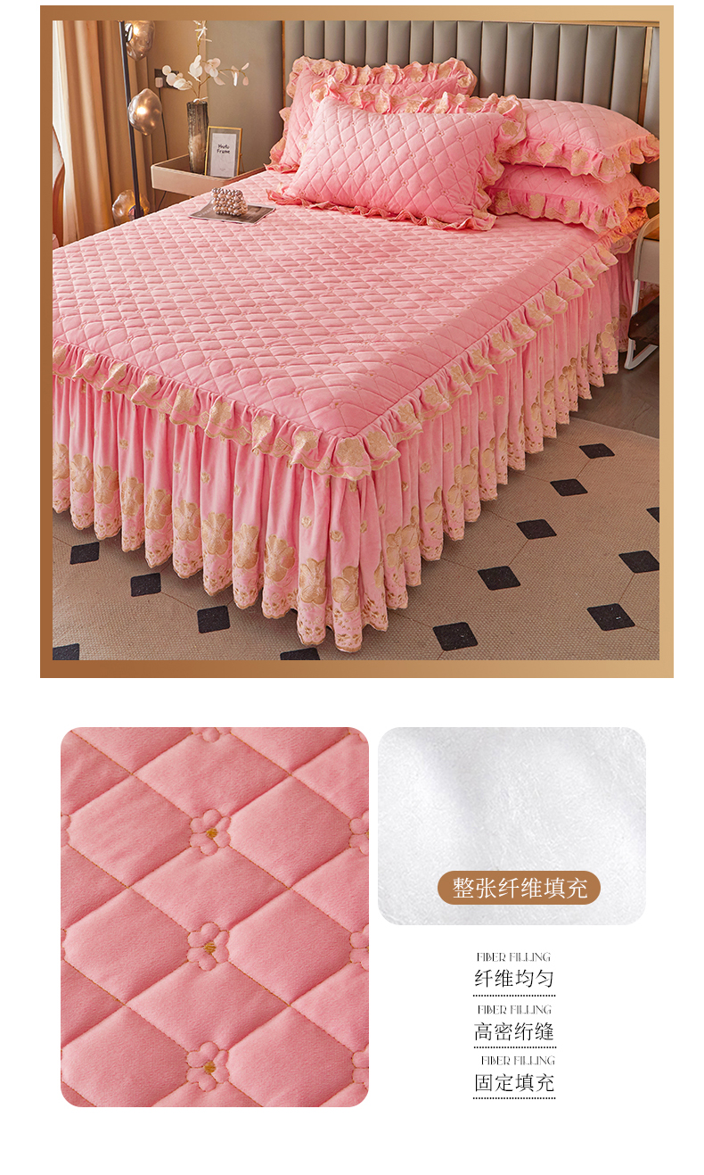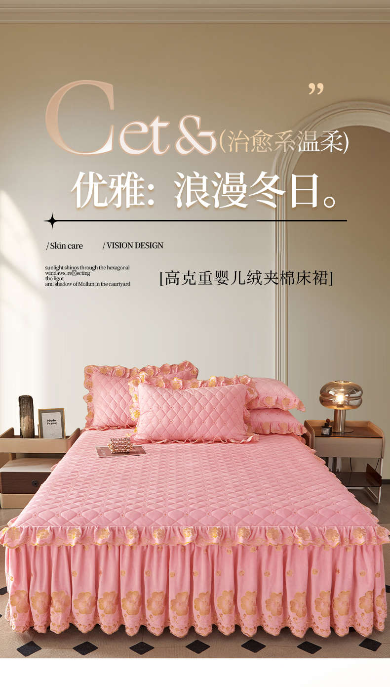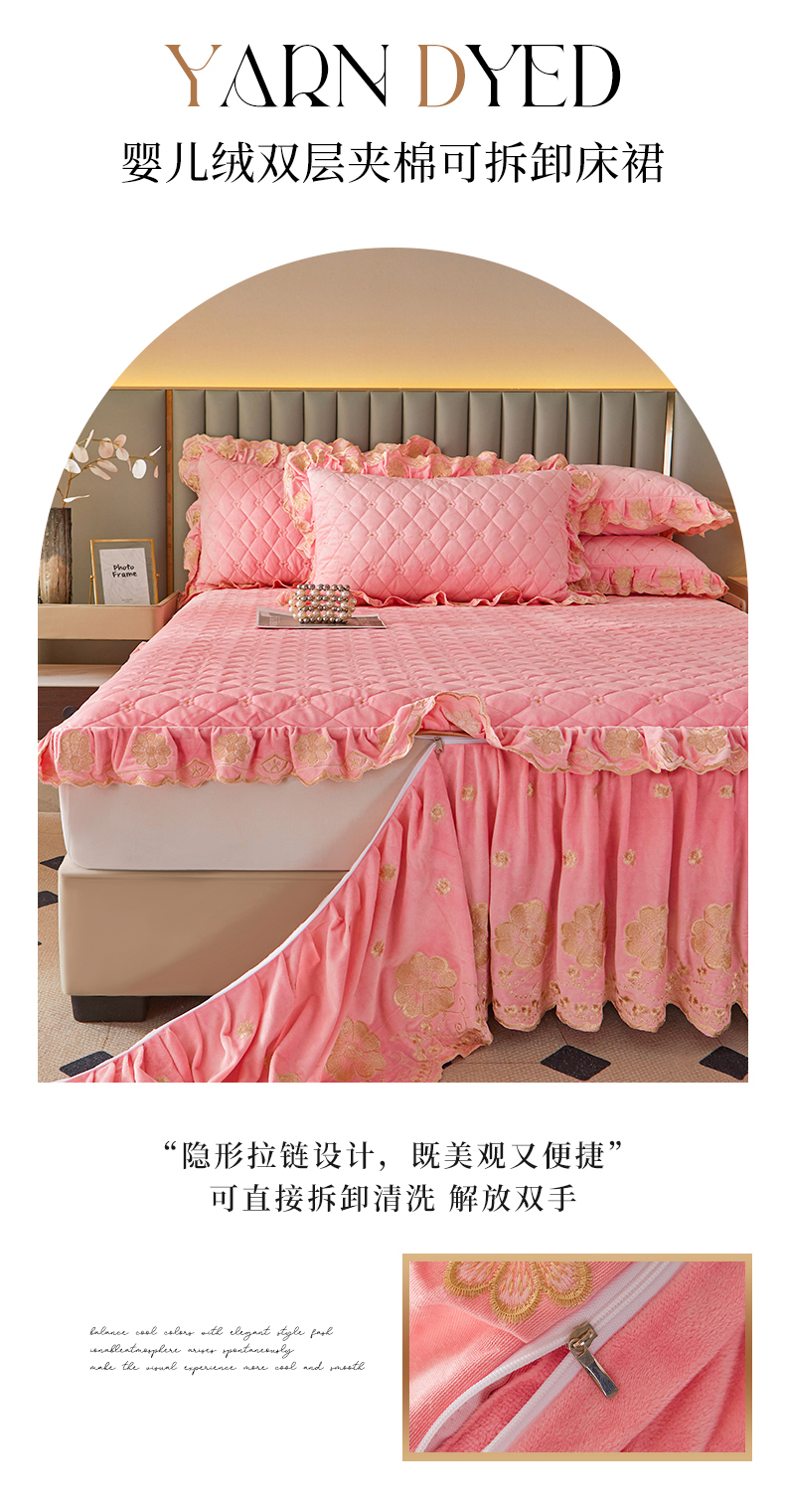 • 91家纺网 家纺一手货源 找家纺 罗艺轩 2025新款婴儿绒双层夹棉可拆卸床裙-花语 花语-樱花粉