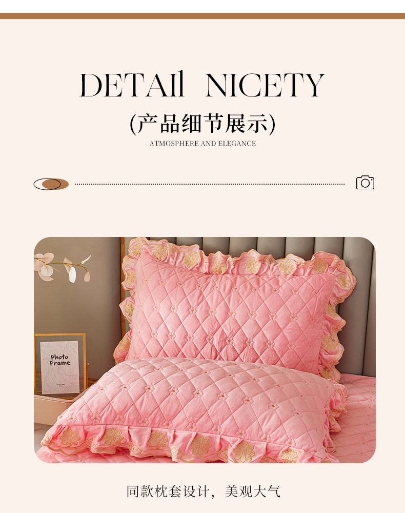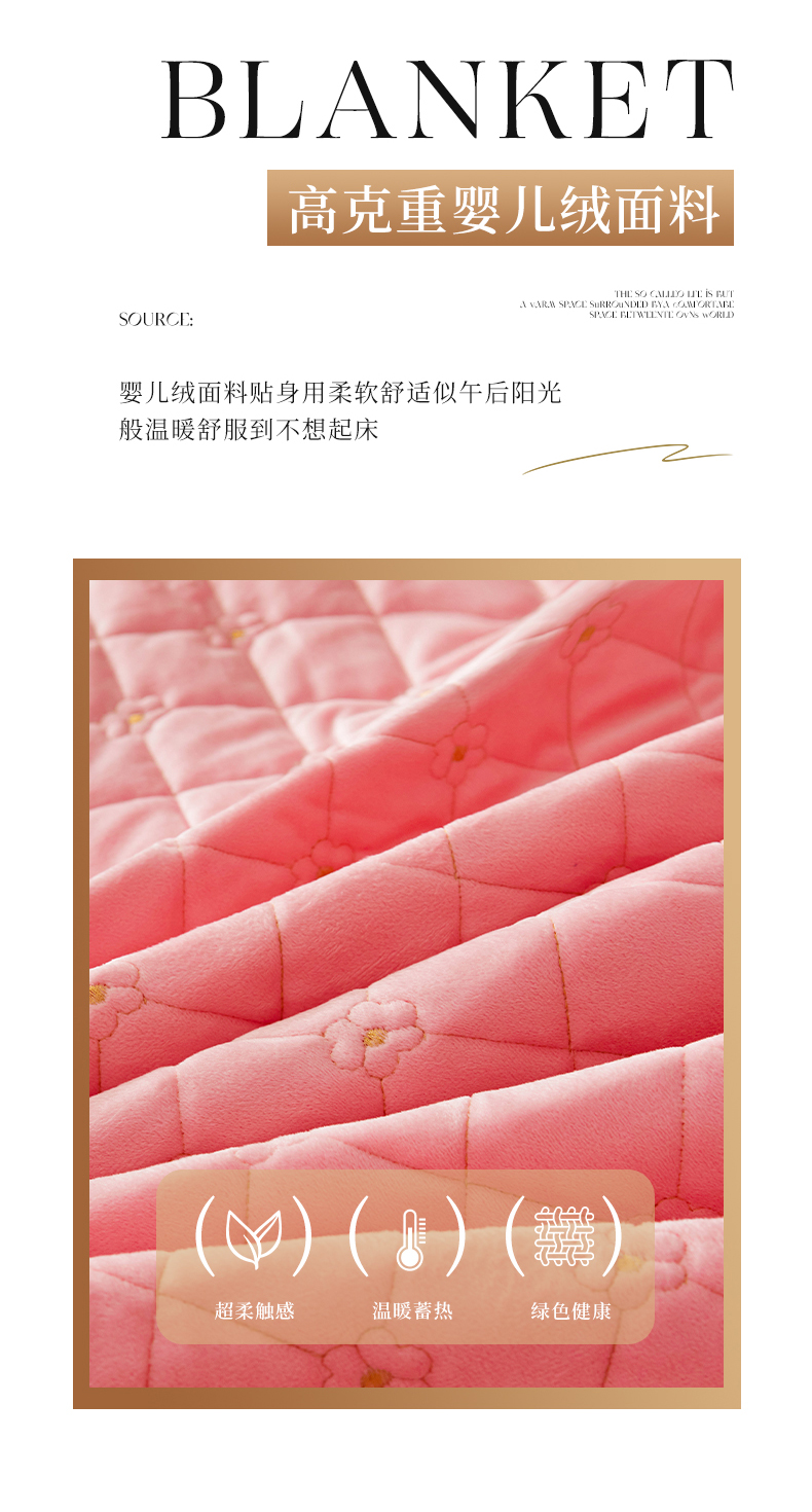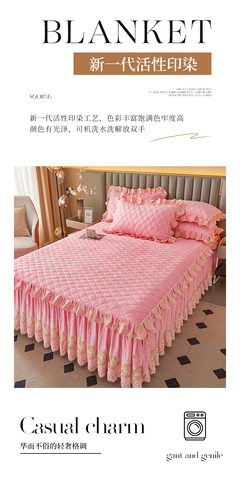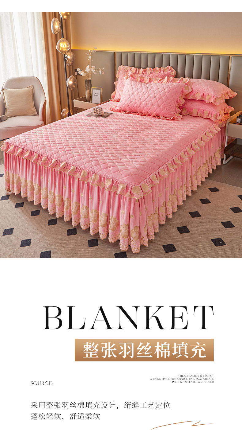 • 91家纺网 家纺一手货源 找家纺 罗艺轩 2025新款婴儿绒双层夹棉可拆卸床裙-花语 花语-樱花粉