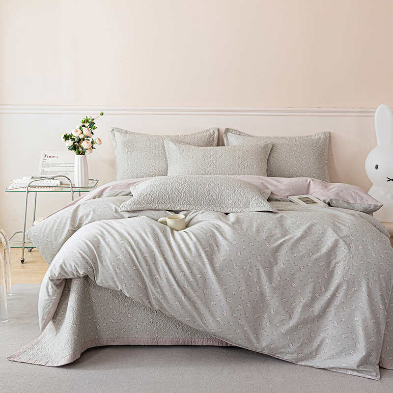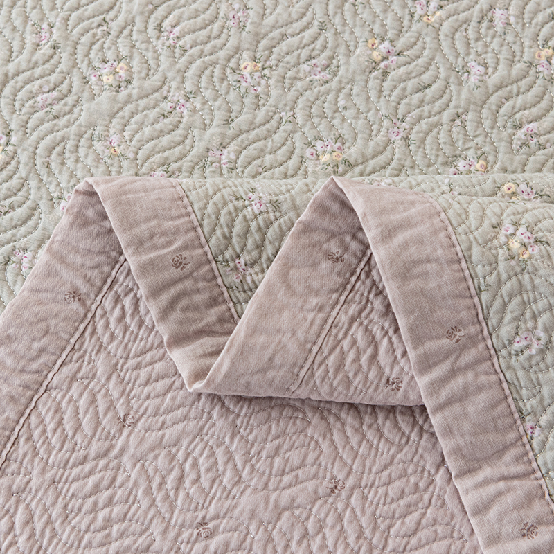 • 91家纺网 家纺一手货源 找家纺 2025新款13070双面全棉砂洗大直边床盖三件套四件套 雨溪