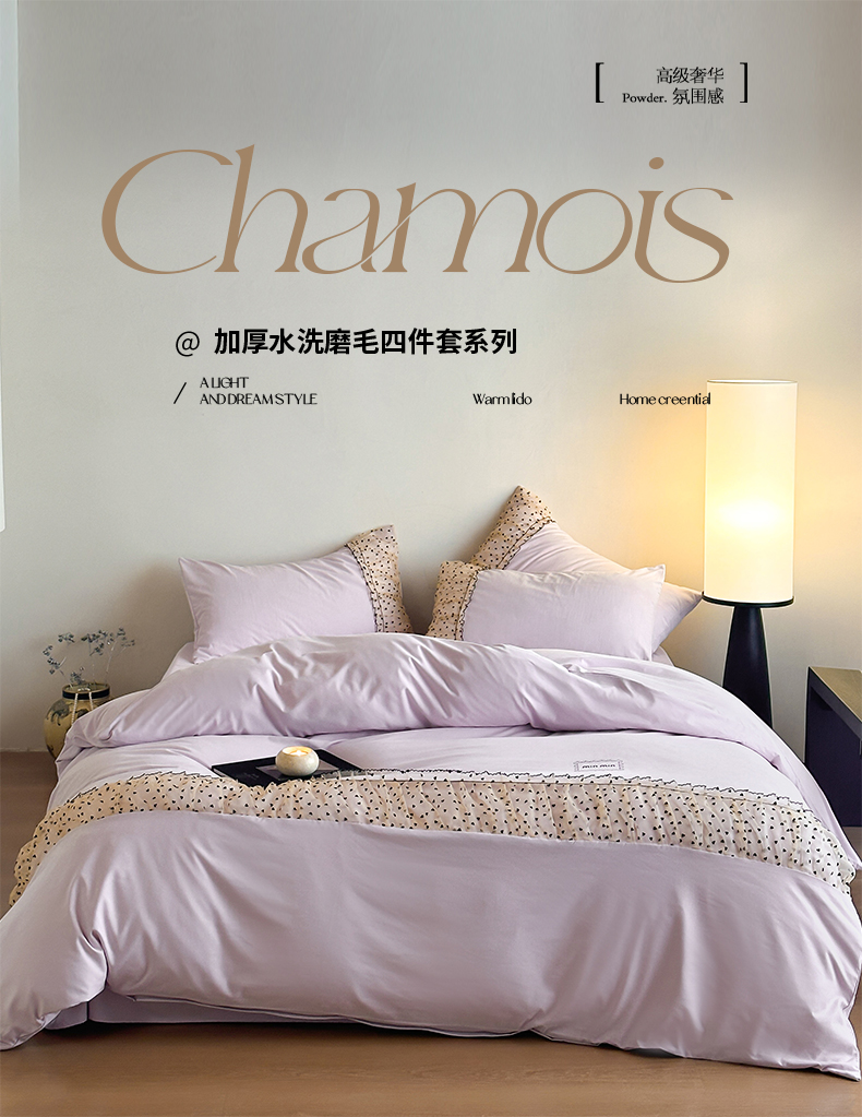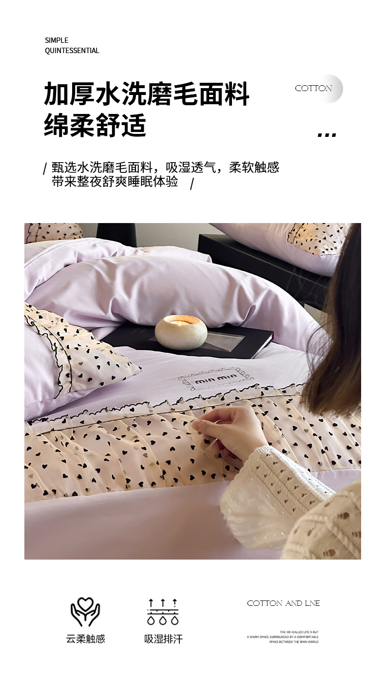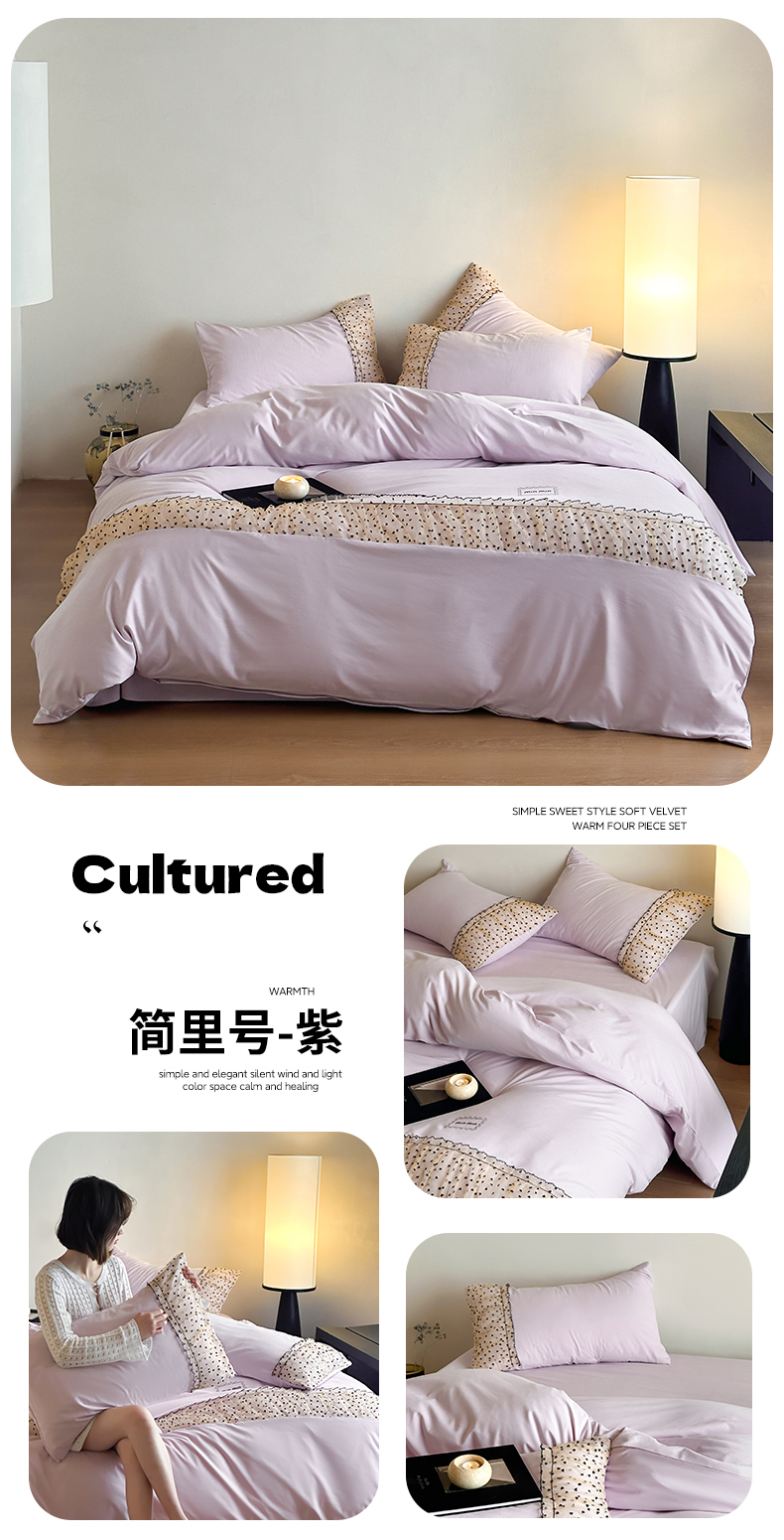 当前位置: 91家纺网 > 商品网购 > 床品套件 > 四件套 > 磨毛活性四件套 > 2025新款直播热款奶油公主风法式蕾丝花边四件套水洗磨毛纯色床笠学生三件套-简单爱 简单爱-紫