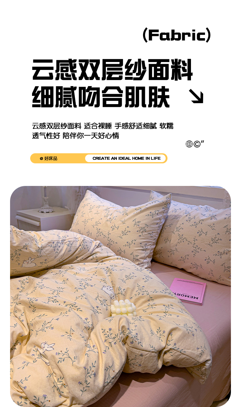当前位置: 91家纺网 > 商品网购 > 床品套件 > 四件套 > 其它四件套 > 奈颜 2025新款爆款云感提花双层纱裸睡四件套 花花小兔