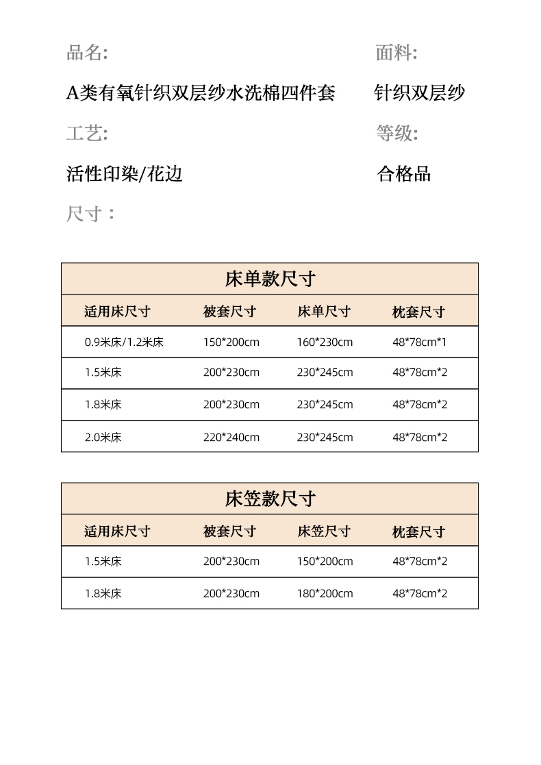 1.8m床单款四件套(被套200*230) | ¥65.00 |