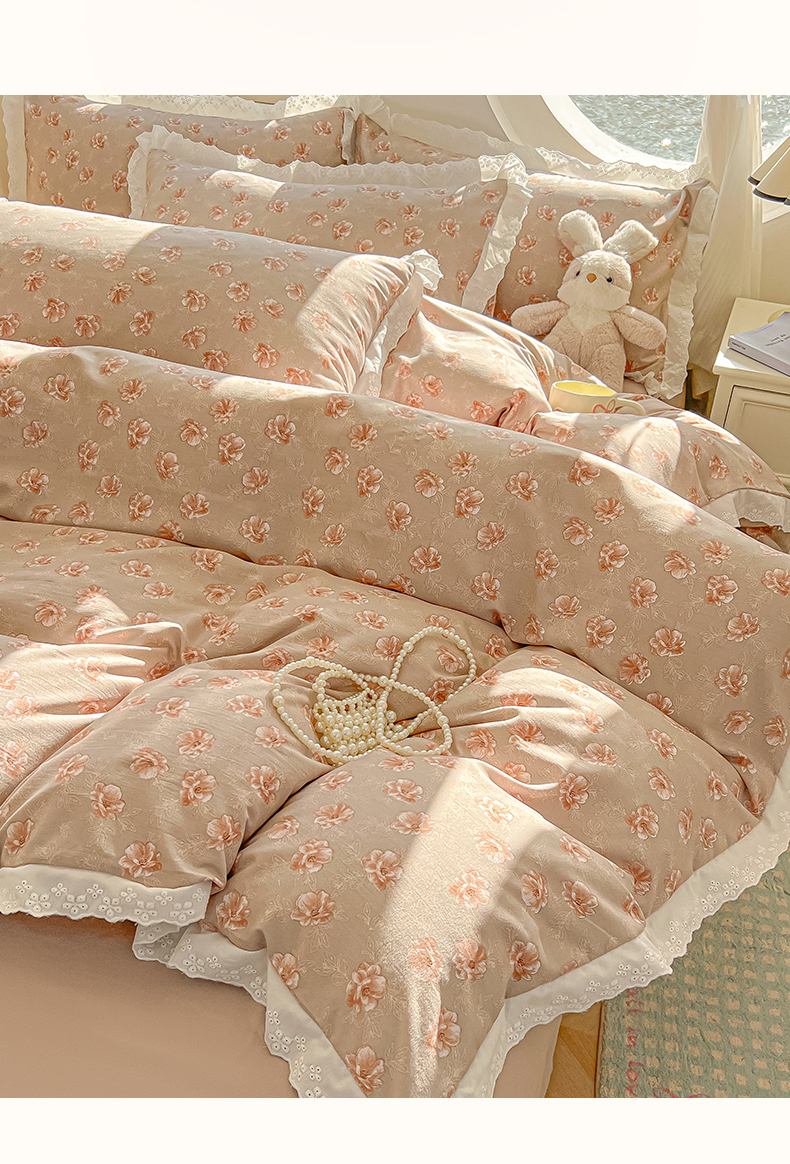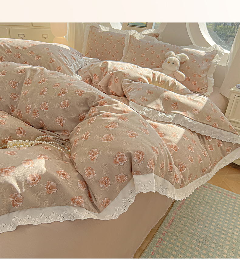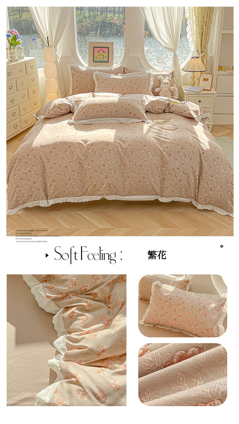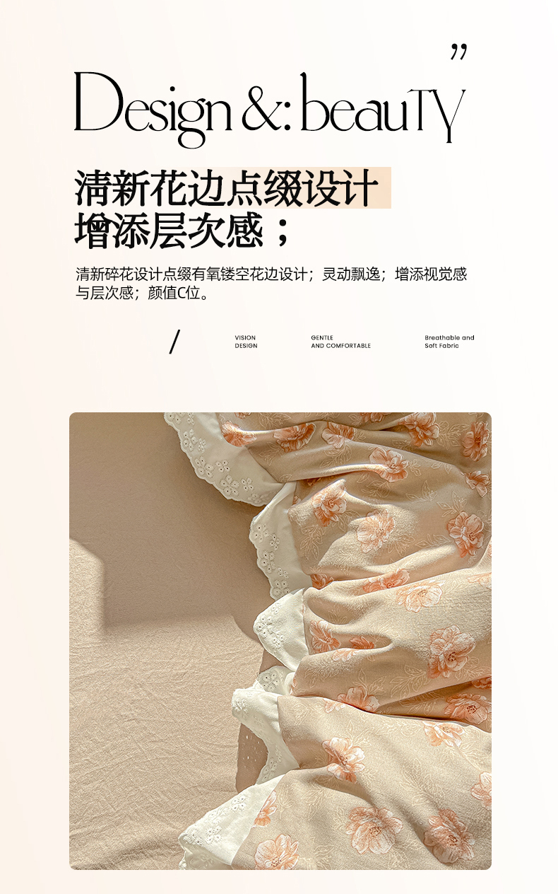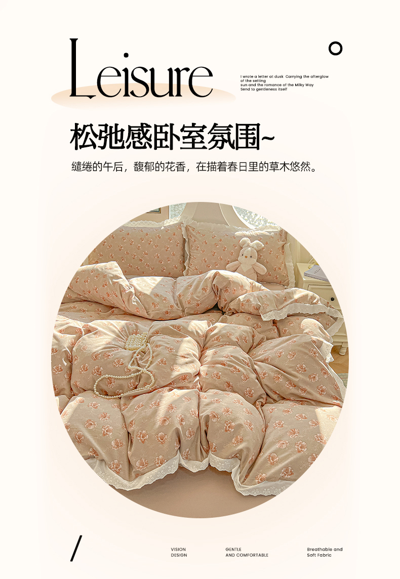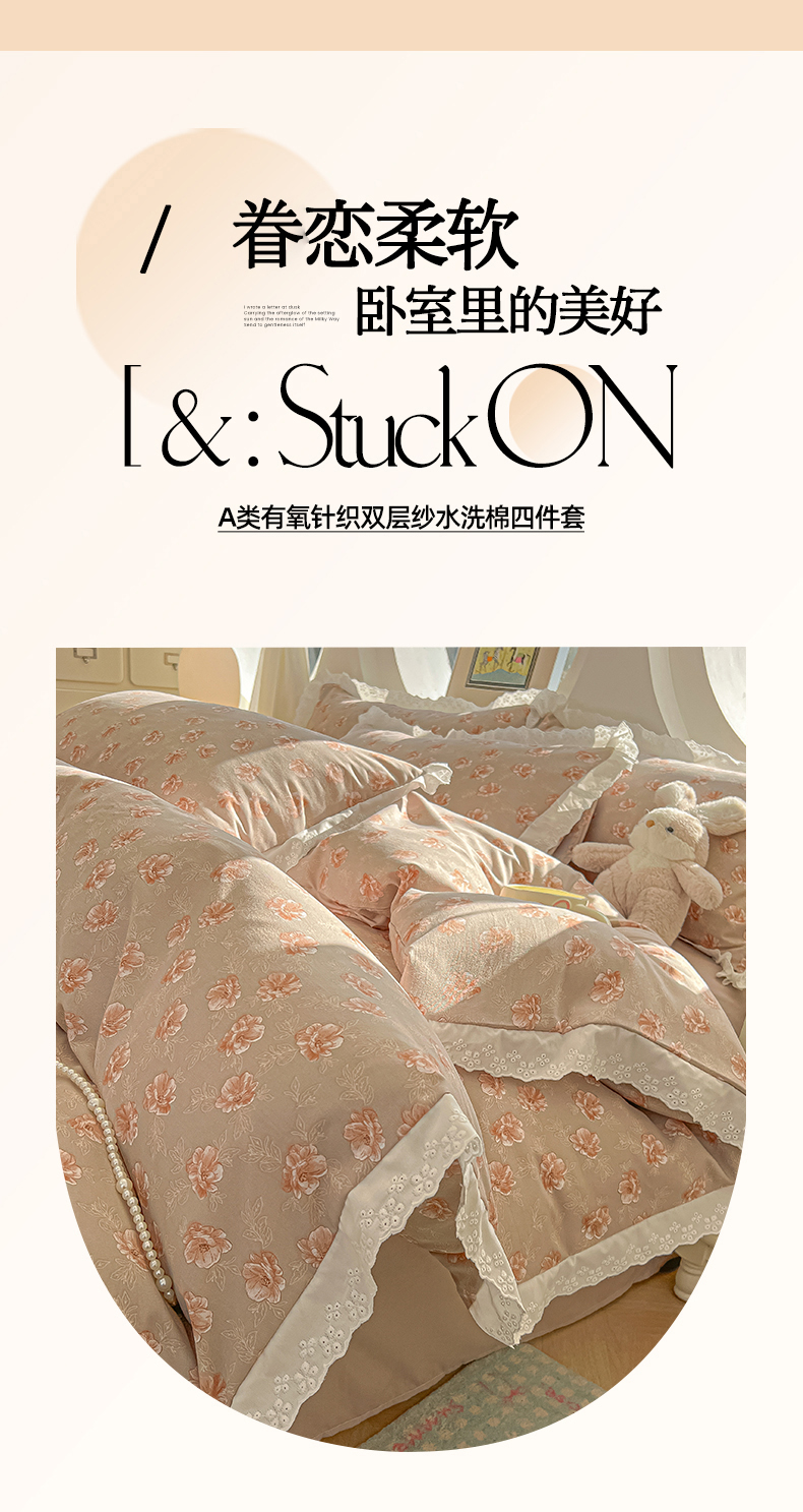 当前位置: 91家纺网 > 商品网购 > 床品套件 > 四件套 > 双层纱四件套 > 多乐家纺 2025新款A类有氧针织双层纱水洗棉四件套(提供买家秀) 繁花