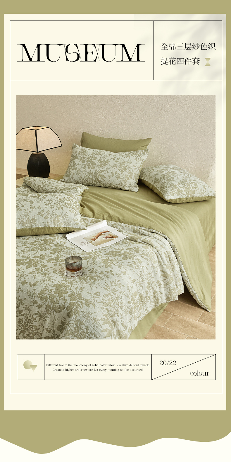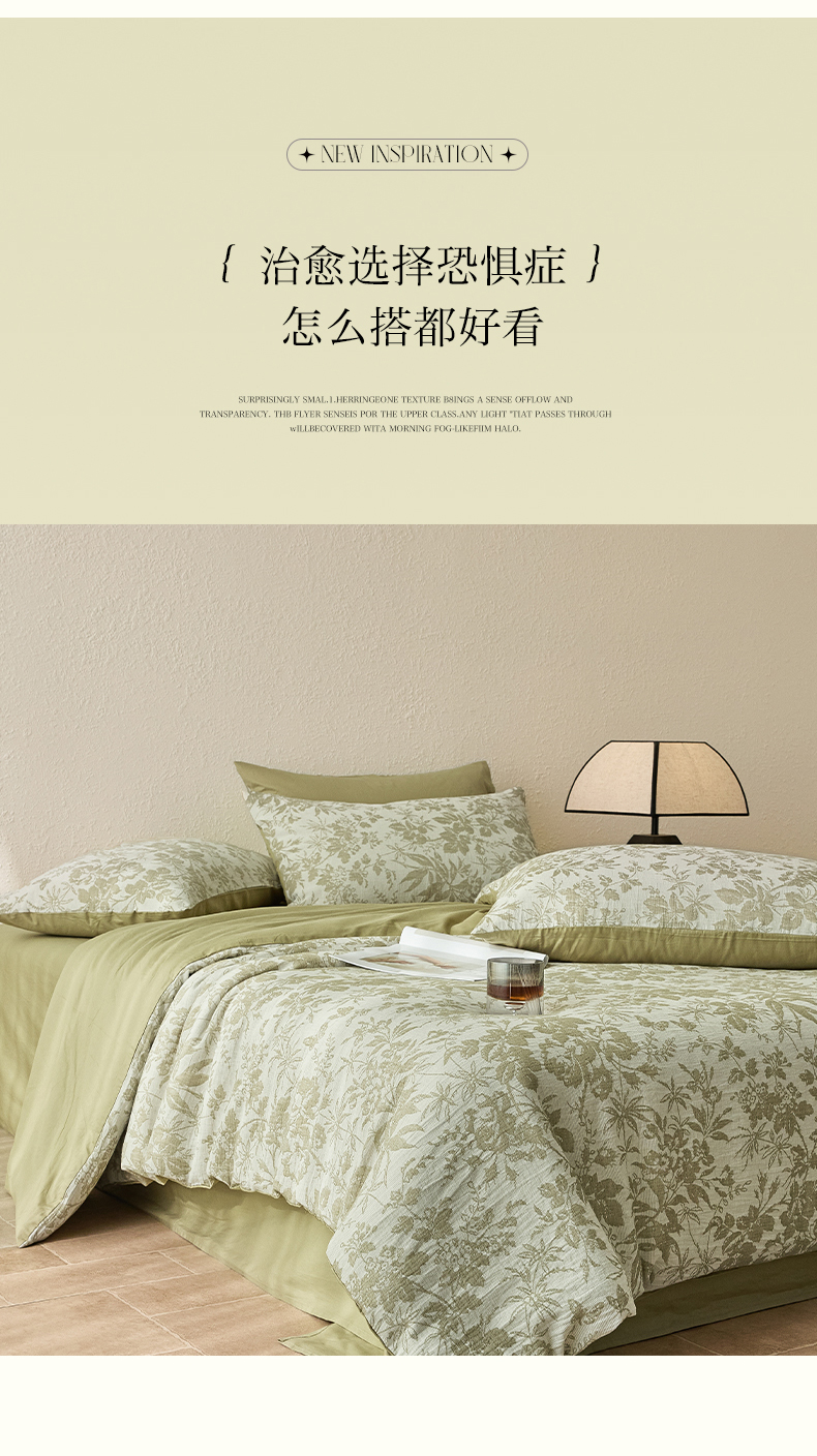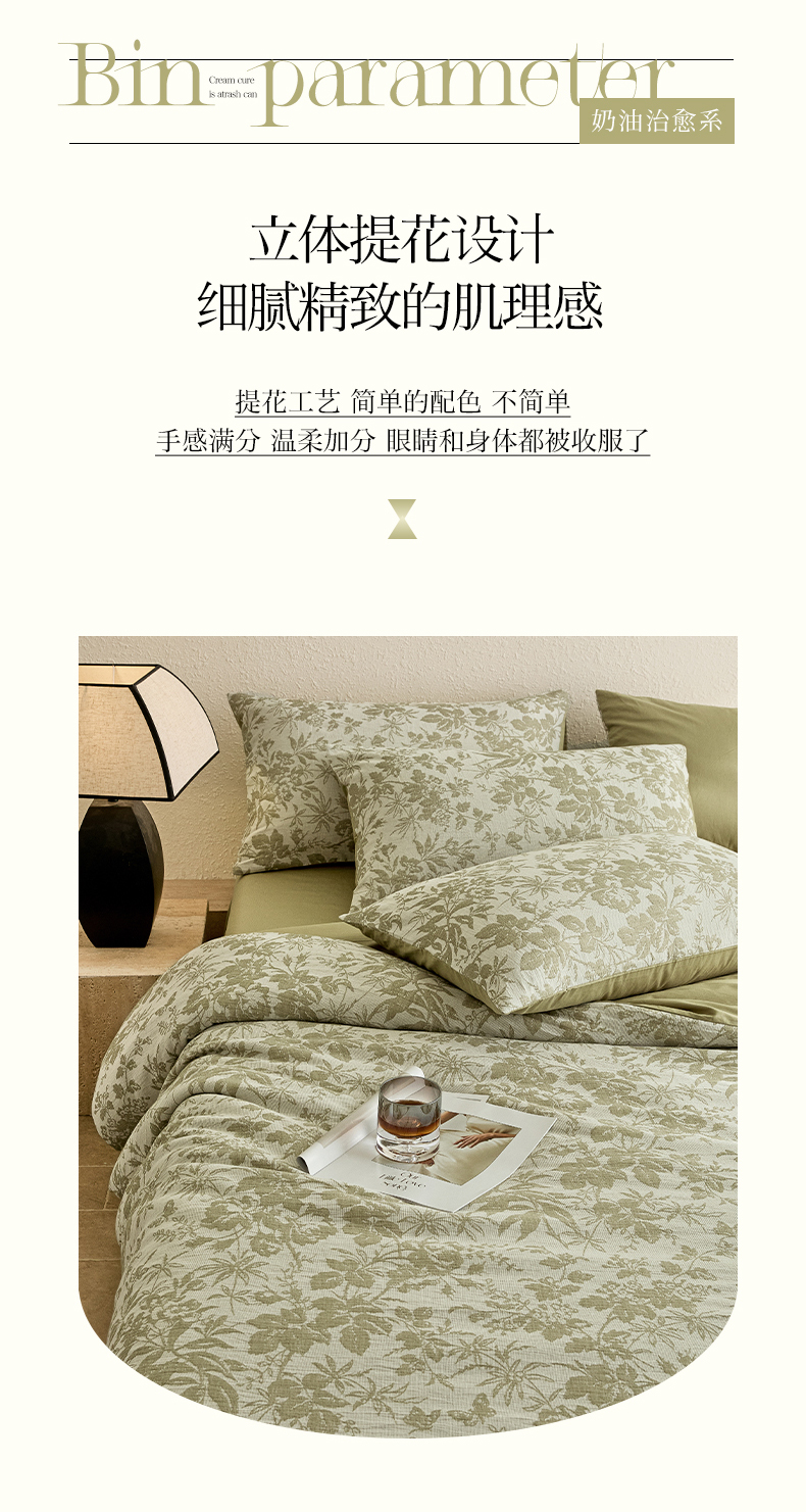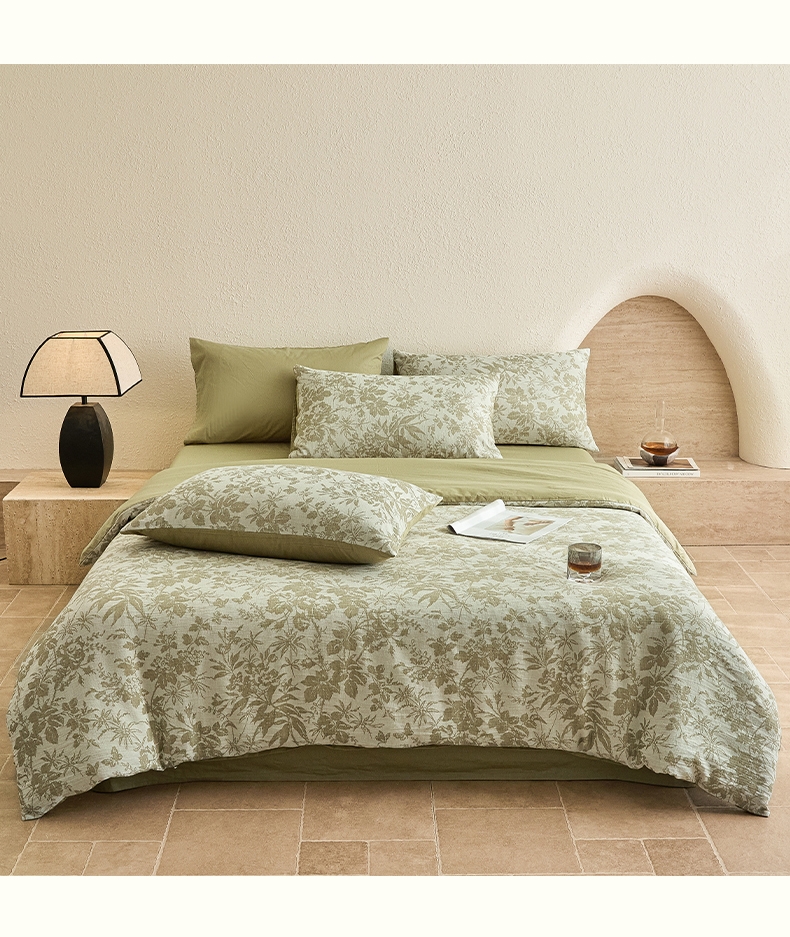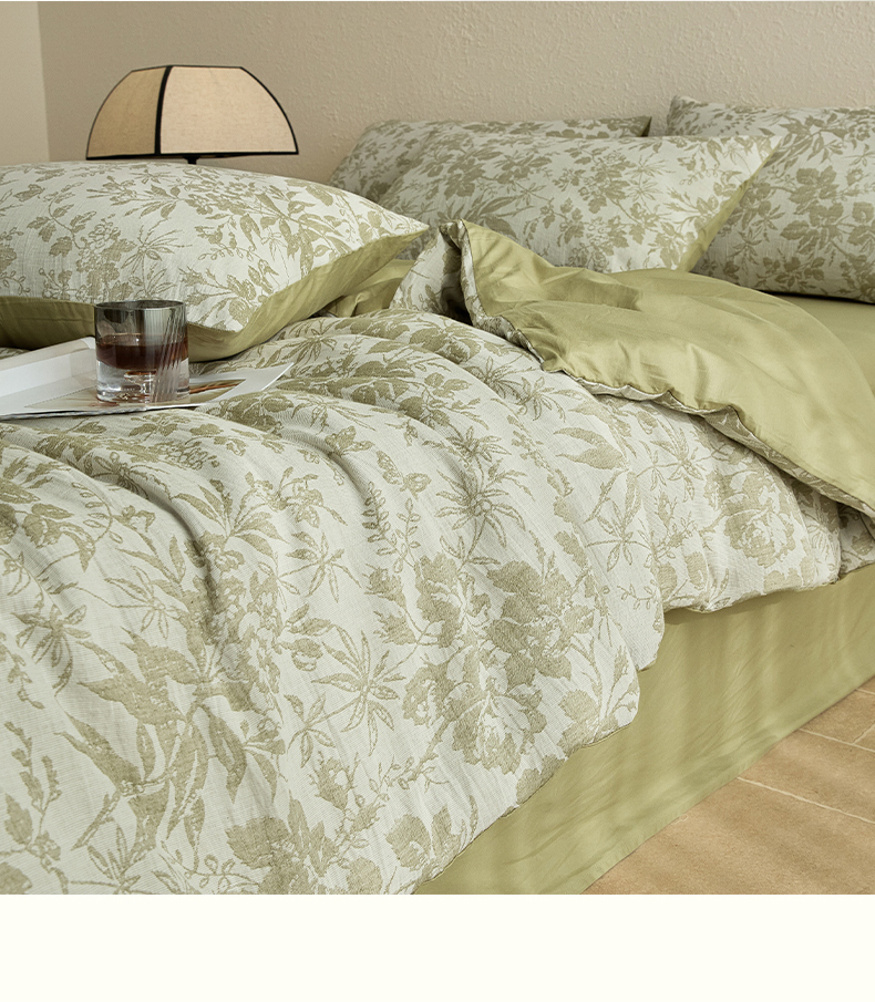当前位置: 91家纺网 > 商品网购 > 床品套件 > 四件套 > 全棉普通四件套 > 2025新款全棉三层纱色织大提花四件套系列 雪月-果绿