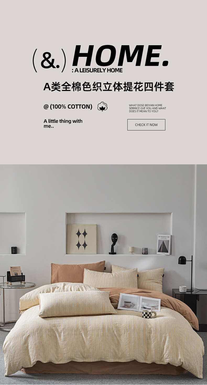 格里芬家纺 2025新款全棉色织水洗立体提花四件套-柏林 柏林-黄