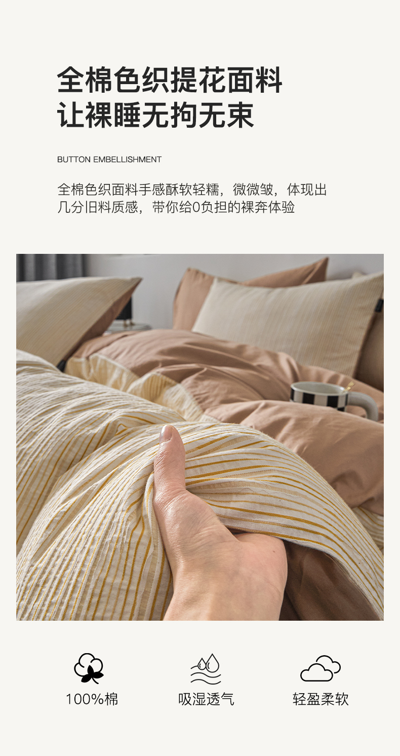 商品名称:格里芬家纺 2025新款全棉色织水洗立体提花四件套-柏林 柏林-黄