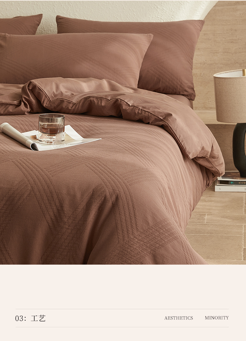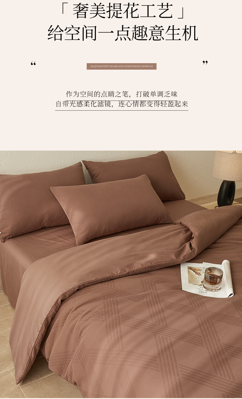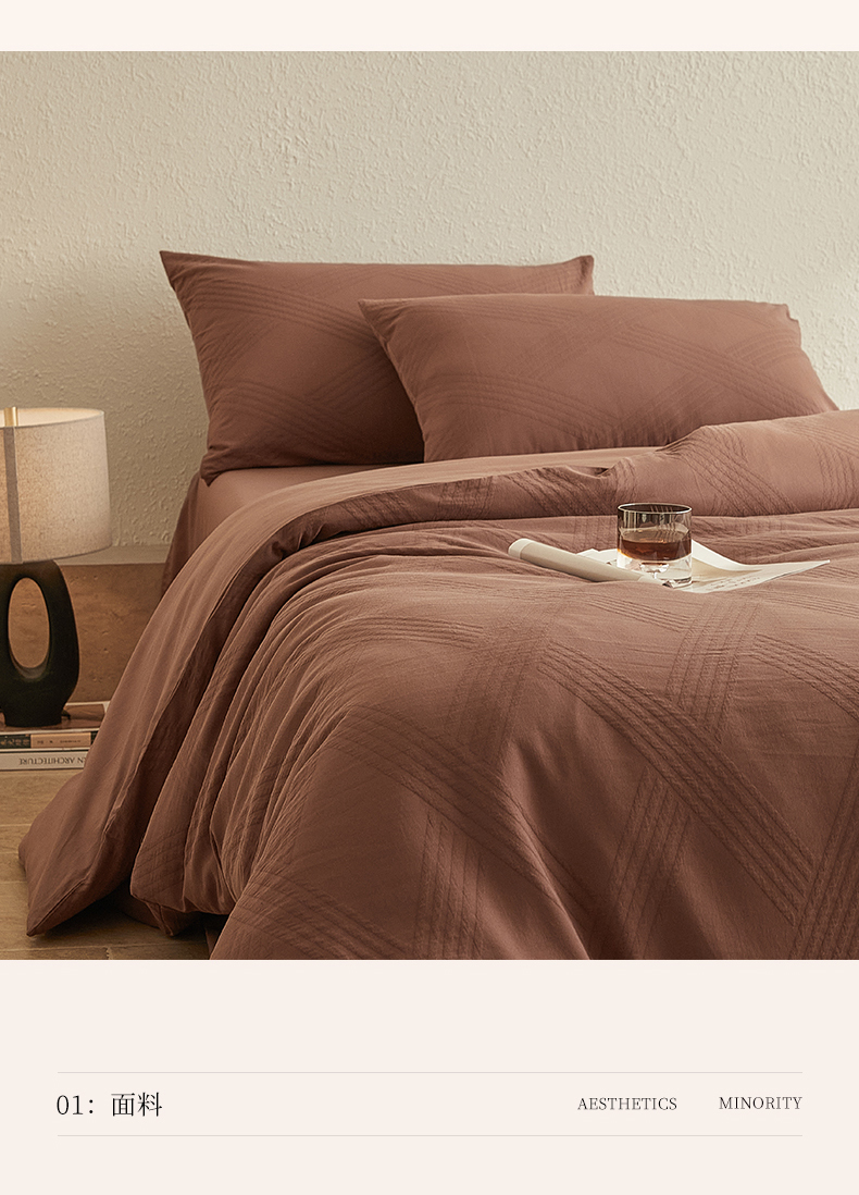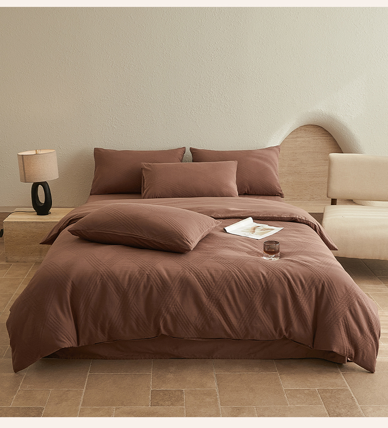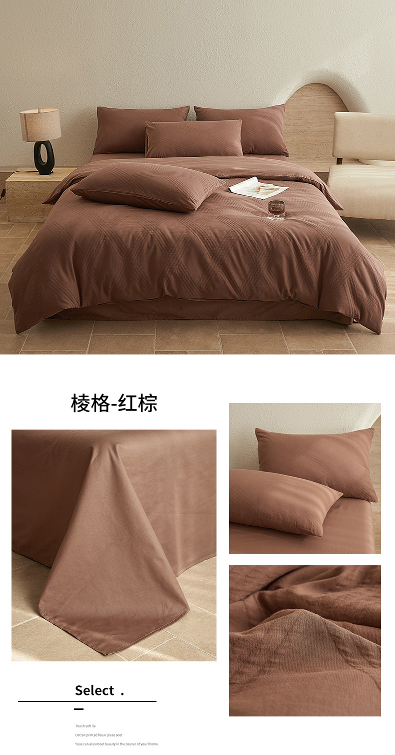 当前位置: 91家纺网 > 商品网购 > 床品套件 > 四件套 > 全棉普通四件套 > 2025新款全棉三层纱浮雕大提花四件套系列 棱格-红棕