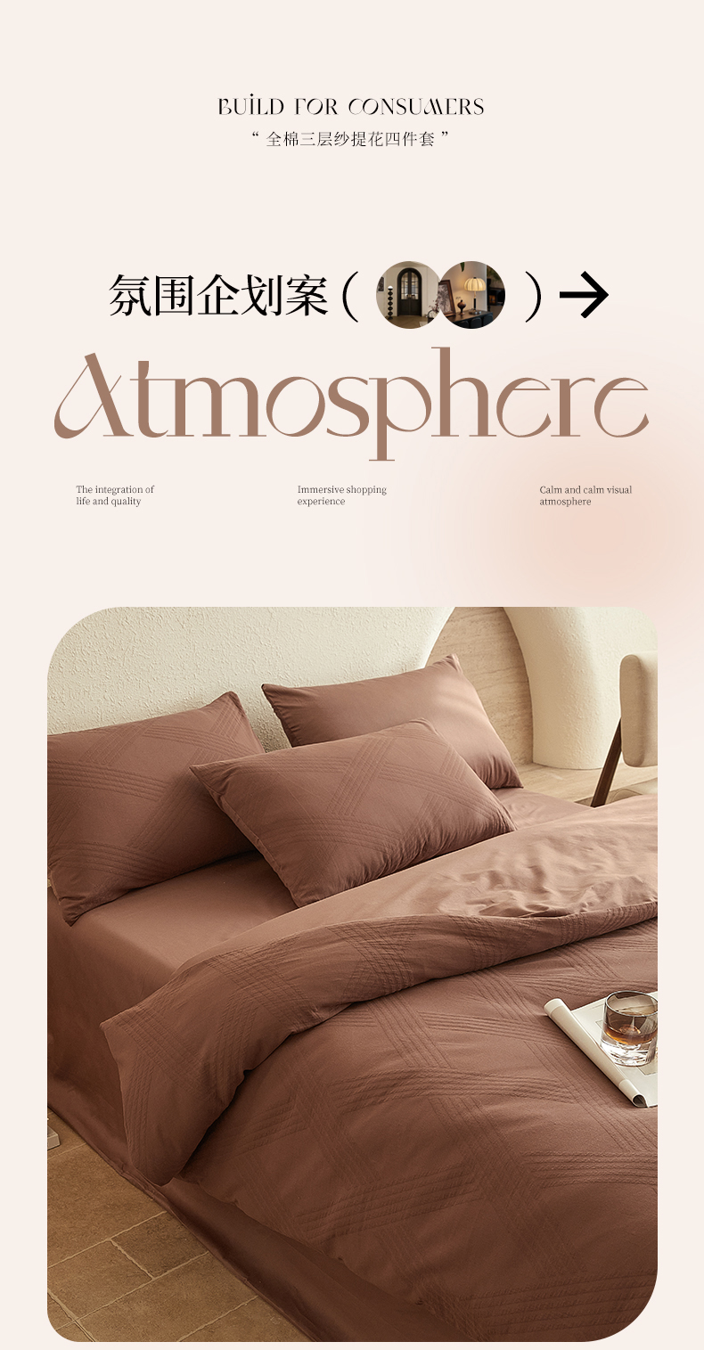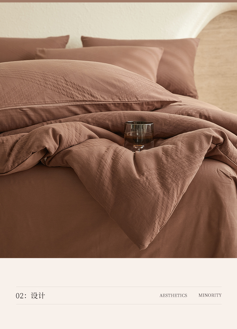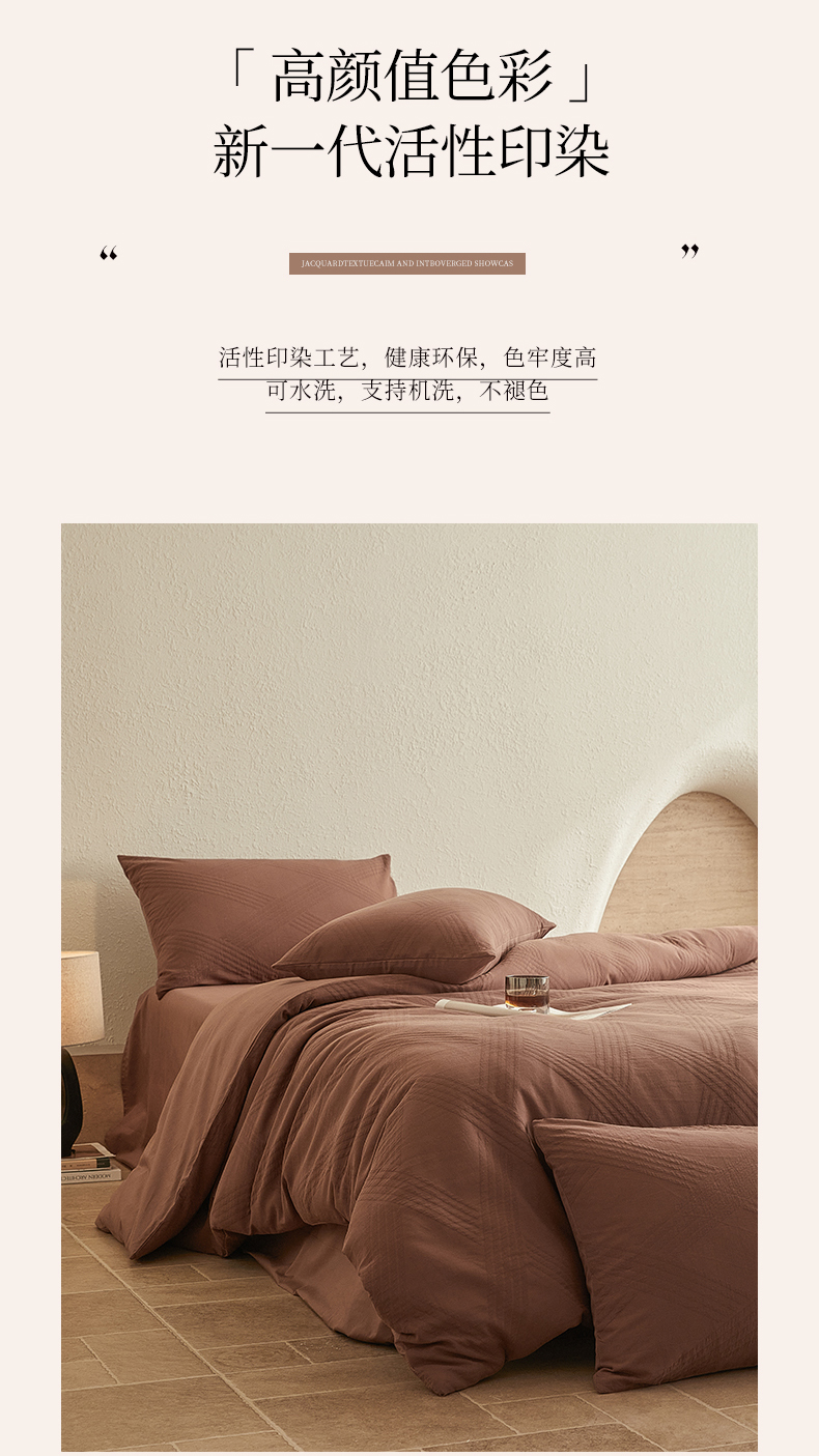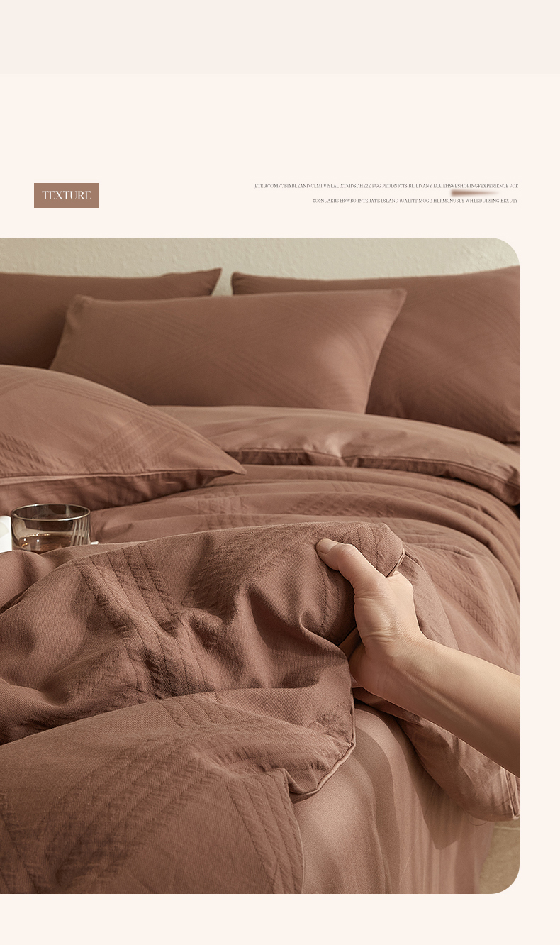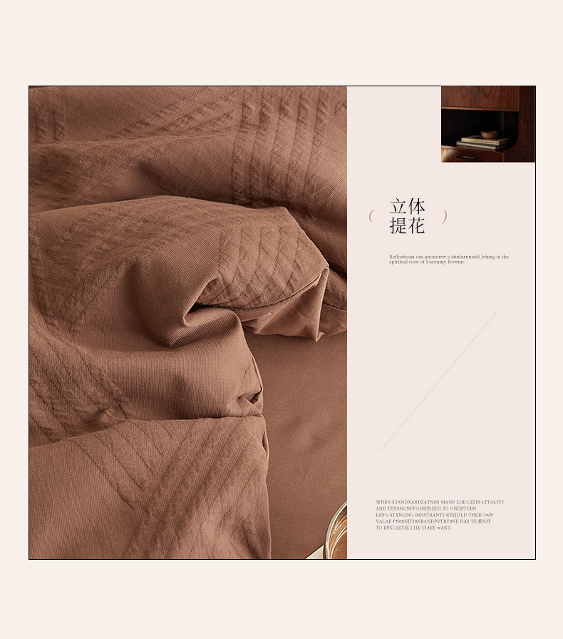 当前位置: 91家纺网 > 商品网购 > 床品套件 > 四件套 > 全棉普通四件套 > 2025新款全棉三层纱浮雕大提花四件套系列 棱格-红棕