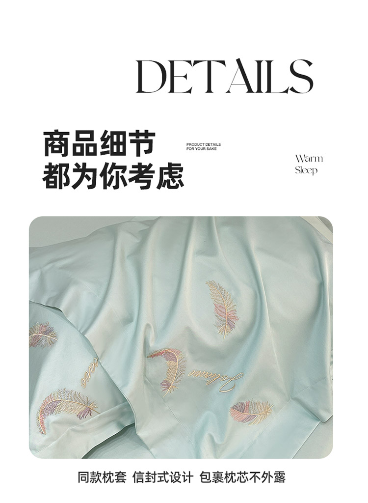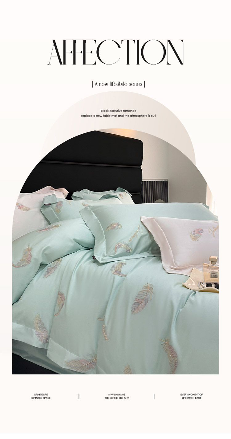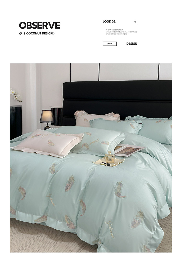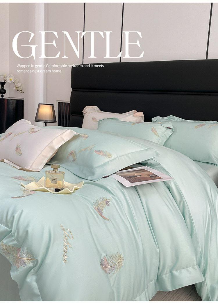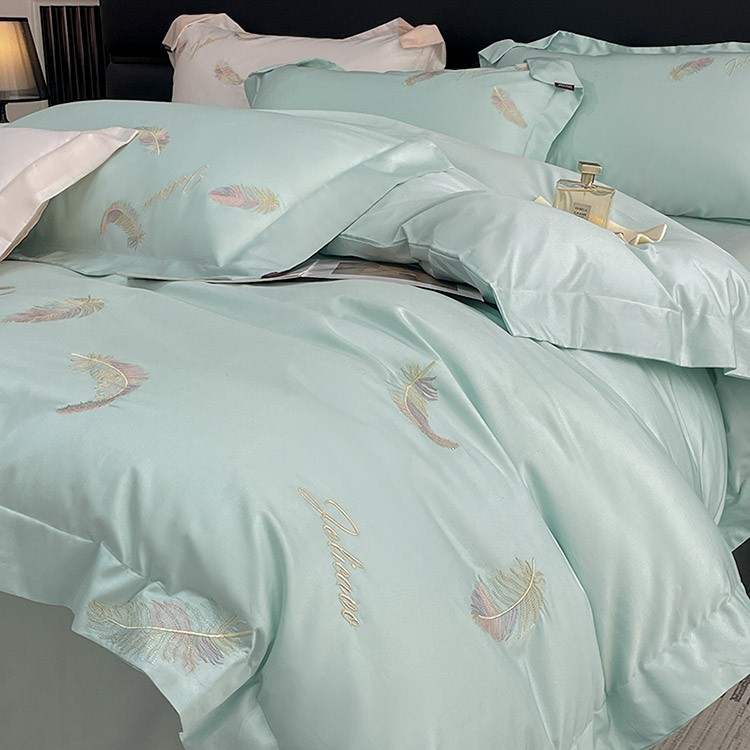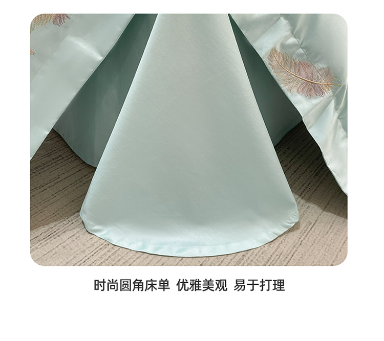 商品名称:2025春夏长绒棉四件套纯棉全棉轻奢风床单被套重工刺绣床上用品 芊羽梦-茶绿