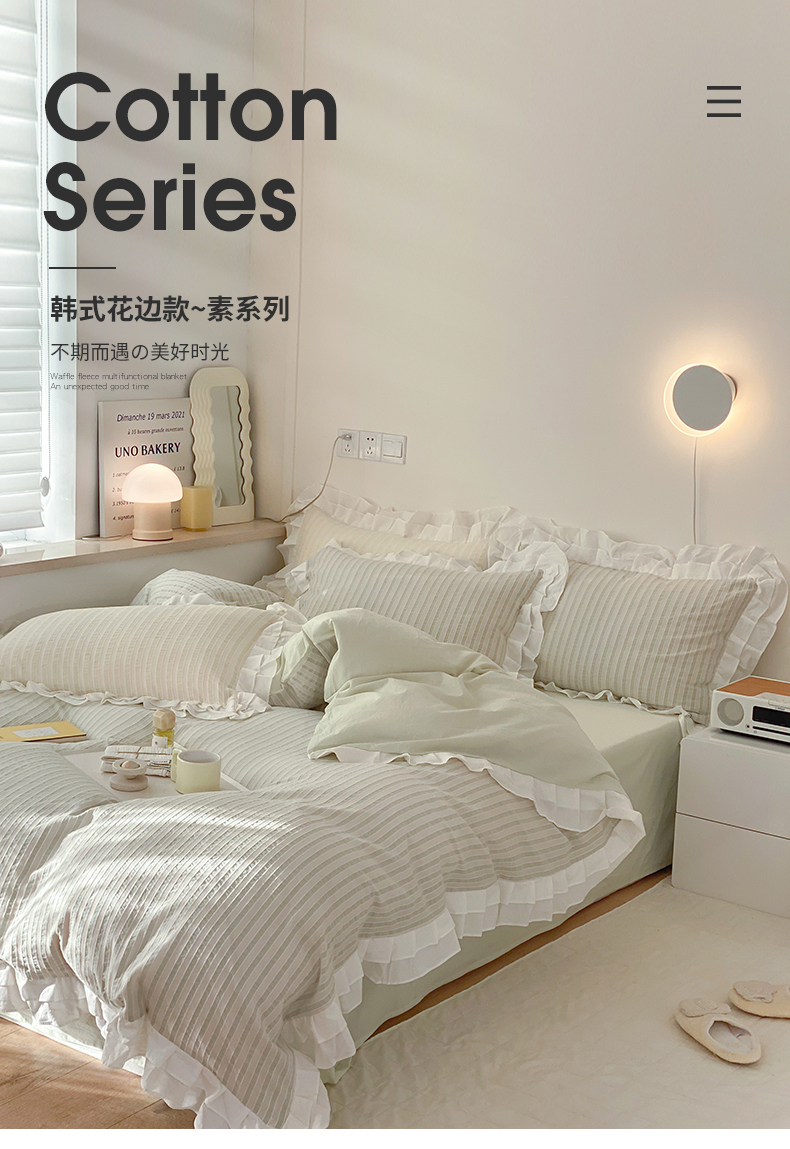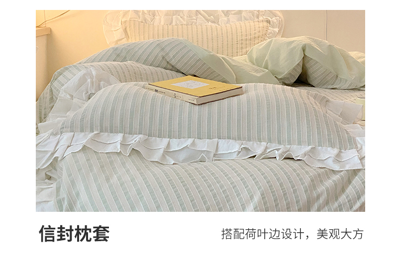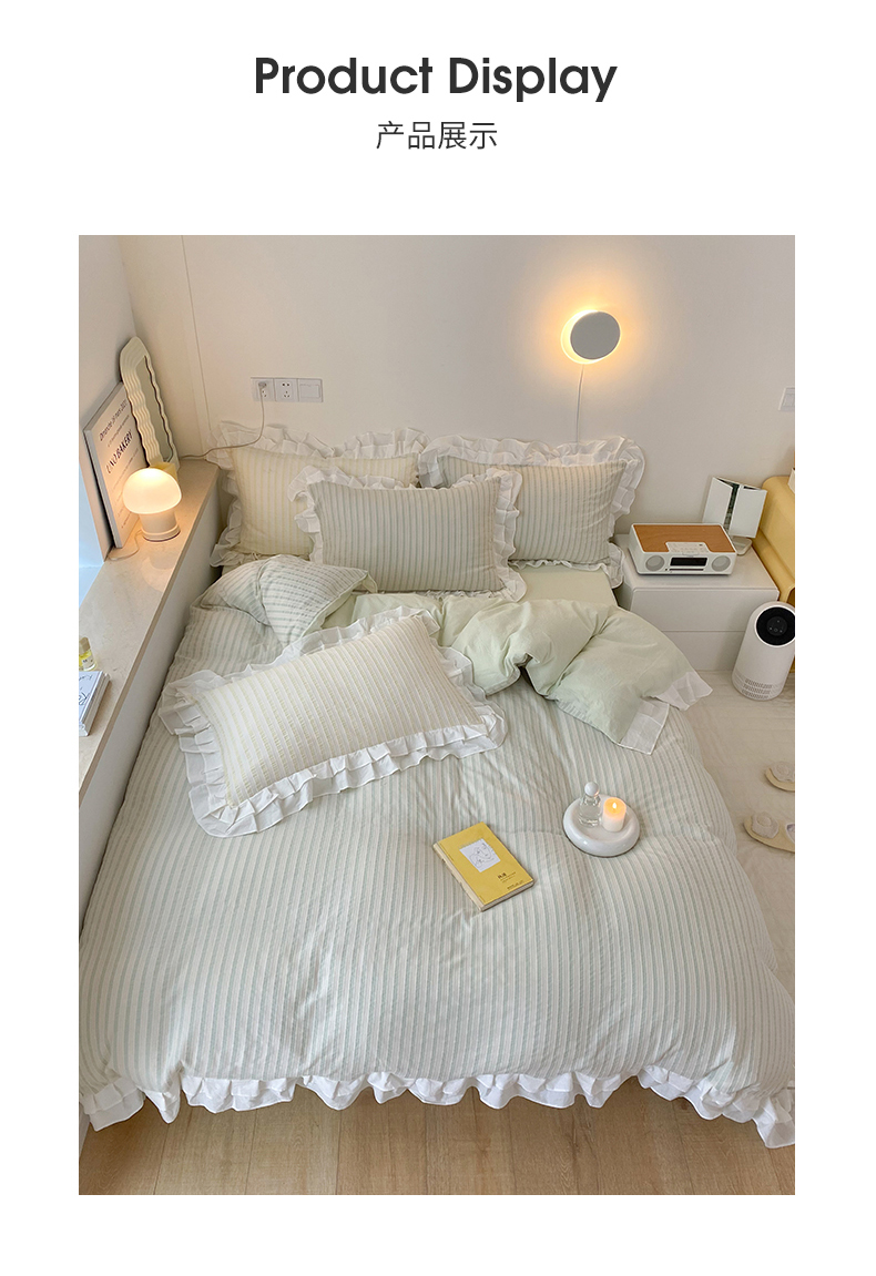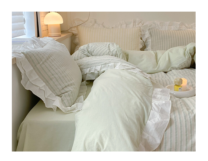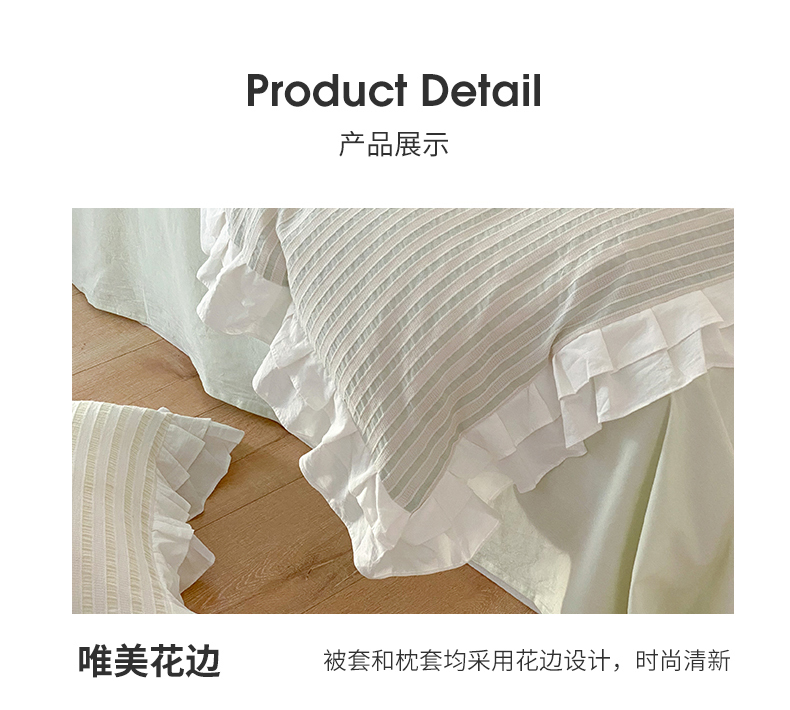 商品名称:尺素 2025新款色织水洗棉韩式花边款素系列四件套 中青