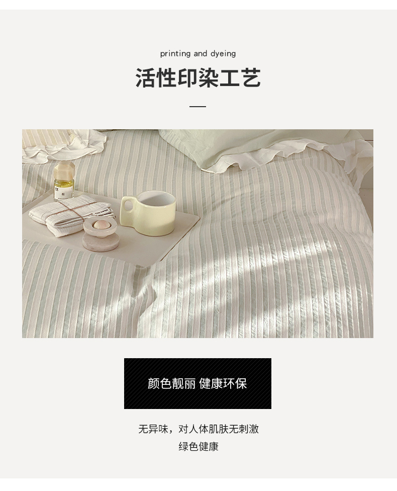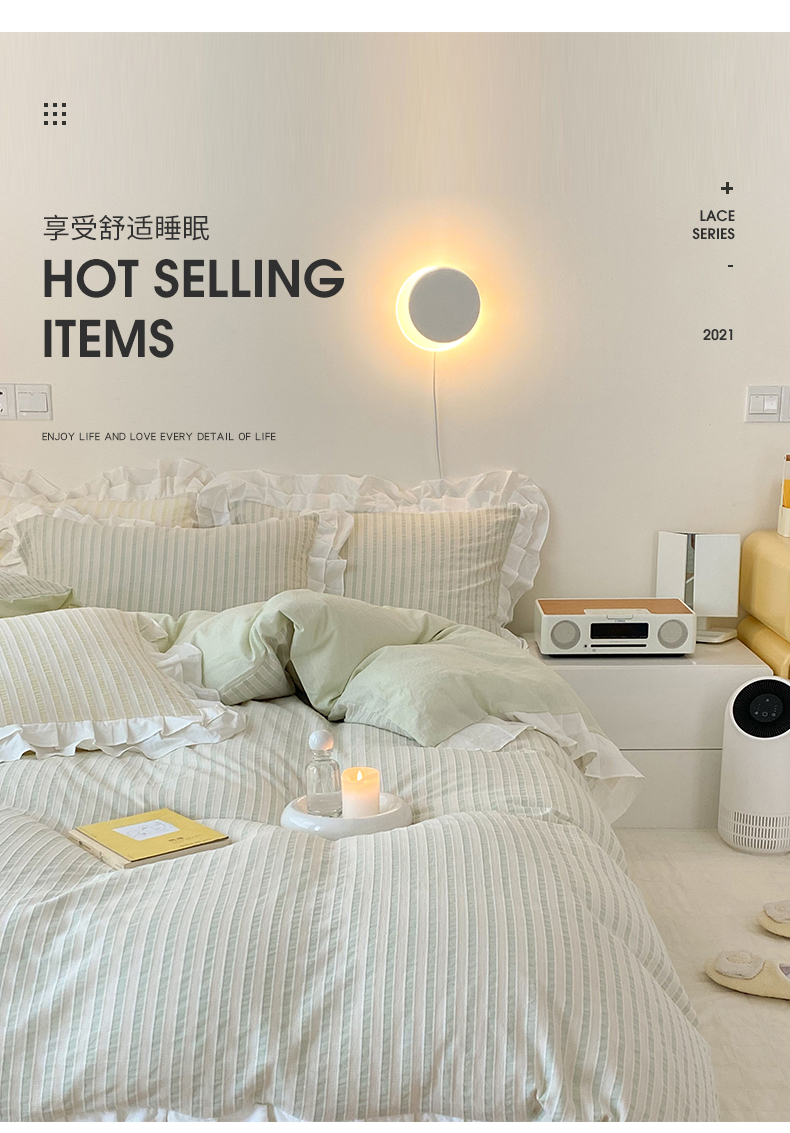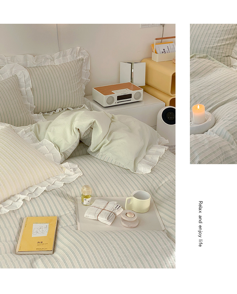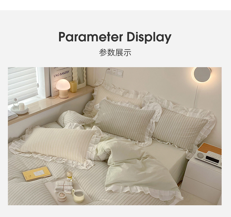 商品名称:尺素 2025新款色织水洗棉韩式花边款素系列四件套 中青