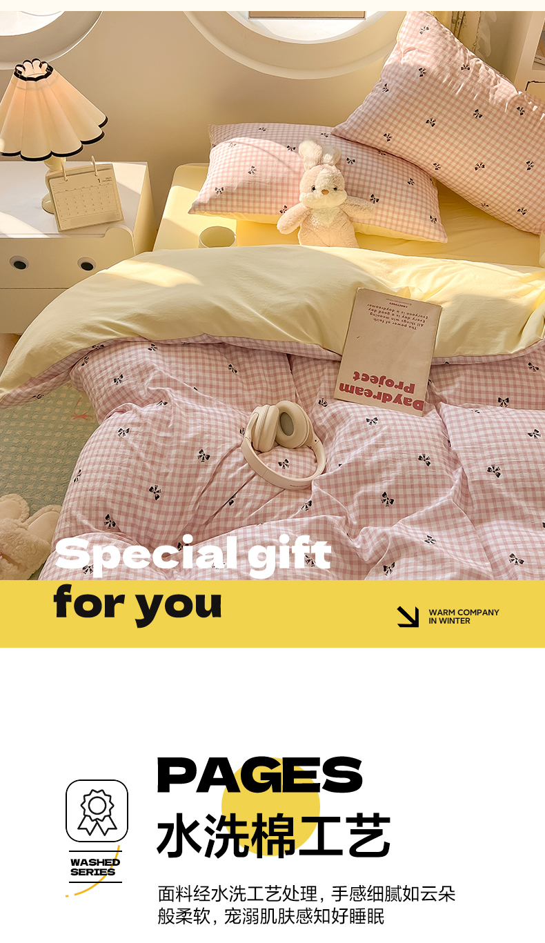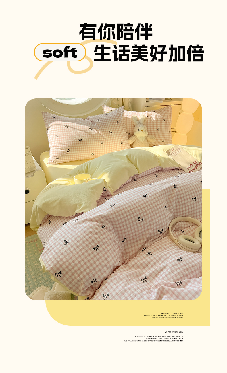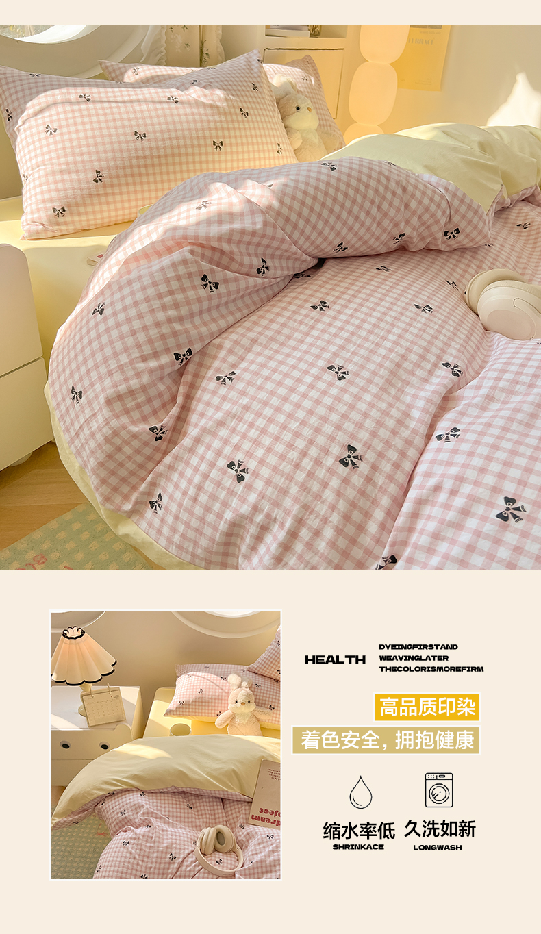 (总)韩巢家纺 2025新款水洗棉ins风格子被套床单四件套-蝴蝶结格子(提供卖家秀)