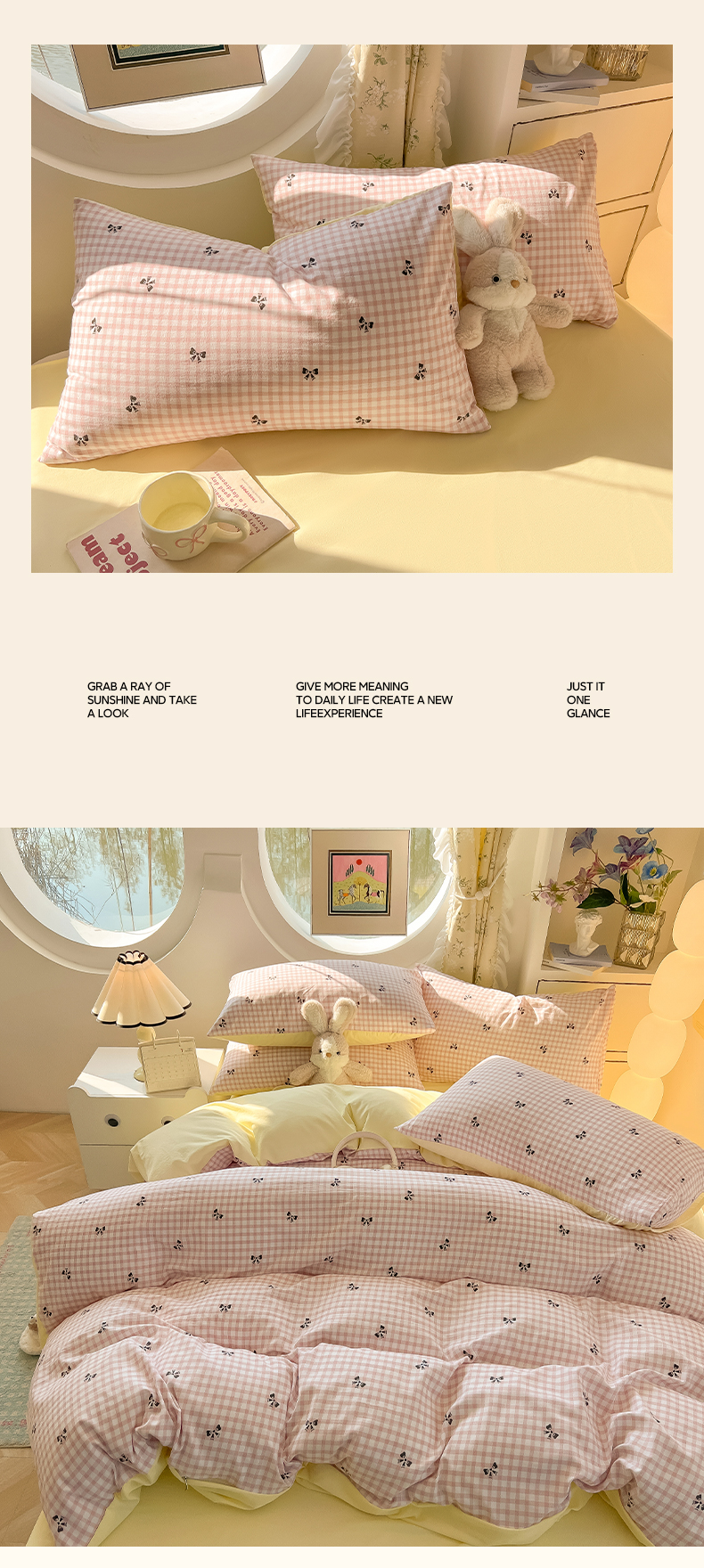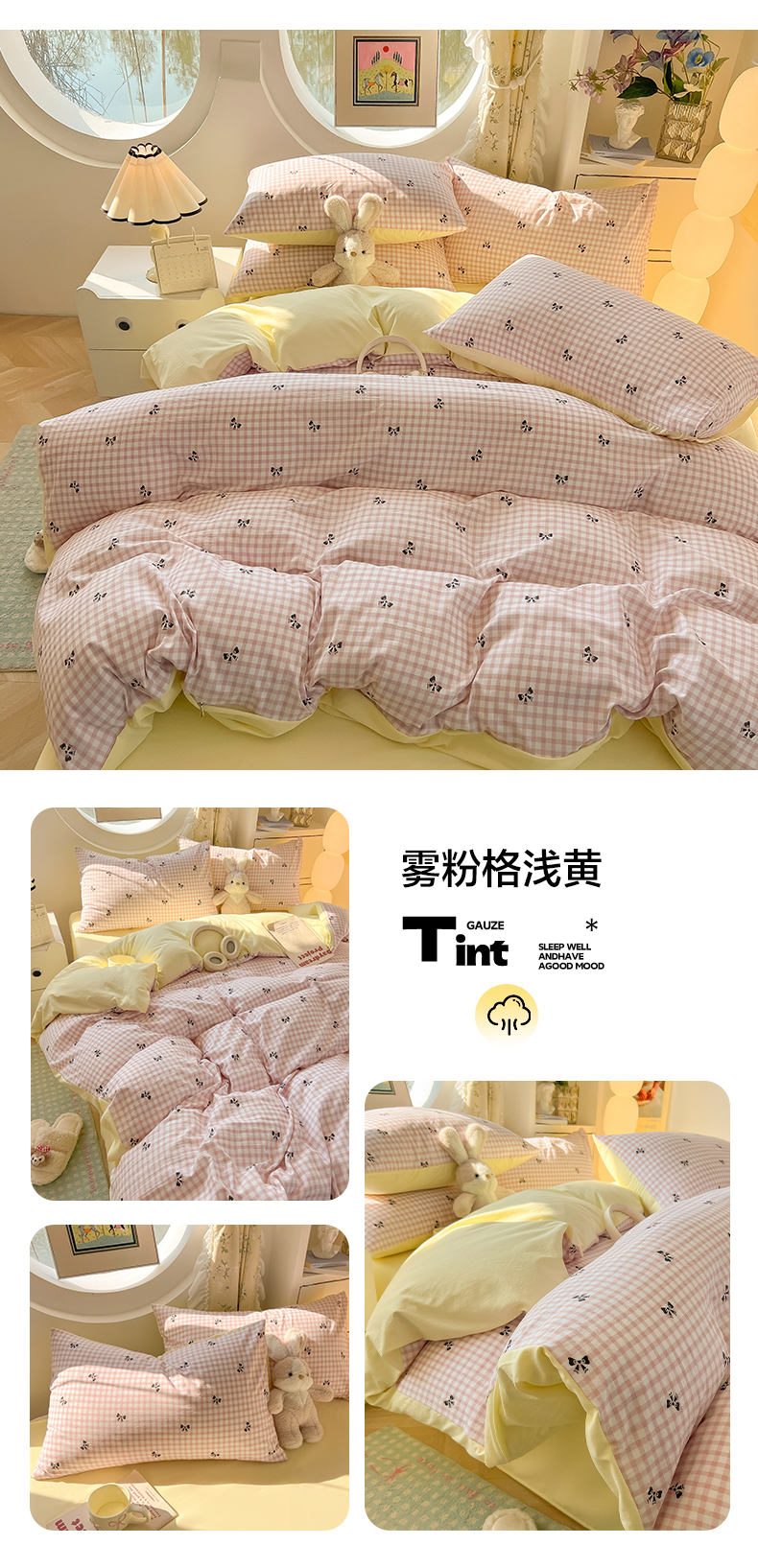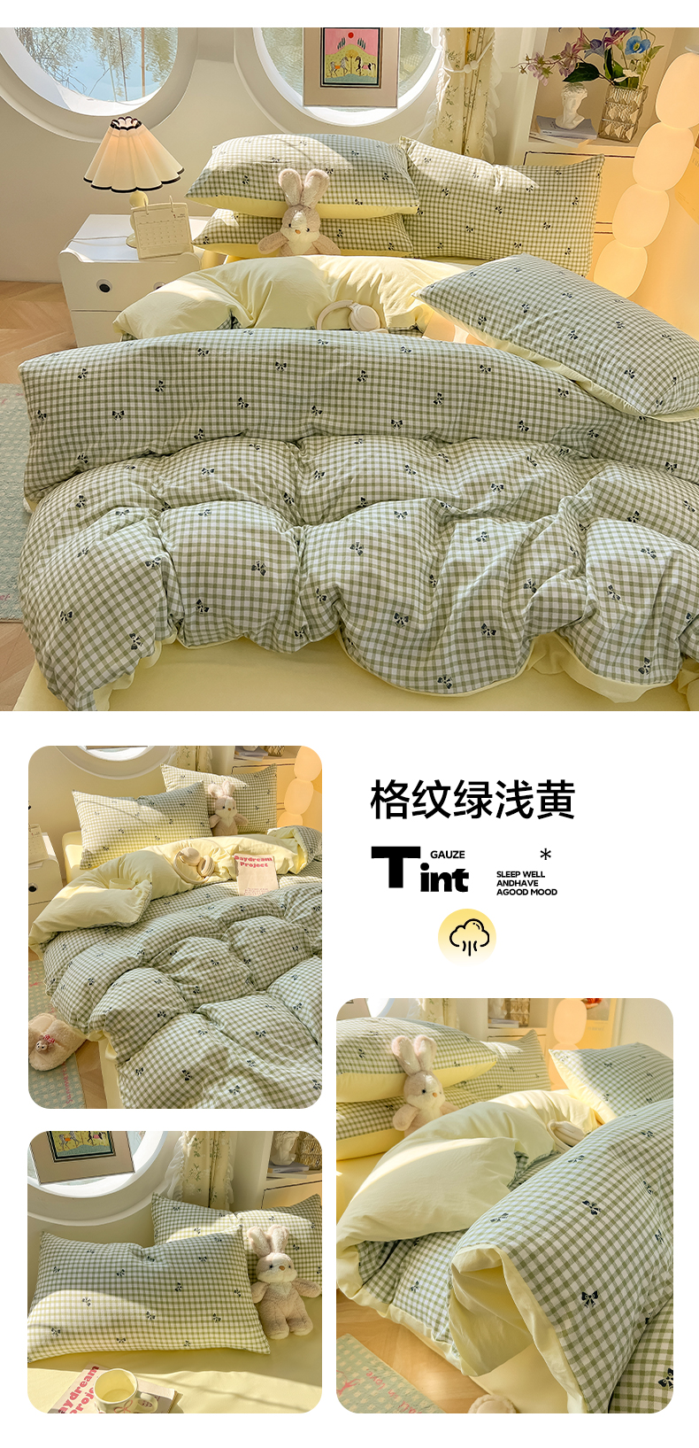 (总)韩巢家纺 2025新款水洗棉ins风格子被套床单四件套-蝴蝶结格子(提供卖家秀)