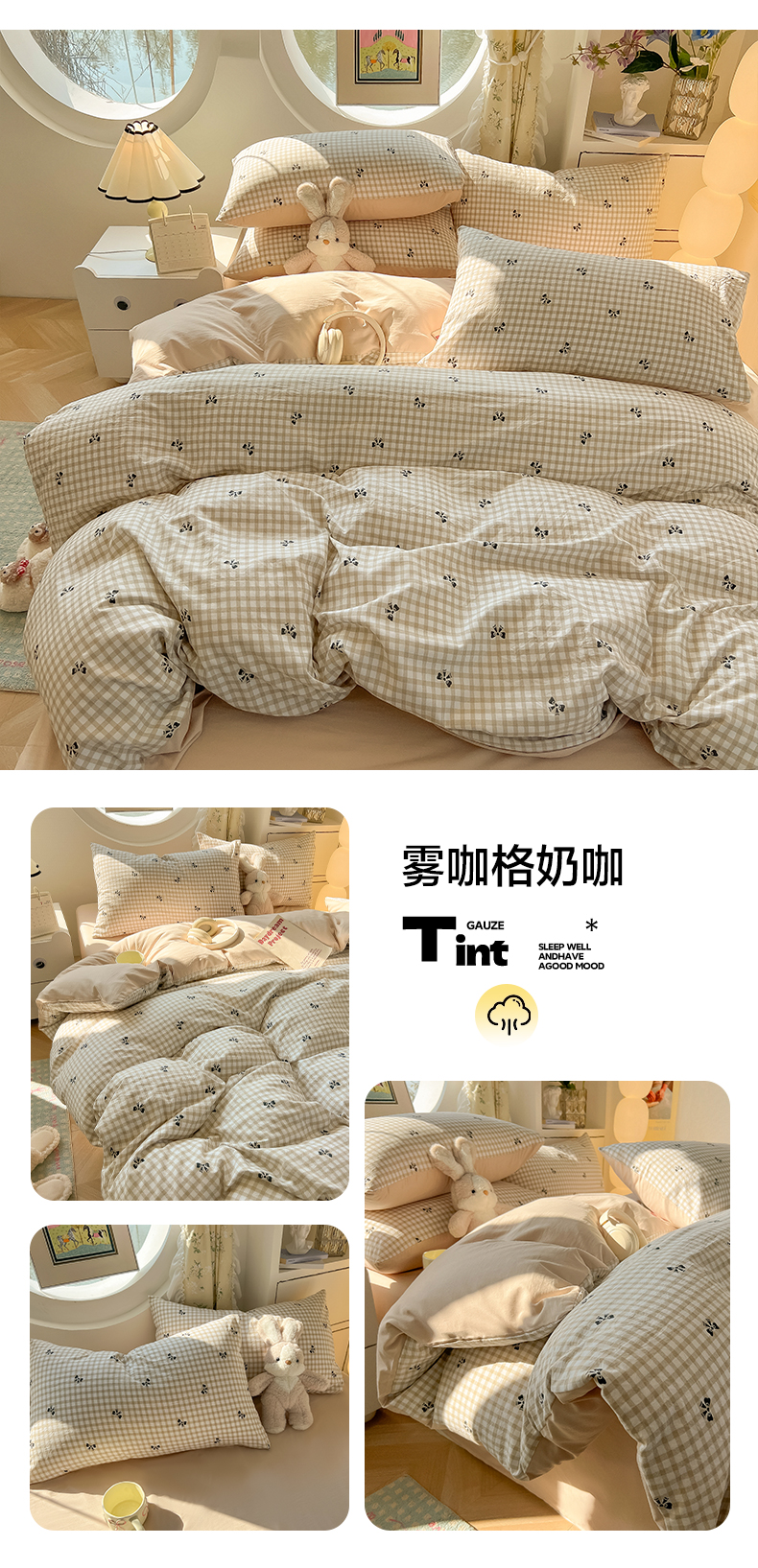 (总)韩巢家纺 2025新款奶呼呼云感双层纱印花四件套,米倾心,爱如星辰,半生倾慕,春风十里,粉相思,海像森林,落日暮年,猫猫晚宴,猫咪恋人,偏偏宠爱,葡萄七分甜,奇妙小熊,森田野园,树林小小龙,兔子的欢喜,小猫时光篮,邮一颗草莓,有草莓的地方,紫倾心