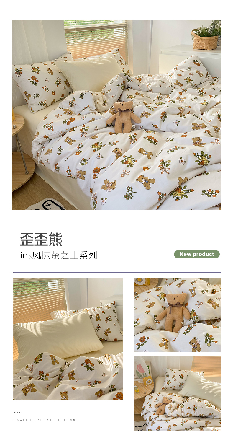 当前位置: 91家纺网 > 商品网购 > 床品套件 > 四件套 > 全棉普通四件套 > 尺素 2025新款ins风抹茶芝士系列全棉四件套 歪歪熊