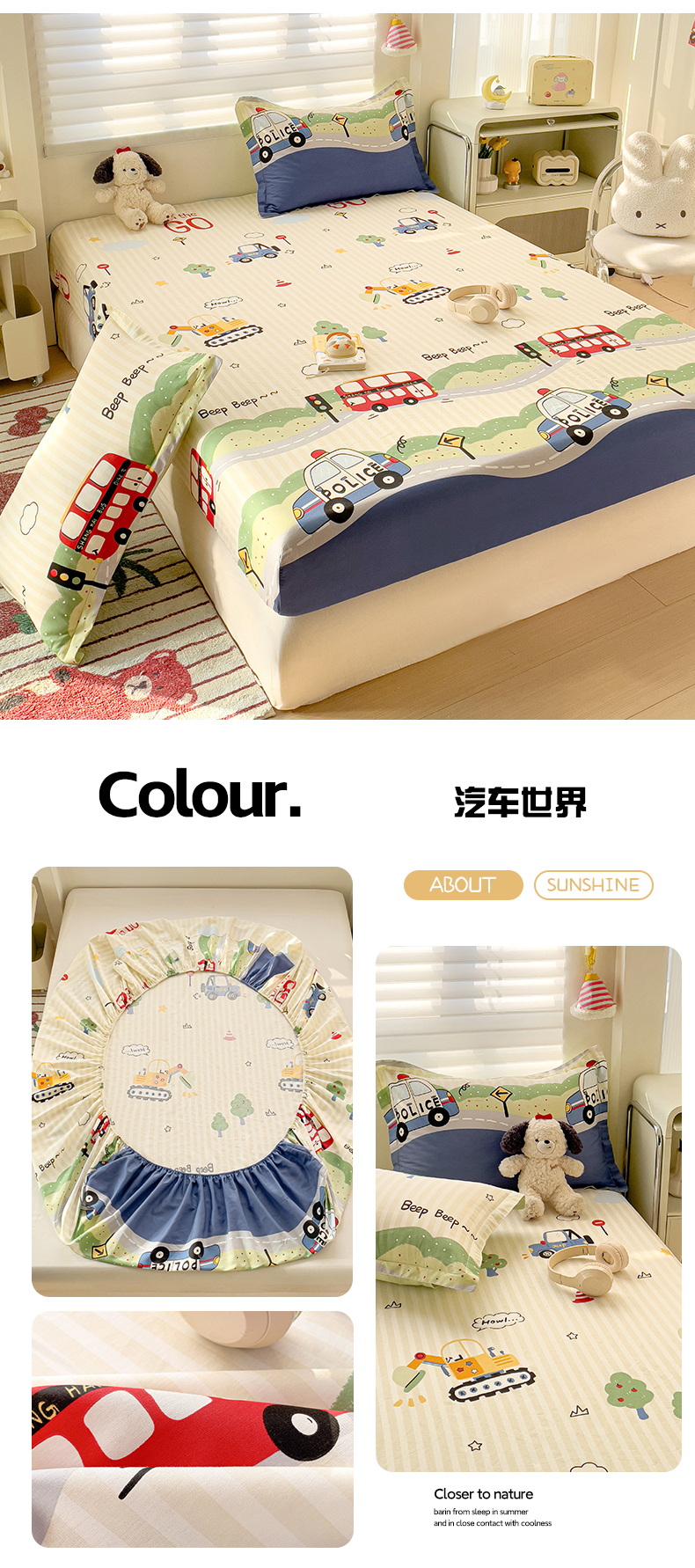 • 91家纺网 家纺一手货源 找家纺 春雨家居 2025新款春夏卡通印花全棉单床笠 汽车世界