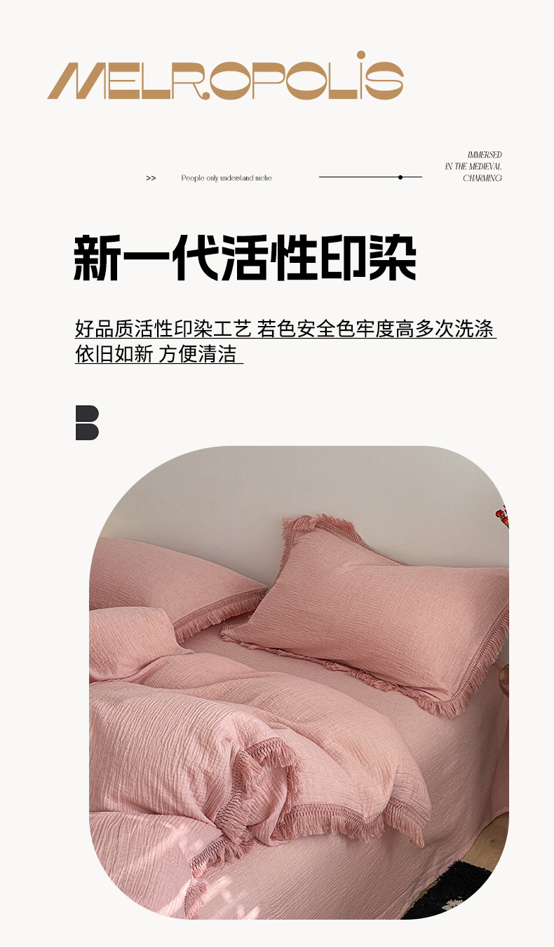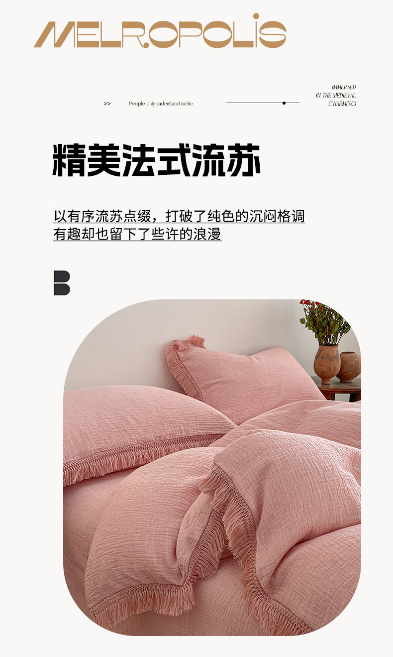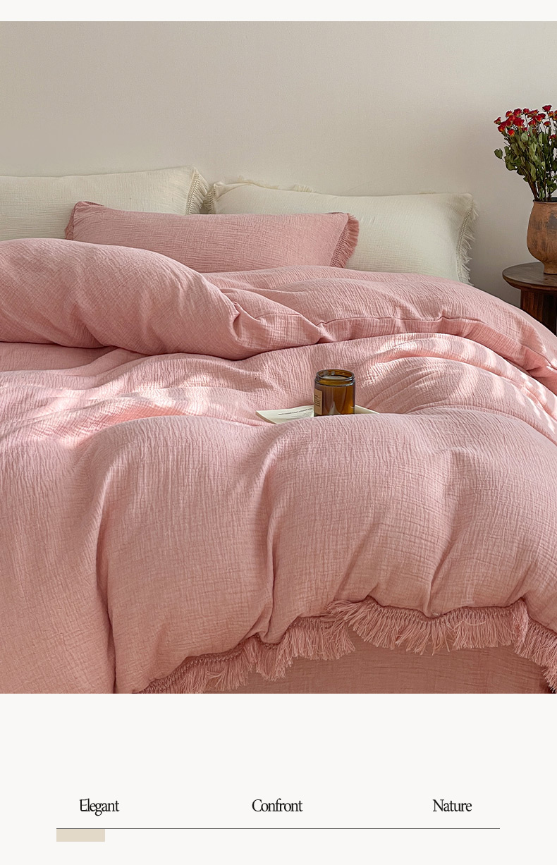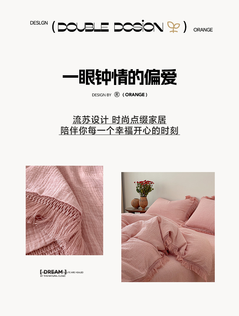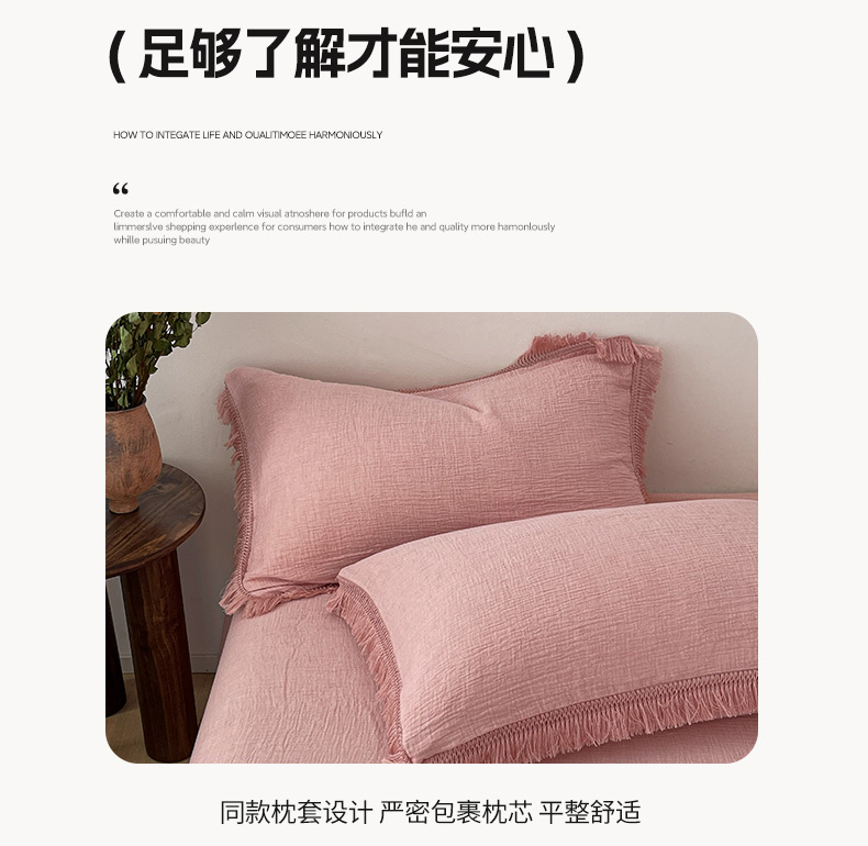 商品名称:卡巴伦家纺 2025新款双层皱皱纱法式流苏款四件套【全网控价(折后券后)不低于标准278/加大298元】 西柚-粉