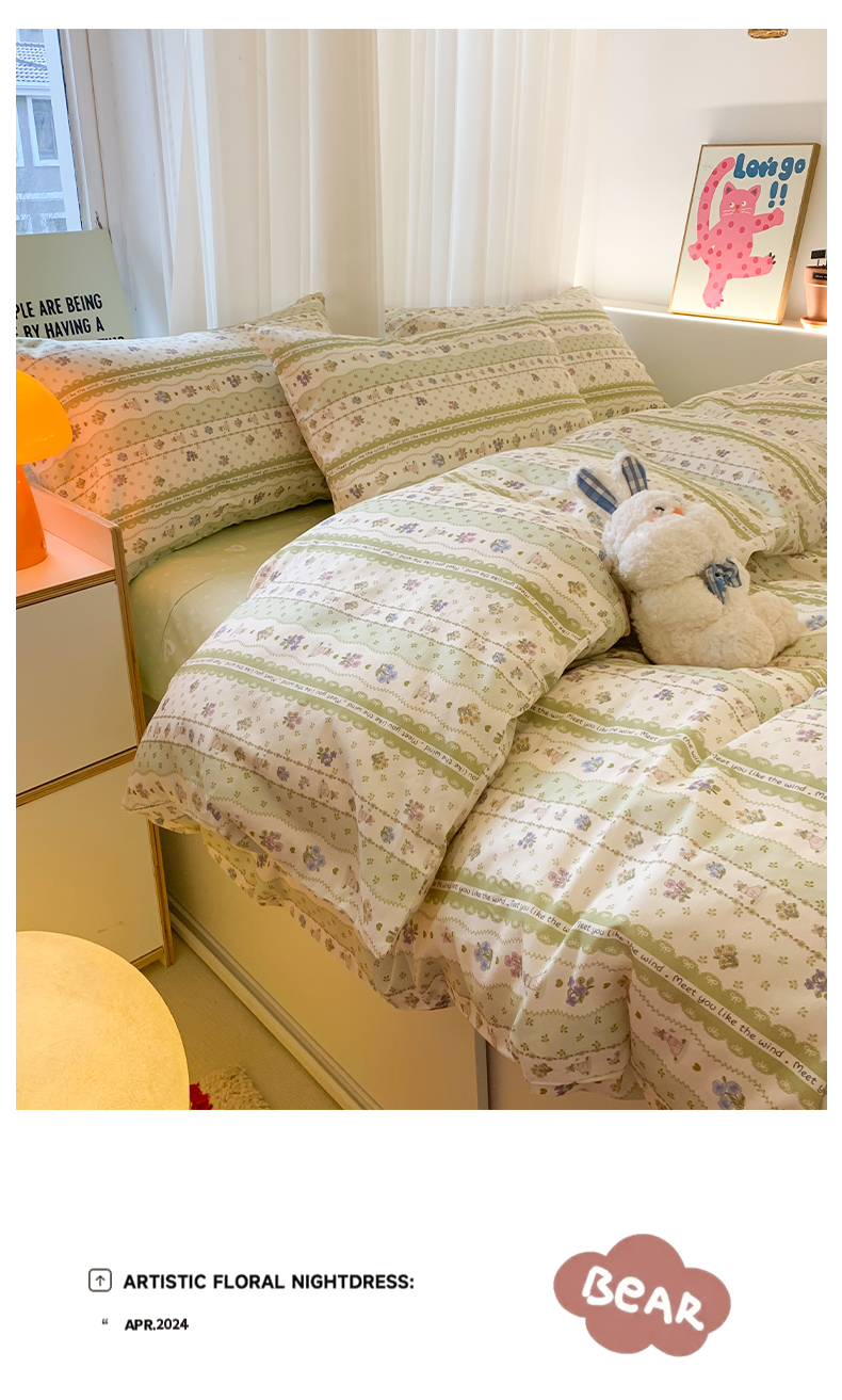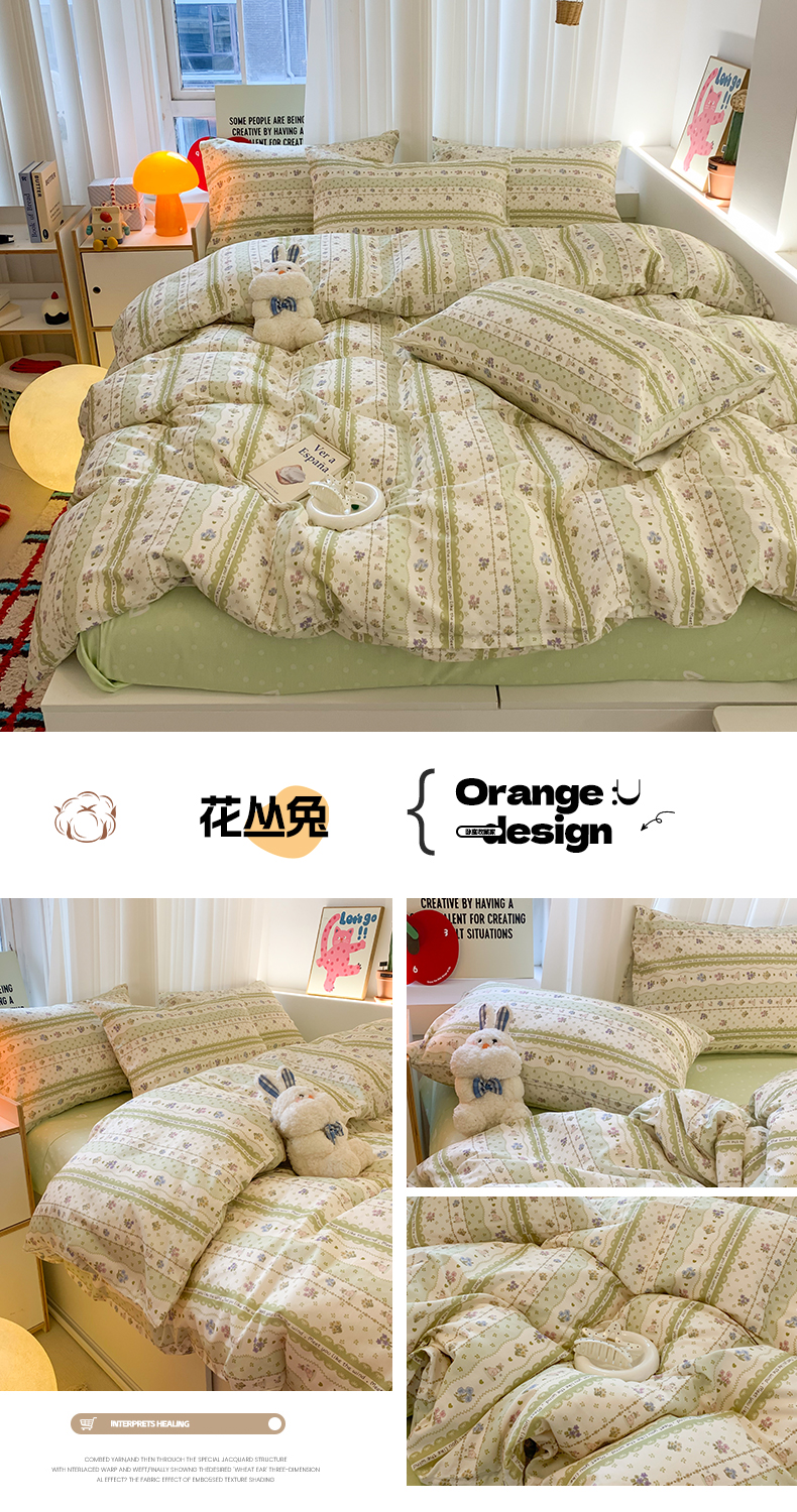 商品名称:澳萝拉 2025新款小碎花清新春夏全棉花边双层纱韩系三件套四件套 花丛兔