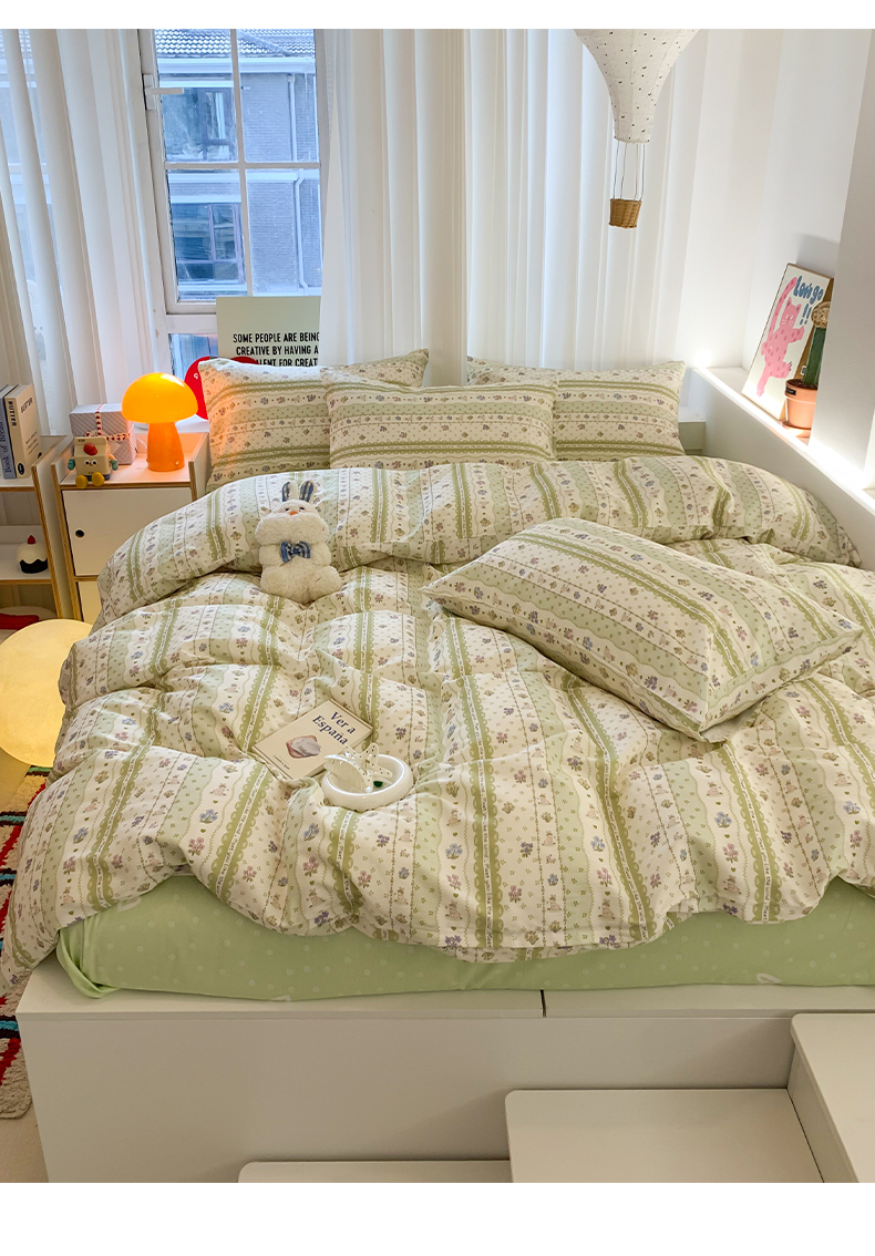 澳萝拉 2025新款小碎花清新春夏全棉花边双层纱韩系三件套四件套 花丛兔