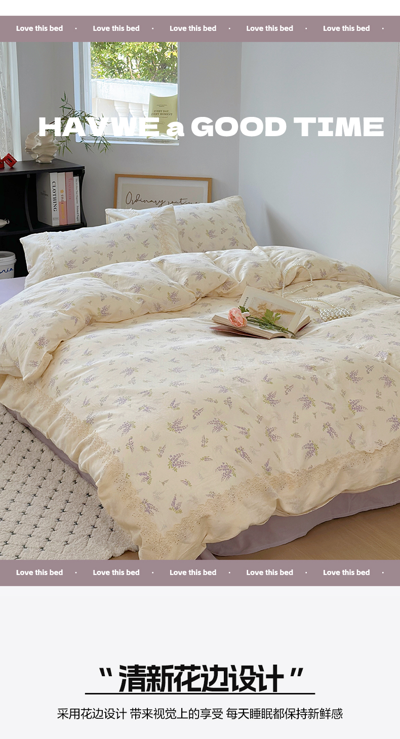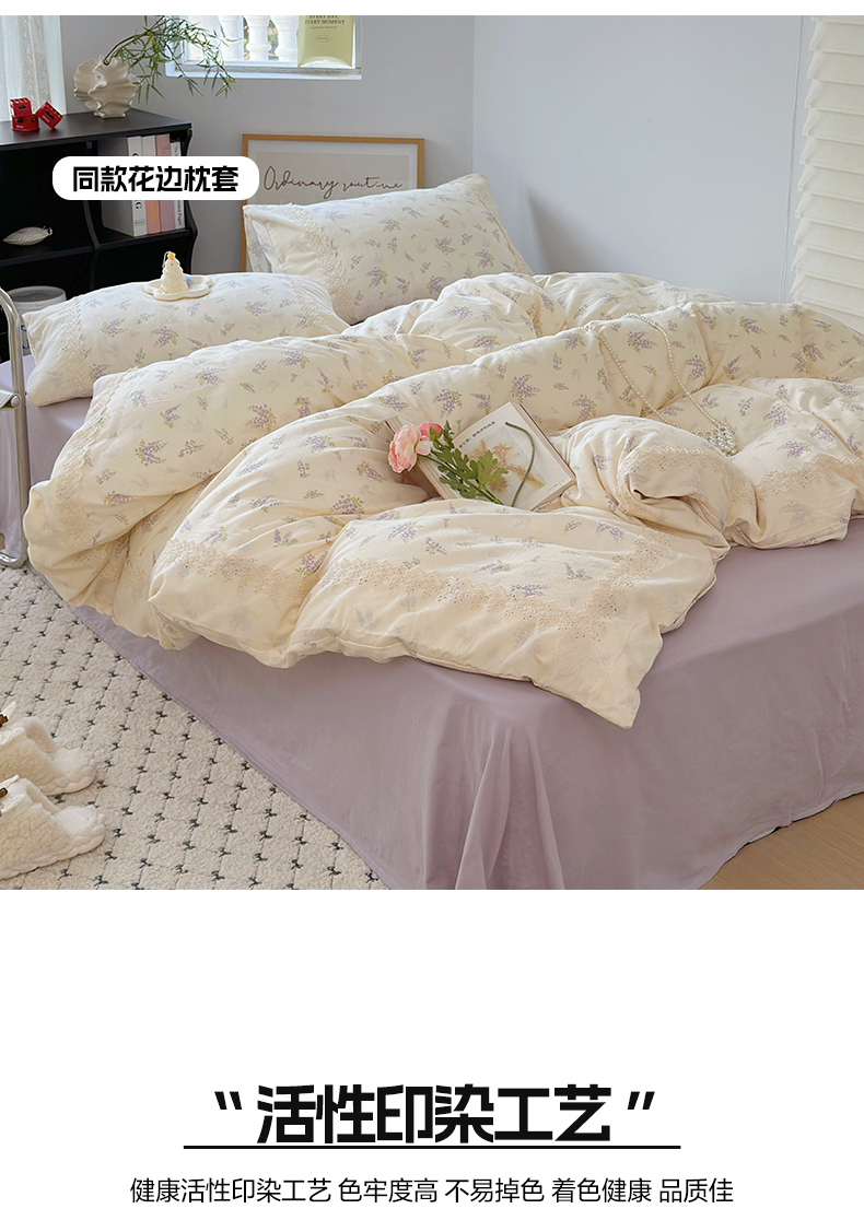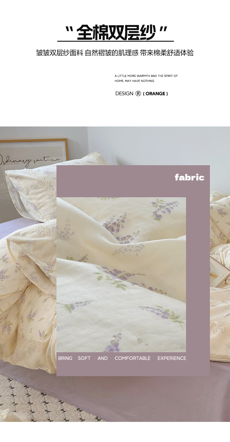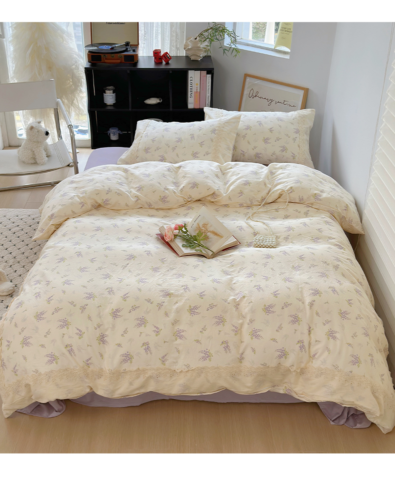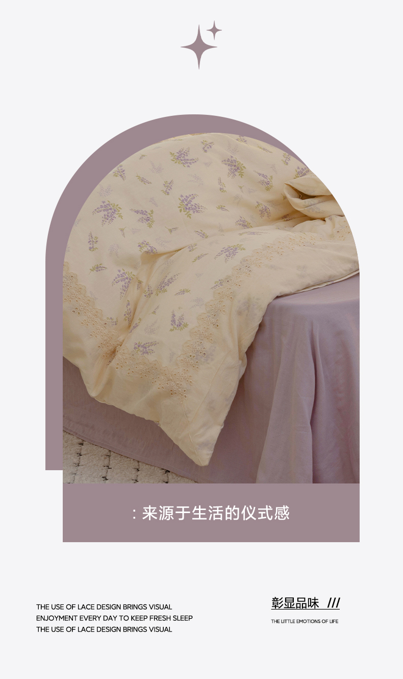 当前位置: 91家纺网 > 商品网购 > 床品套件 > 四件套 > 全棉普通四件套 > 澳萝拉 2025新款小碎花清新春夏全棉花边双层纱韩系三件套四件套 紫藤花