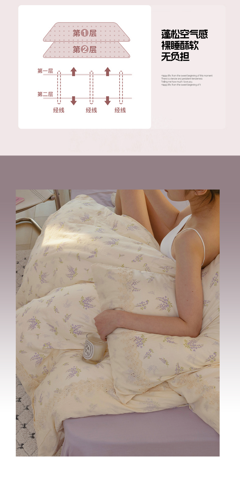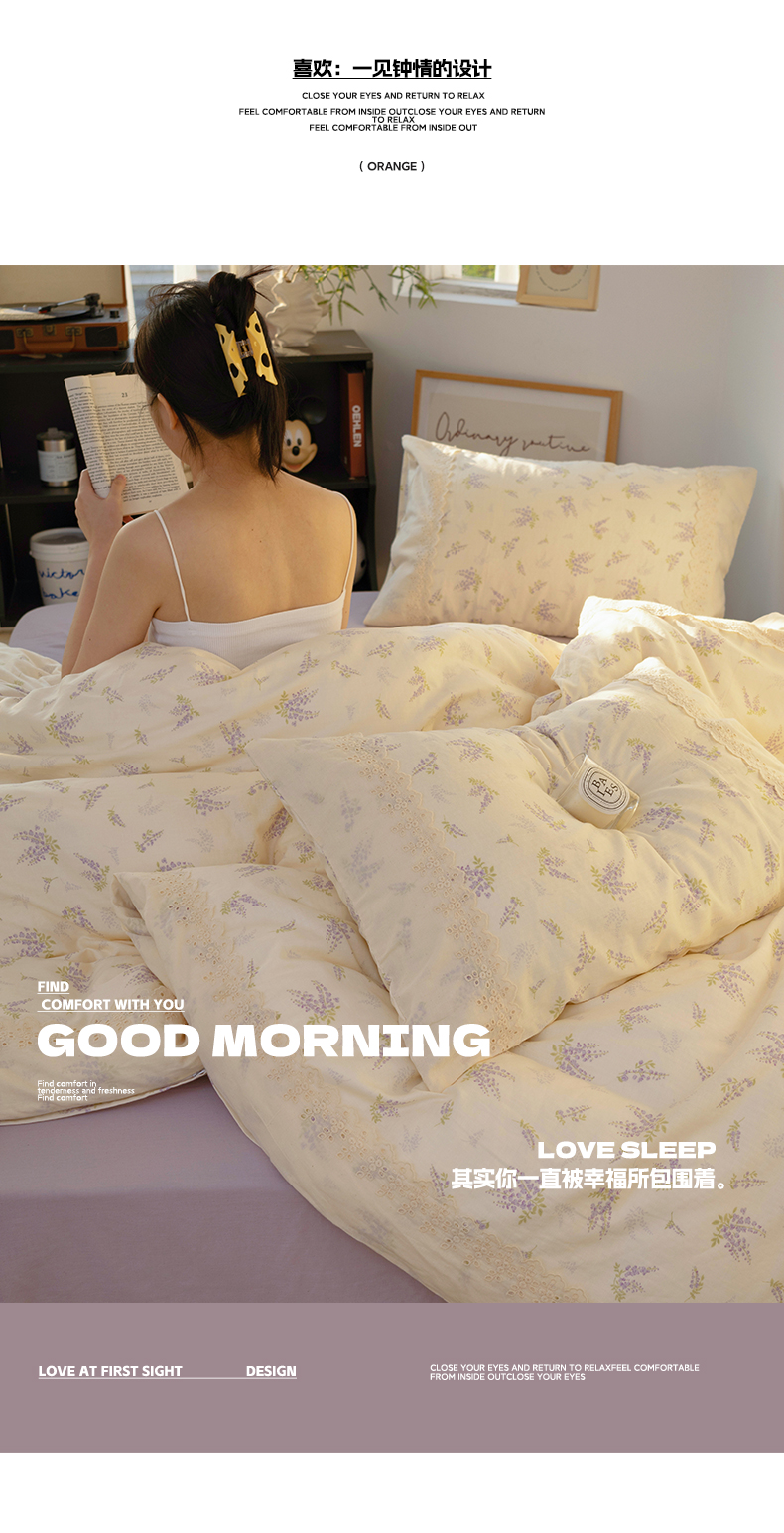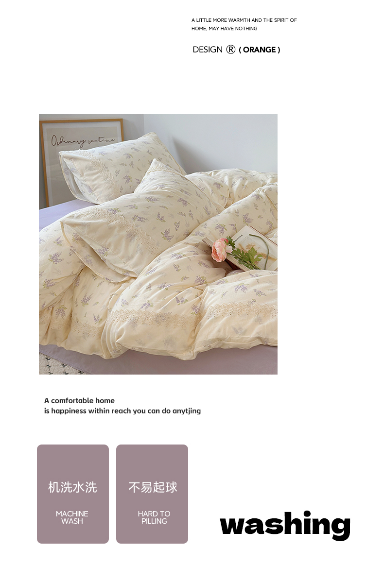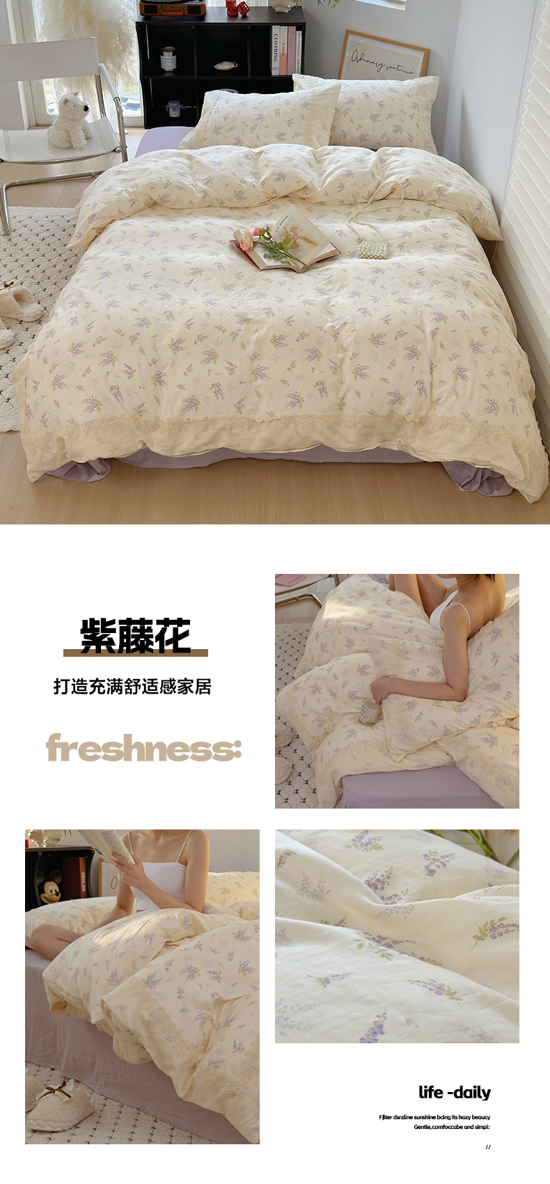 当前位置: 91家纺网 > 商品网购 > 床品套件 > 四件套 > 全棉普通四件套 > 澳萝拉 2025新款小碎花清新春夏全棉花边双层纱韩系三件套四件套 紫藤花
