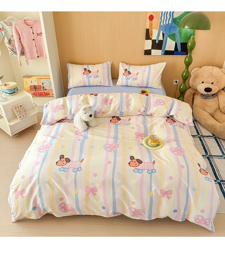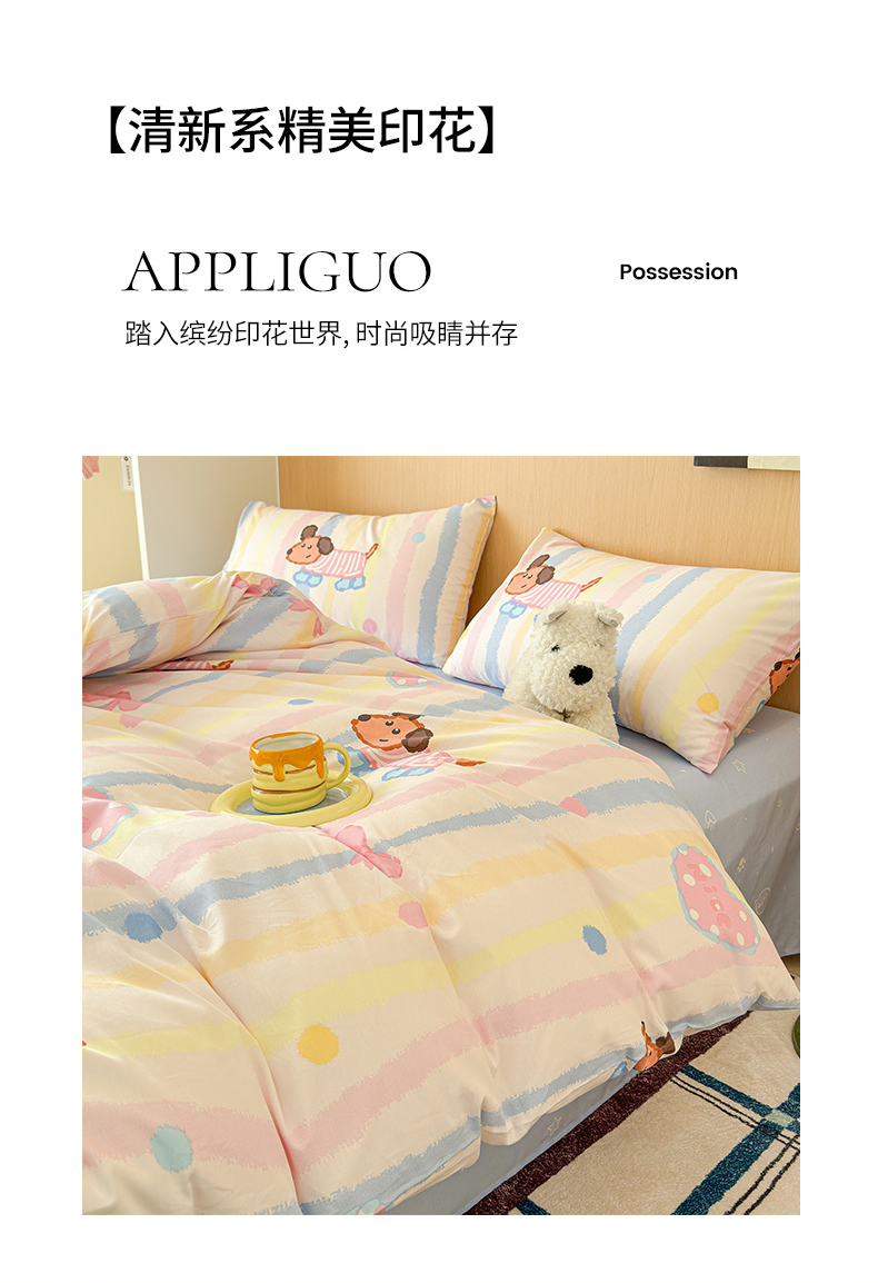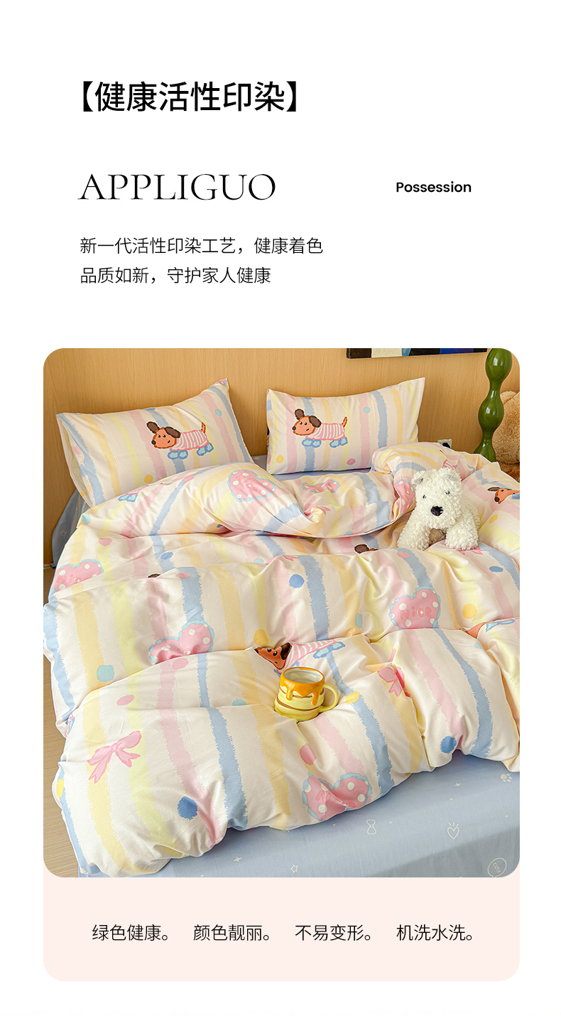 感遇全棉软萌清新四件套 五彩小狗