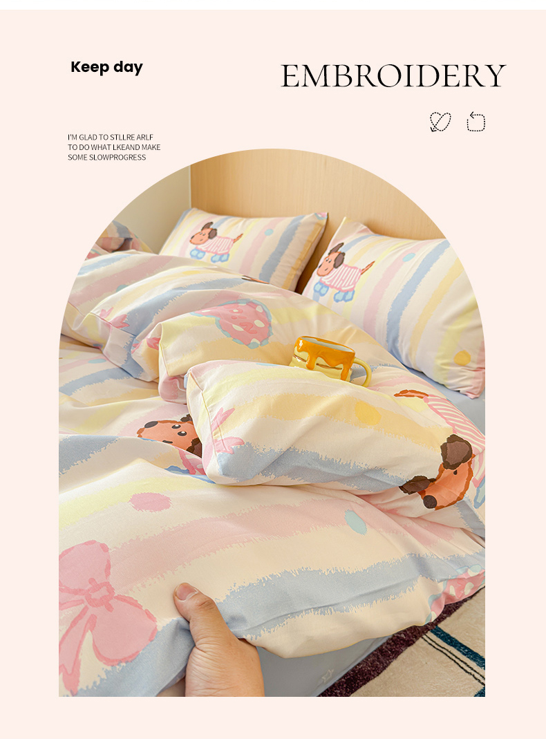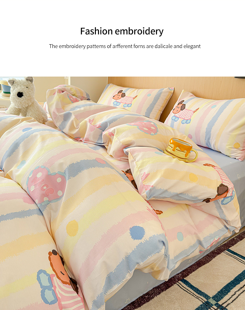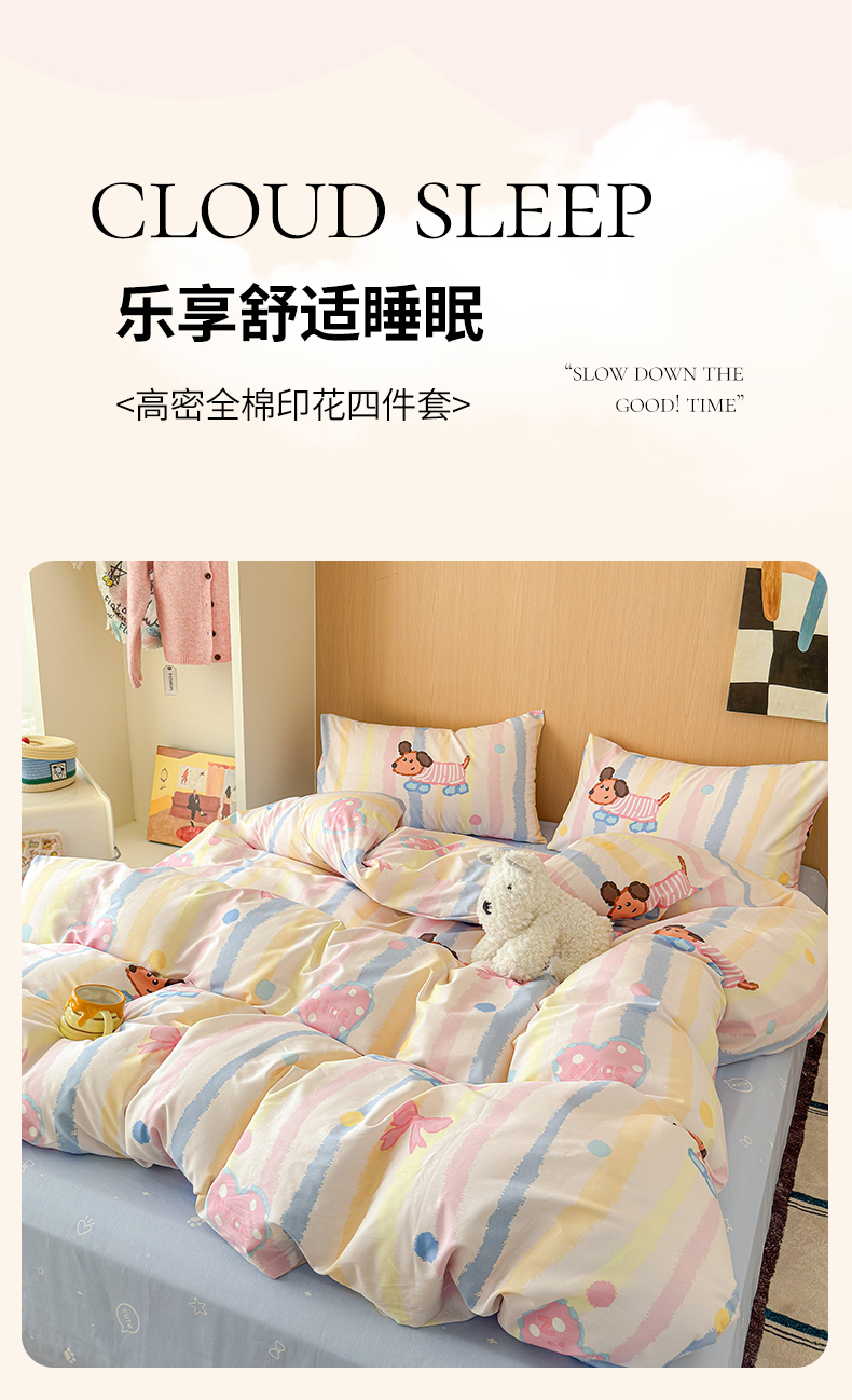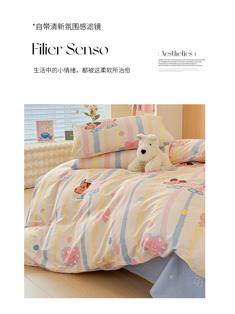 感遇全棉软萌清新四件套 五彩小狗