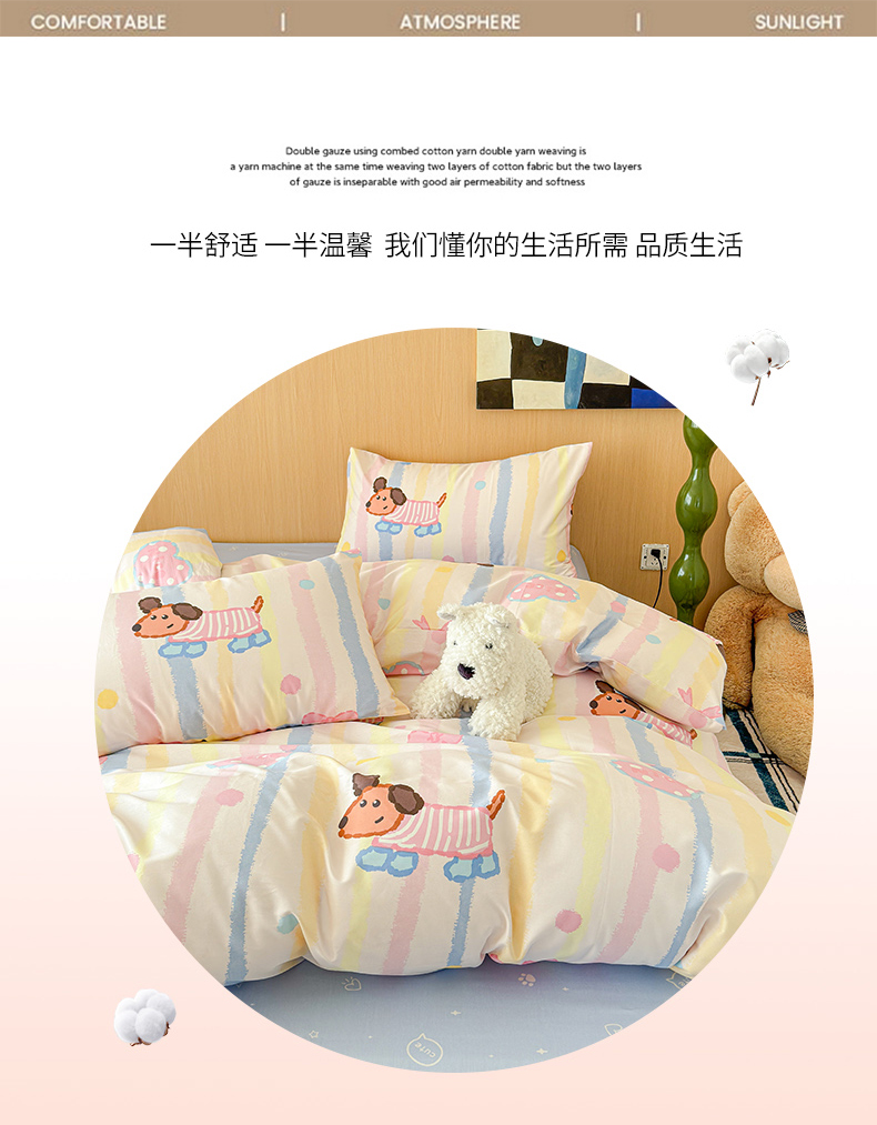 商品名称:感遇全棉软萌清新四件套 五彩小狗