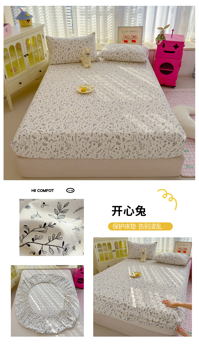 • 91家纺网 家纺一手货源 找家纺 宏源家纺 2025新款A类水洗云朵棉110g单床笠-1月新花型 开心兔